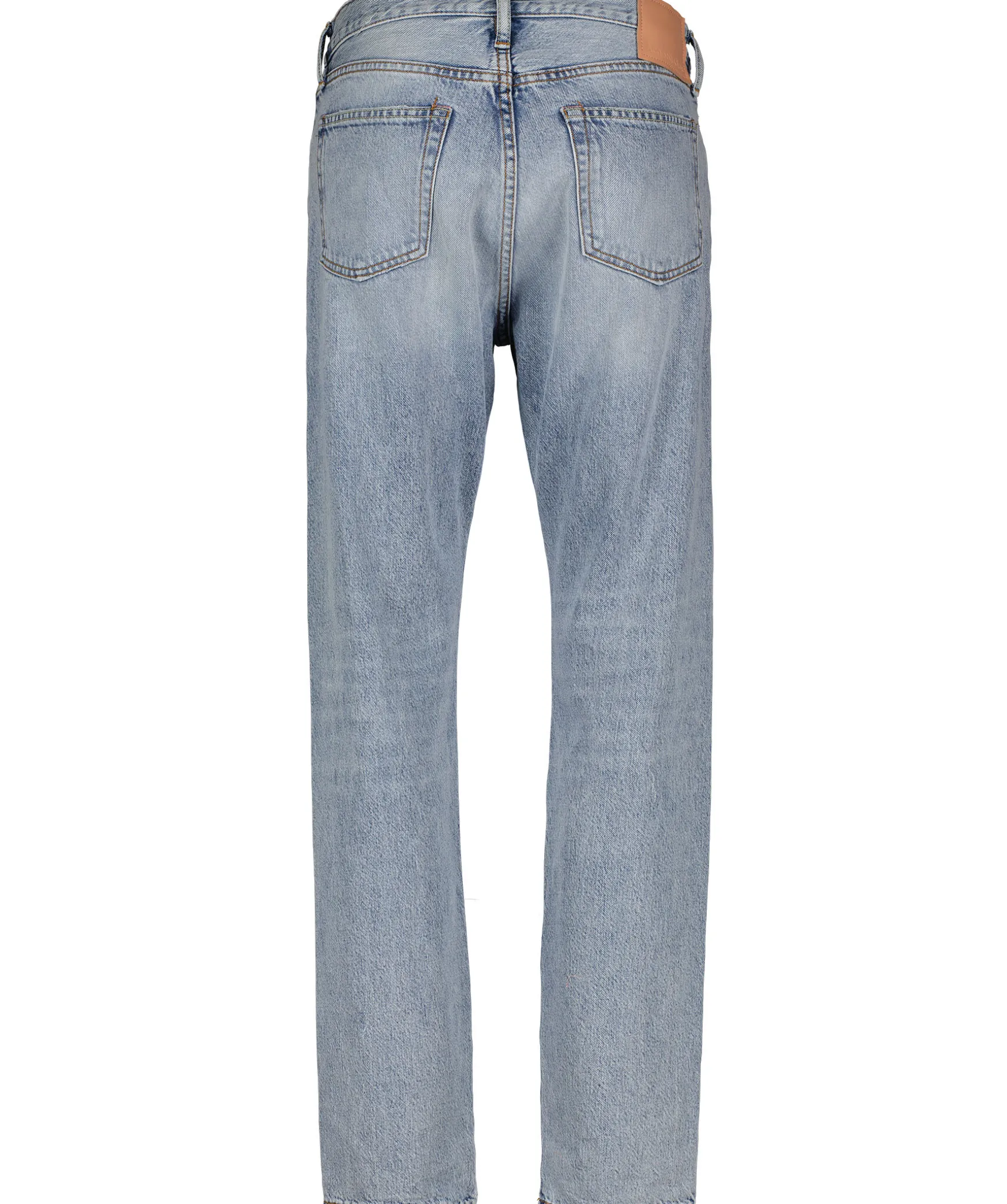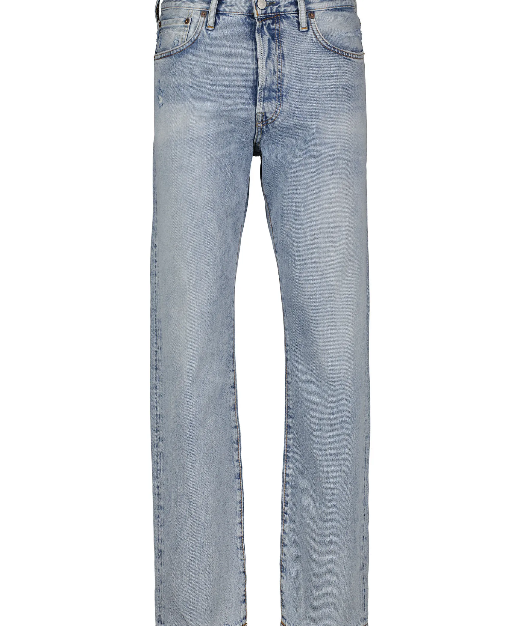 Ljusbla, Stentvattade Jeans Med Sma Medvetna Slitningar Fran Acne Studios. Tillverkade I Styv Denim Med Hog Midja Och Raka Ben. Hallor For Balte I Midjan Och Fem Fickor. Ljusrosa Patch I Lader Med Logotyp Pa I Linningen Bak Och Stangs Med Gylf Med Dold Dragkedja Och Knapp.
