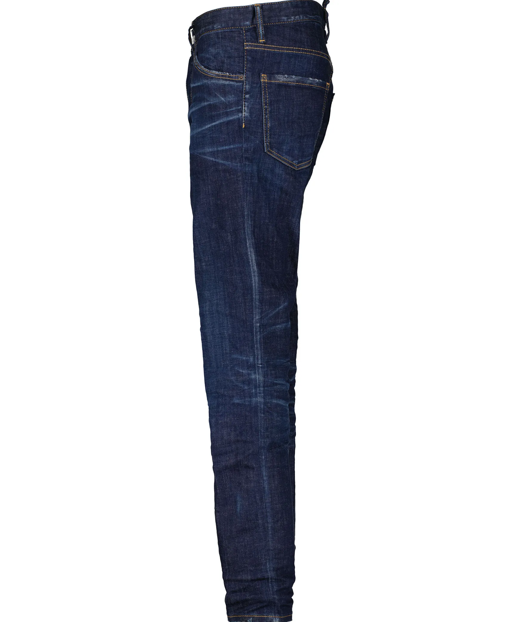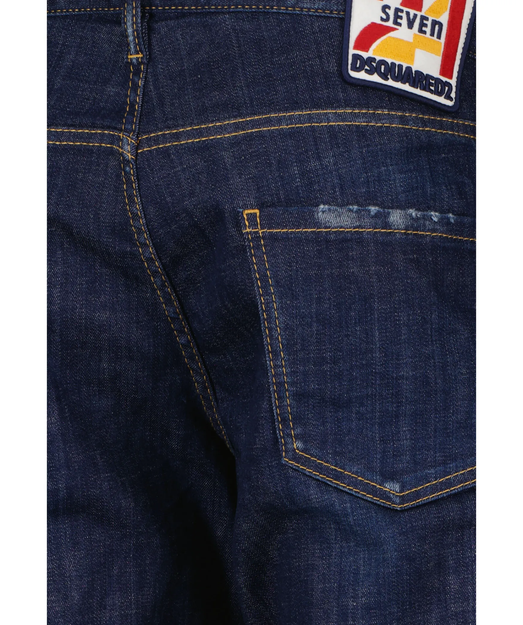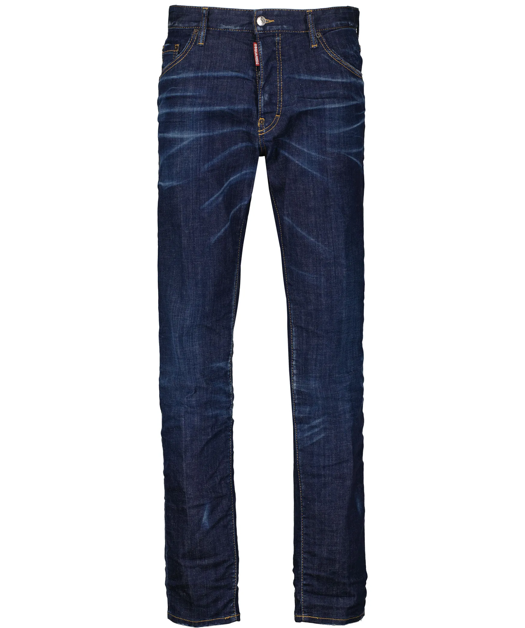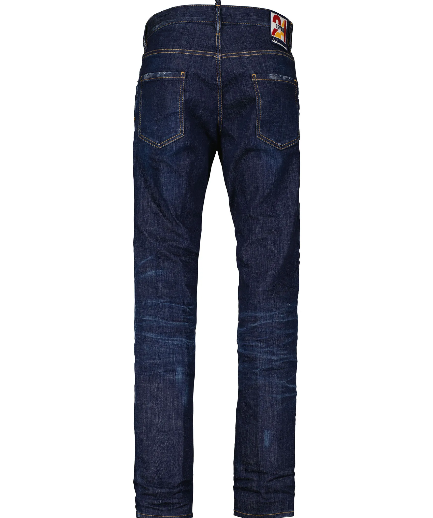Morkbla Jeans I Slim Fit Modell Fran Dsquared2. Fem Fickor Och Hallor For Balte I Midjan. Stor, Fargglad Patch Over Bakfickan Och Dolda Knappar I Gylfen. Tillverkade I Bomull Med Stretch.