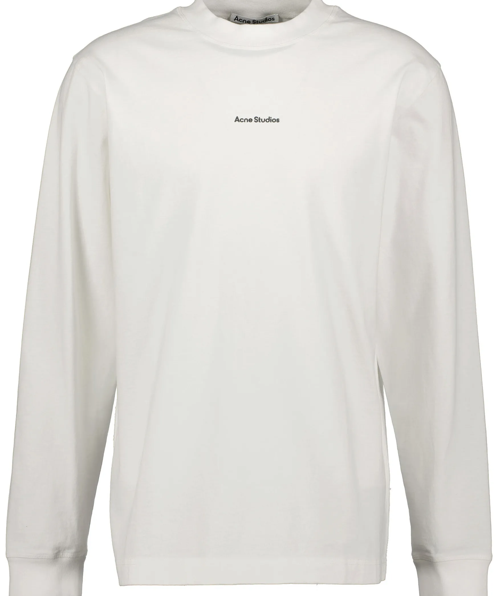 Vit, Langarmad T-Shirt Fran Acne Studios. Trojan Ar Gjord I Ett Kraftigt Bomullstyg Med En Ribbad Halsringning Samt Ribbade Muddar I Armslut. Liten Logotyp Tryckt Pa Brostet. Avslappnad Passform Med Droppade Axlar.