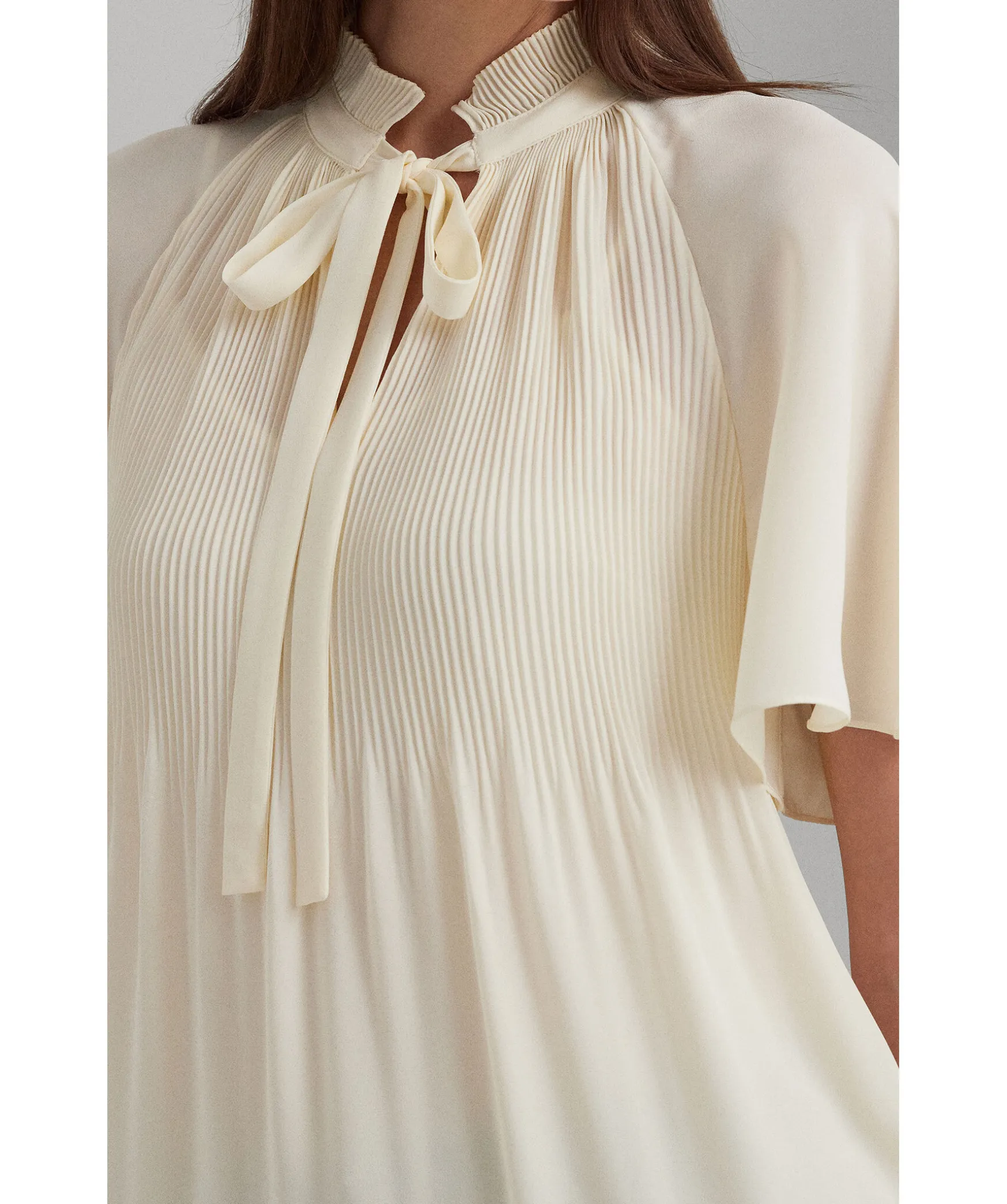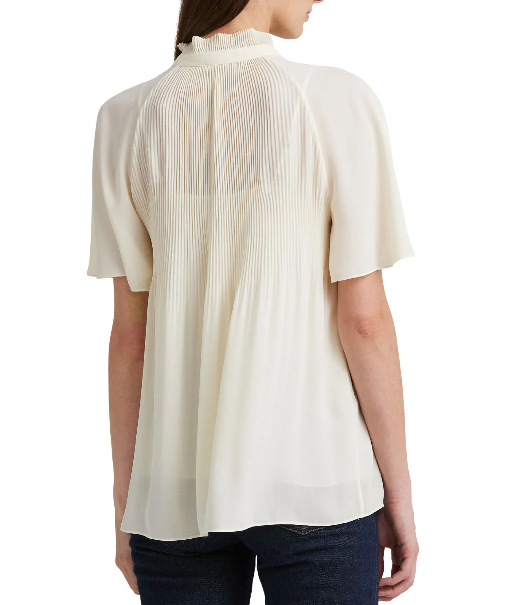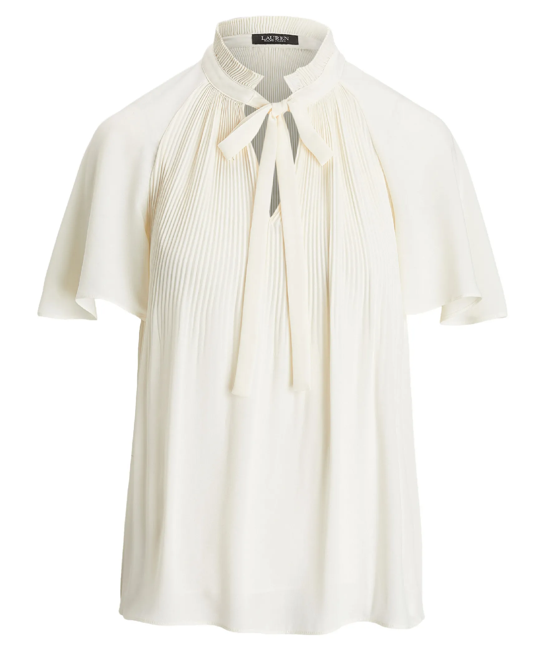 Kramvit Blus Fran Lauren Ralph Lauren. Skuren For En Luftig, Avslappnad Siluett Och Kannetecknas Av Fladderarmar Och Sunray-Plisserad Bandkrage Med Sjalvband. Tillverkad Med Semi-Transparent Georgette, Kommer Den Med Ett Camisole-Foder For Opacitet.