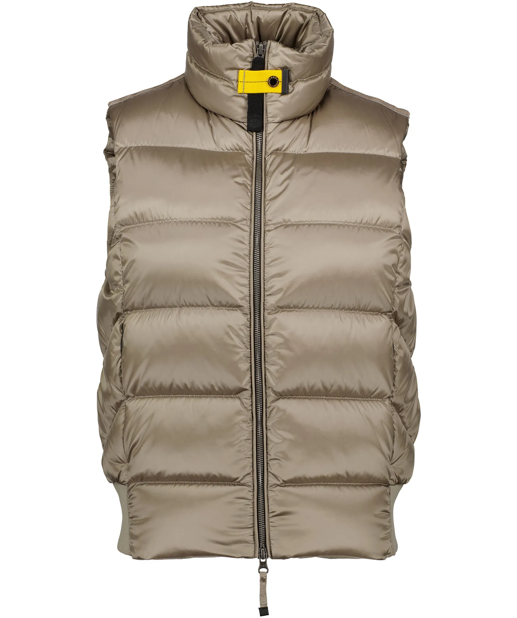 Beige Dunvast Fran Parajumpers. Vastens Yttertyg Ar Gjord I En Blandning Av Nylon Och Polyester Med En Vattenavvisande Behandling. Oppnas Och Stangs Med En Tvavagsdragkedja. Tva Framfickor Med Dragkedja Och En Innerficka Med Kardborre. Pjs-Logotyp I Nacken. Ribbad Elastisk Mudd Vid Vastens Slut.