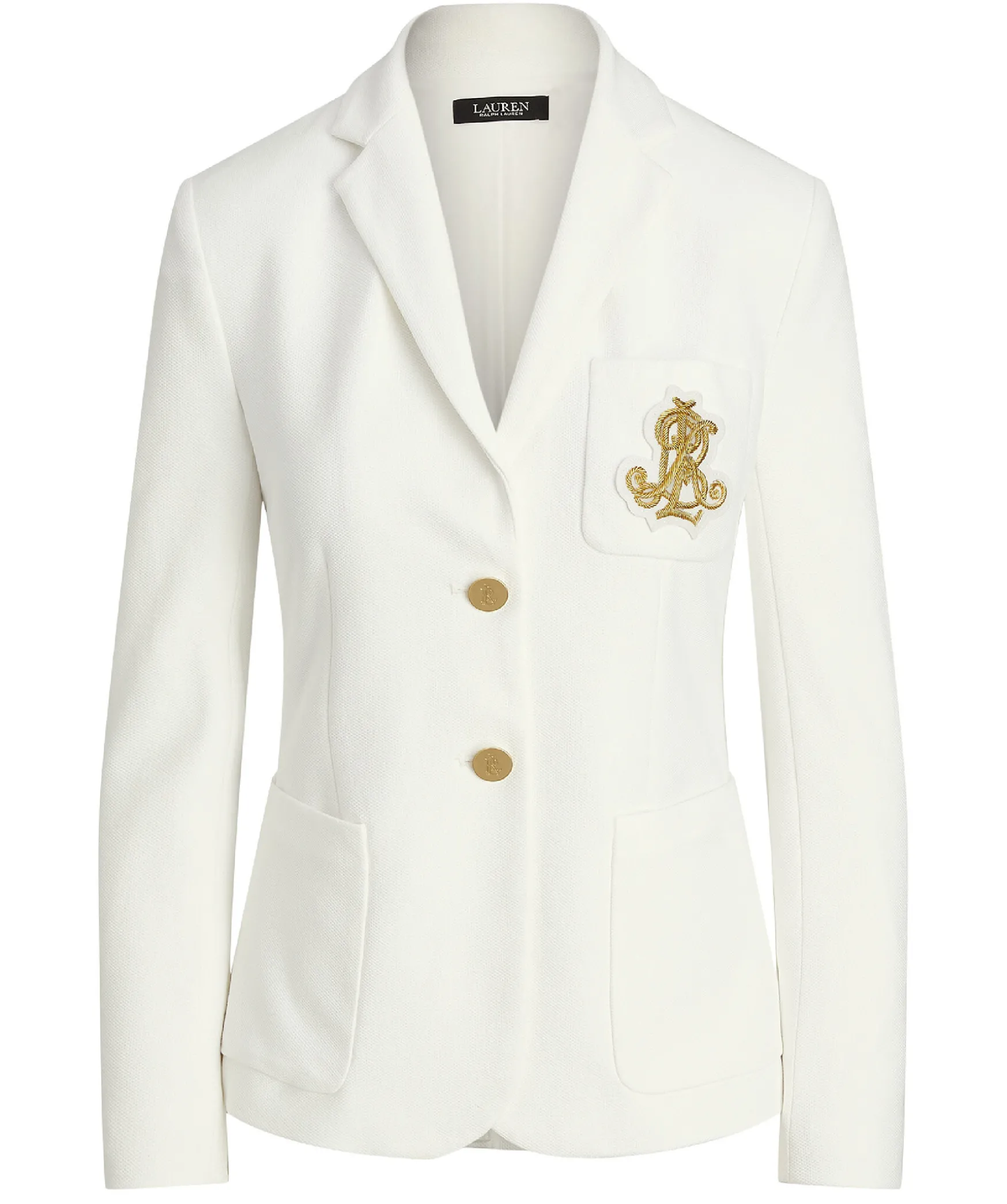 Vit Kavaj Fran Lauren Ralph Lauren. Guldfargade Knappar I Metall. Brostficka Pa Vanster Sida Med Bullion ”Lrl” Lapp Broderad, Tva Fickor Framtill. Sprund Baktill.