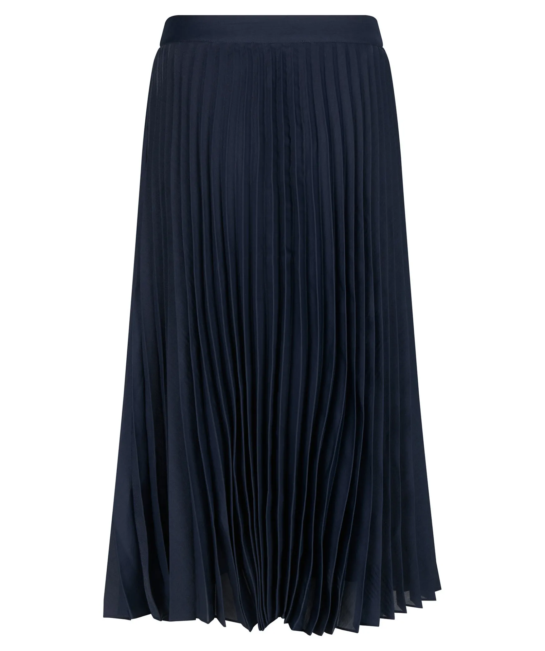 Marinbla, Lang Veckad Maxikjol Med Asymmetrisk Fall Fran Samsoe Samsoe. Fodrad Och Plisserat Tyg Av Atervunnen Polyesterblandning Med En Latt Glans. Denna Produkt Ar Grs-Certifierad. Varje Steg I Leveranskedjan Har Uppfyllt Stranga Sociala, Miljomassiga Och Kemiska Krav. Langd For Mittback I Storlek Small Ar 79 Cm.