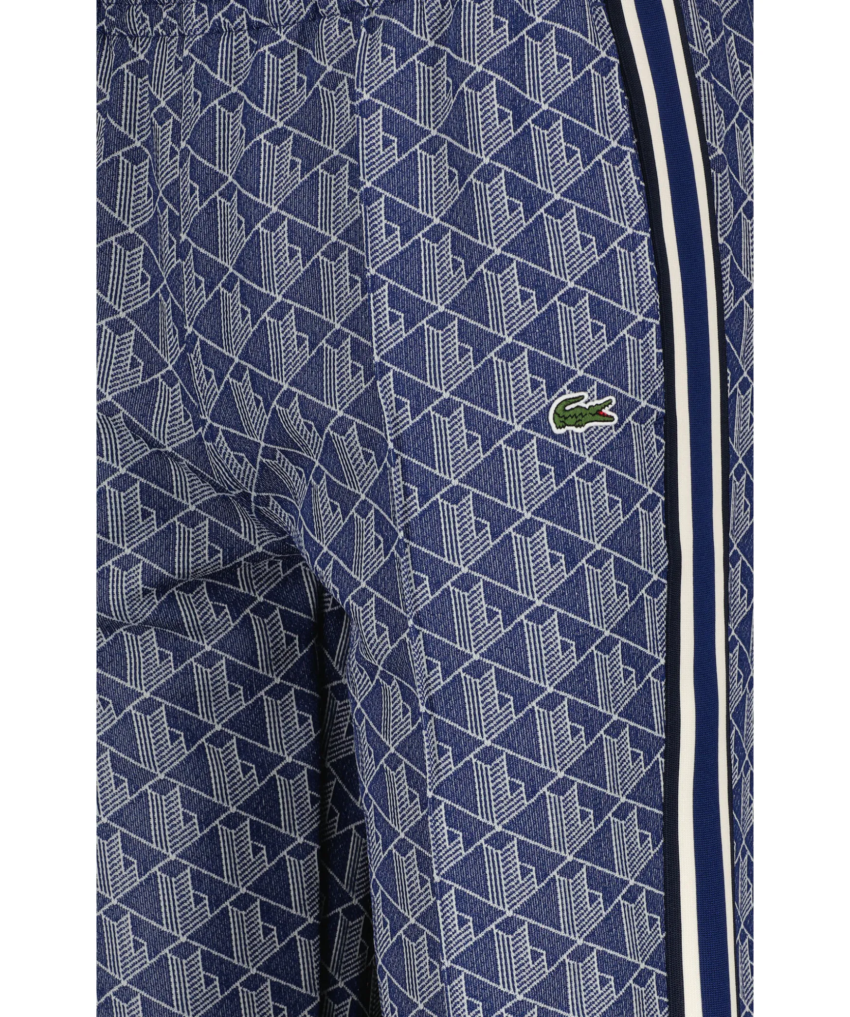Morkbla Och Vit Monstrade Tracksuit Byxor Fran Lacoste. Revarer I Vitt Och Blatt Langst Byxbenen. Dragsko I Midjan. Tva Fickor Framtill. Broderad Patch Med Logotyp Pa Vanster Lar.