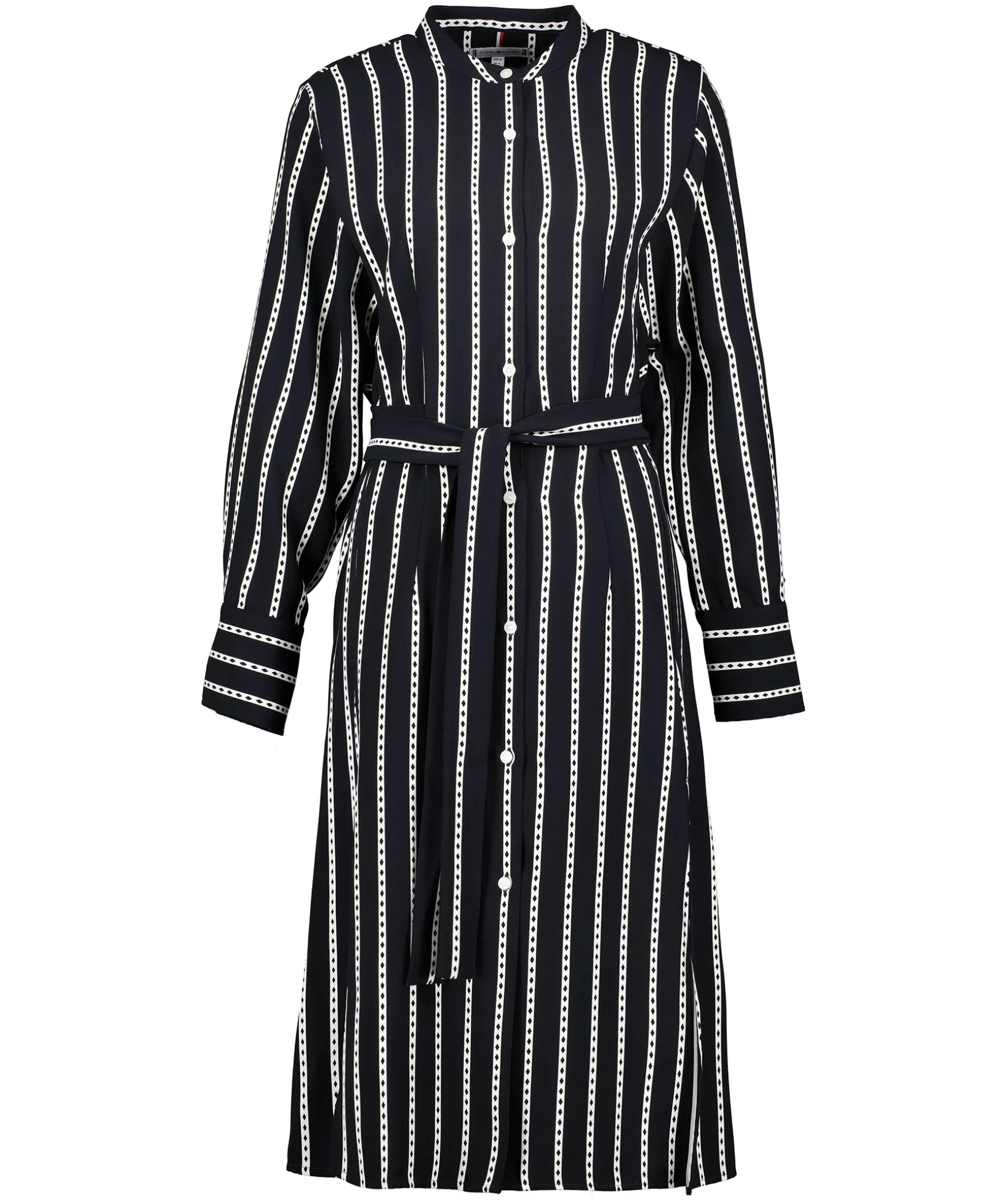 Morkbla Och Vit Monstrad Skjortklanning Fran Tommy Hilfiger. Stangs Framtill Med Knappar. Avtagbart Balte Att Knyta I Midjan. Slits Pa Sidorna Av Klanningen. Breda Manschetter Vid Armslut. Logotyp I Metall Vid Vanster Armslut. Tillverkad I Atervunnet Material.