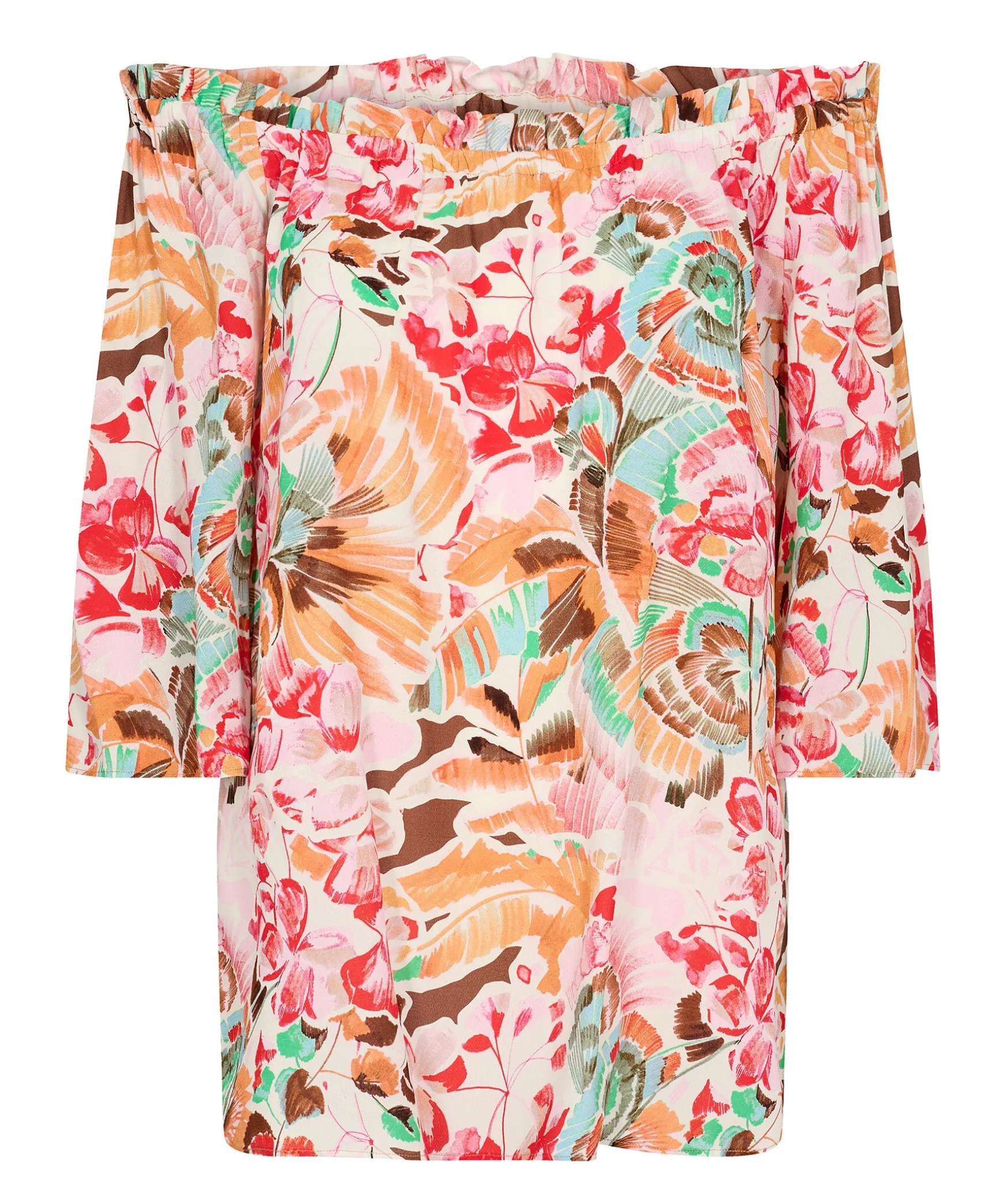 Blus Tillverkad Av Viskos I Ett Extraordinart Flerfargat Blommonster Fran Mos Mosh. Blusen Ar Designad I En Lite Los Siluett Med Volang Och En Elastisk Halsringning, Vilket Gor Den Perfekt For Off-Shoulder-Trenden. Den Har Sidoslitsar I Fallen Och Vi Skulle Styla Den Med Jeans Med Hog Midja Eller En Chic Kjol.