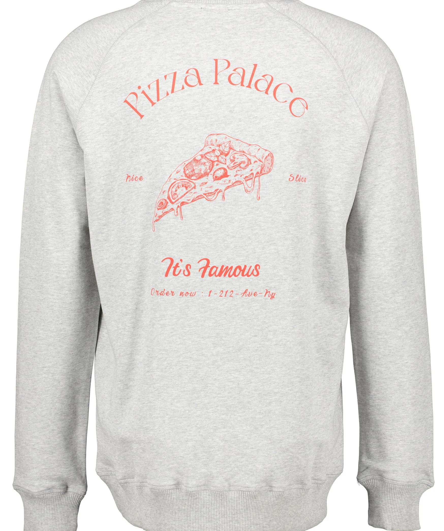 Gra Sweatshirt Fran Aveny. Rundad Halsringning. Ribbstickad Mudd Vid Ringningen, Arm- Och Plaggslut. Tryck I Rott Pa Vanster Brost, Och Baktill Over Ryggen.Tillverkad I 100% Bomull.