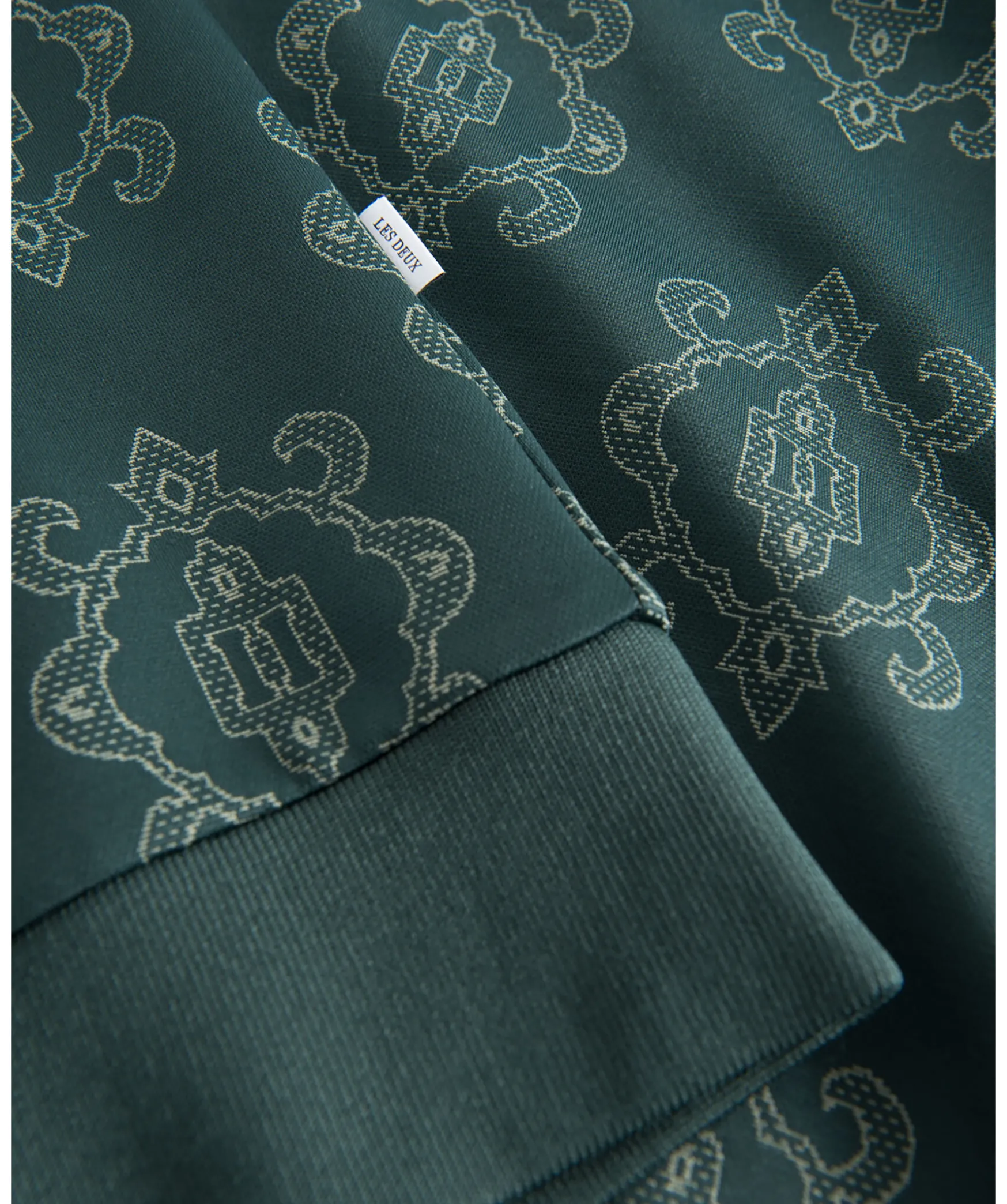 Gron Tracksuitjacka Fran Les Deux. Trojan Har Ett Ljusgront Ornament Monster.Stangs Med Dragkedja Framtill. Tva Fickor Fram Samt Vit Logotyp Pa Vanster Brost. Ribbstickade Muddar.