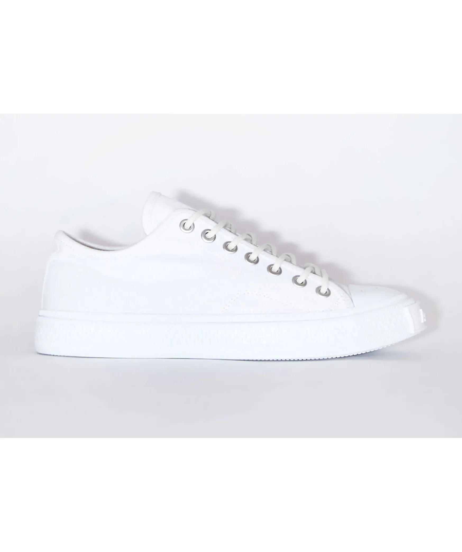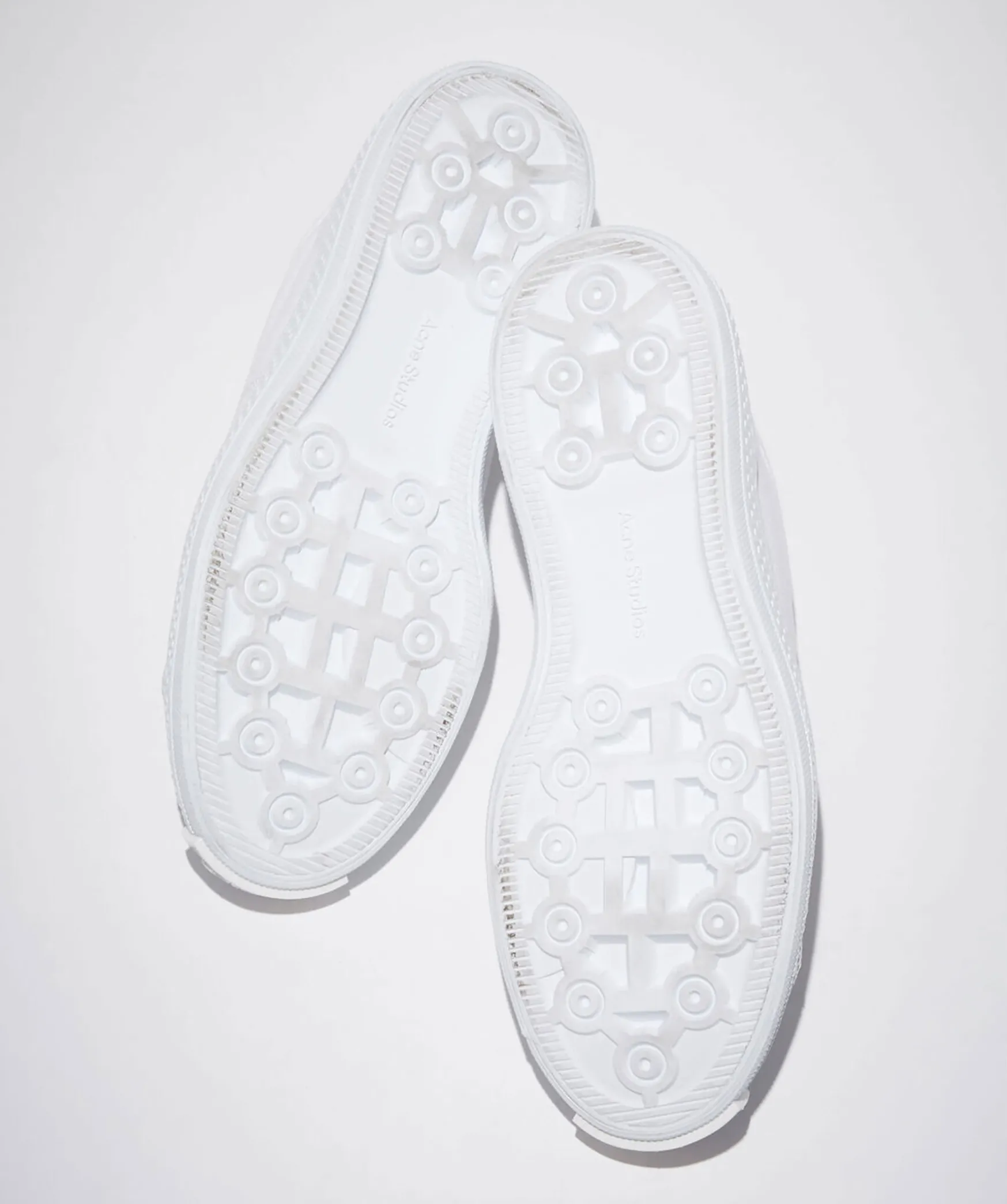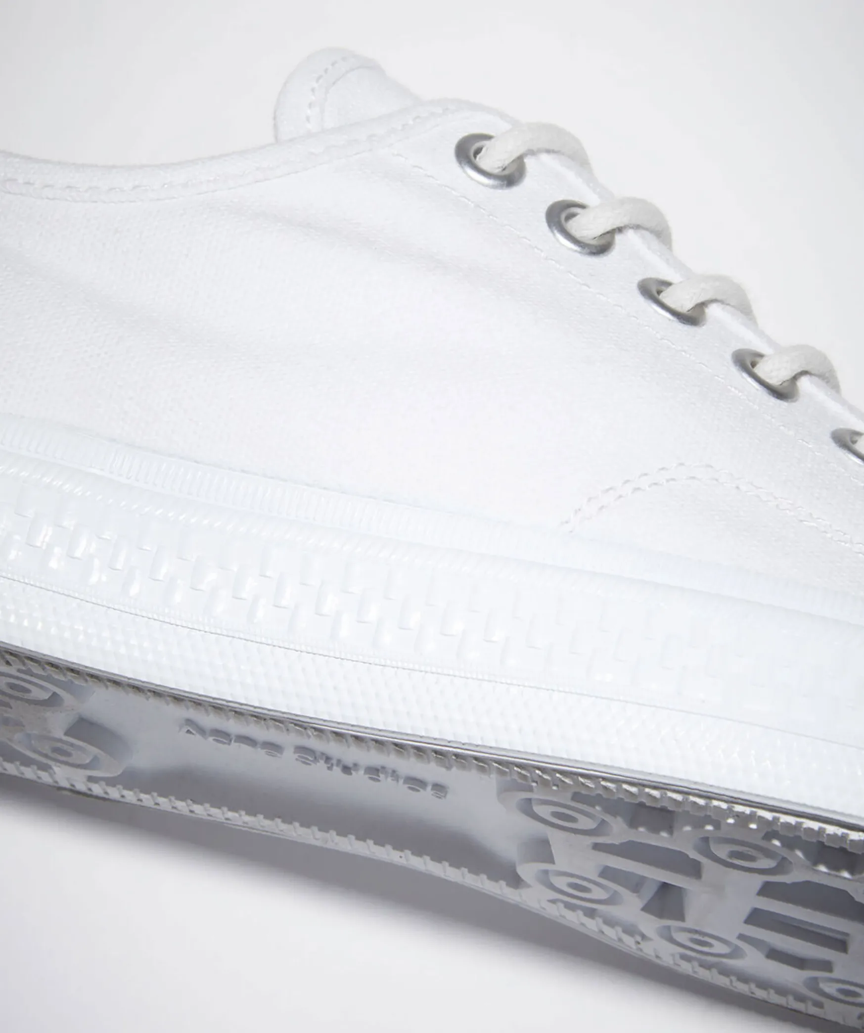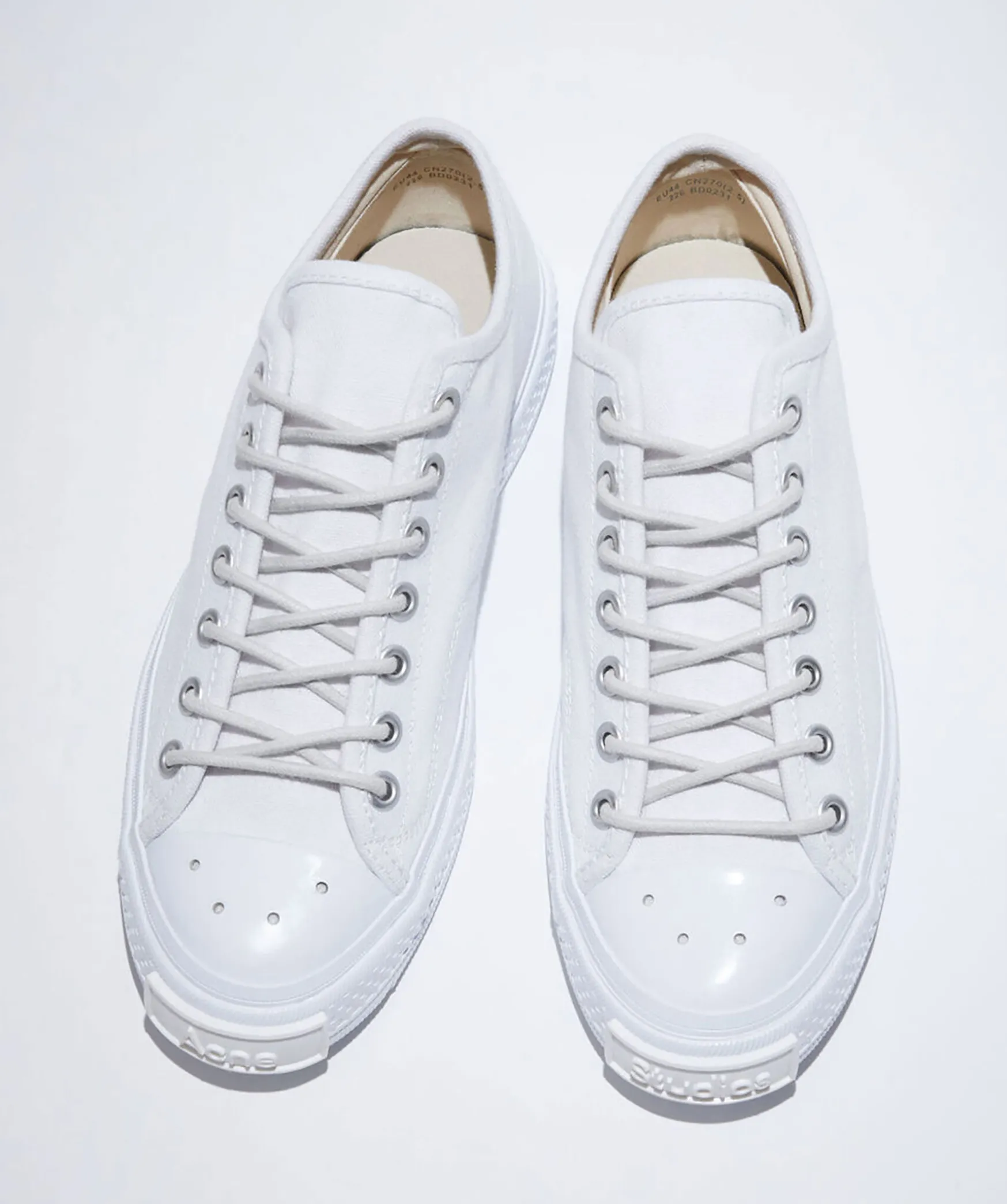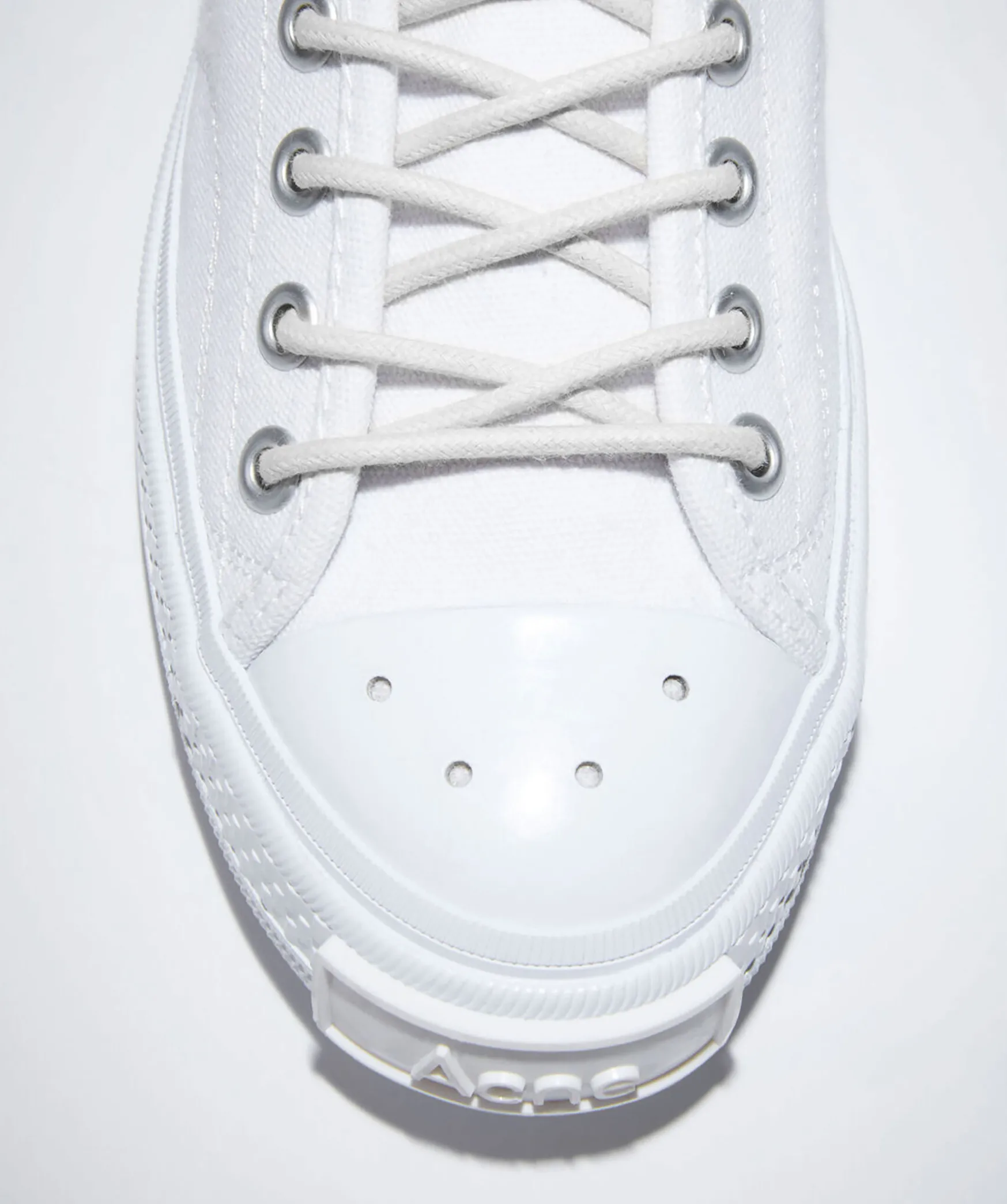 Vita, Laga Sneakers Tillverkade Av Bomull Med Gummisulor Fran Acne Studio. Logga Pa Sulan I Gummi Framtill Och Gummi Over Tarna Med Sma Hal I Samt Vit Snorning. Sulans Hojd: 2,5 Cm.