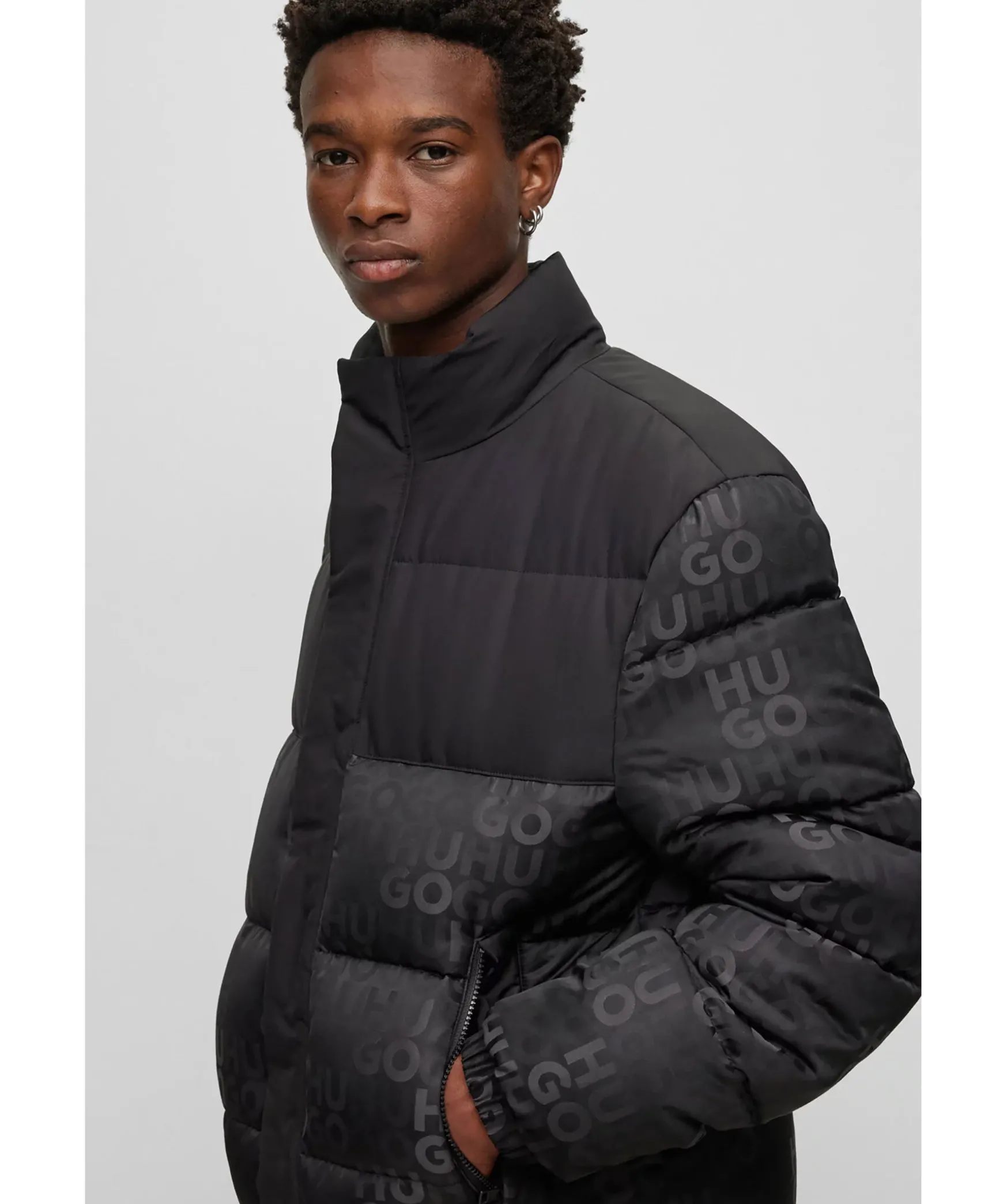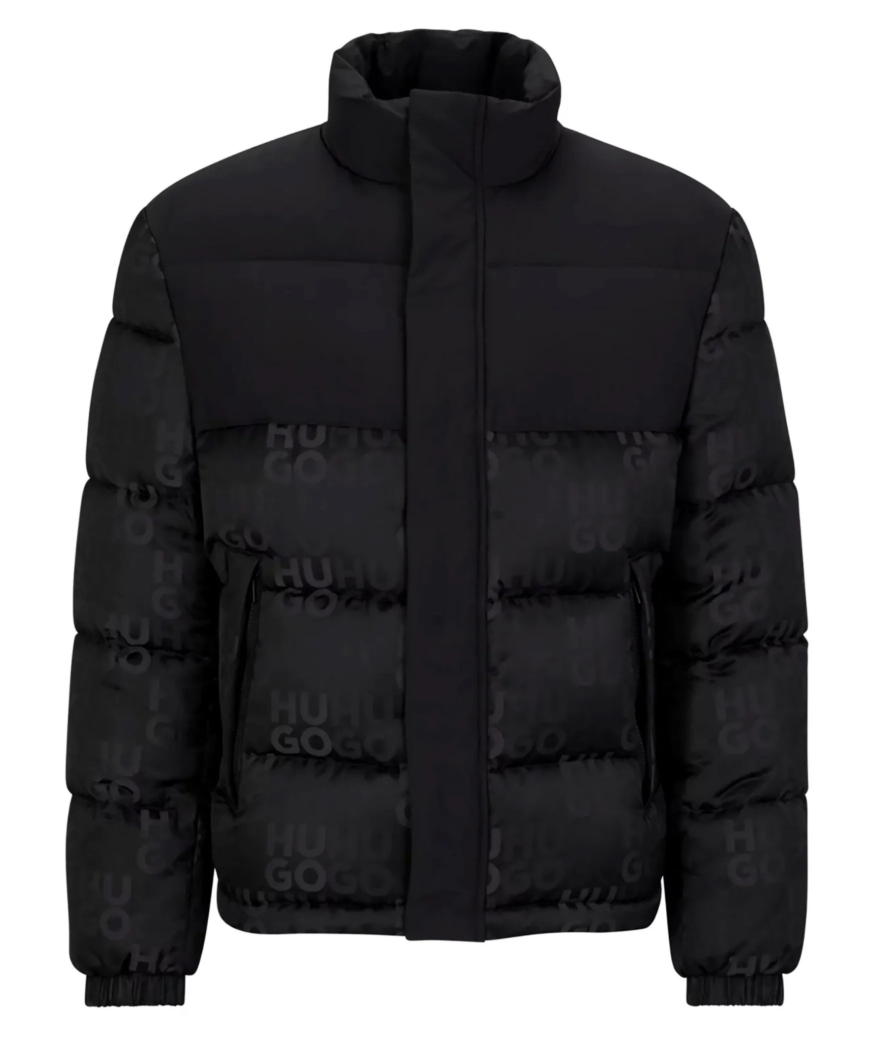 Svart Pufferjacka Med Vavt Monogram Monster Fran Hugo. Svart Kontrasttyg Pa Axlarna Och Brostet. Stangs Framtill Med Dragkedja Och Tryckknappar. Tva Fickor Framtill Som Stangs Med Dragkedja. Innerficka Som Stangs Med Dragkedja. Elastisk Resar Vid Armslut. Dragsko Vid Jackslut.