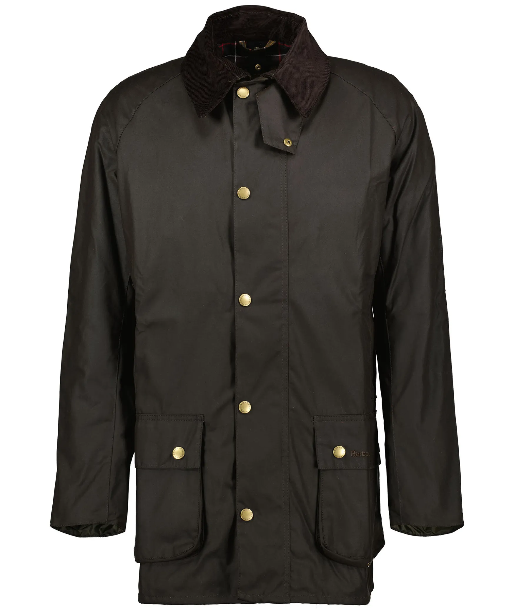 Morkbrun, Vaxad Jacka Fran Barbour. Jackan Har Fyra Fickor Framtill Varav Tva Som Stangs Med Lock Och Tryckknappar, Samt En Innerficka. Krage I Brunt Manchestertyg. Jackan Stangs Med En Ordentlig Dragkedja Och Tryckknappar. Vadrings Dragkedjor I Jackans Sida. Rutigt Foder I Bomullsblandning, Ett Tjockare Foder Kan Kopas Till For Att Halla Varmen Battre.