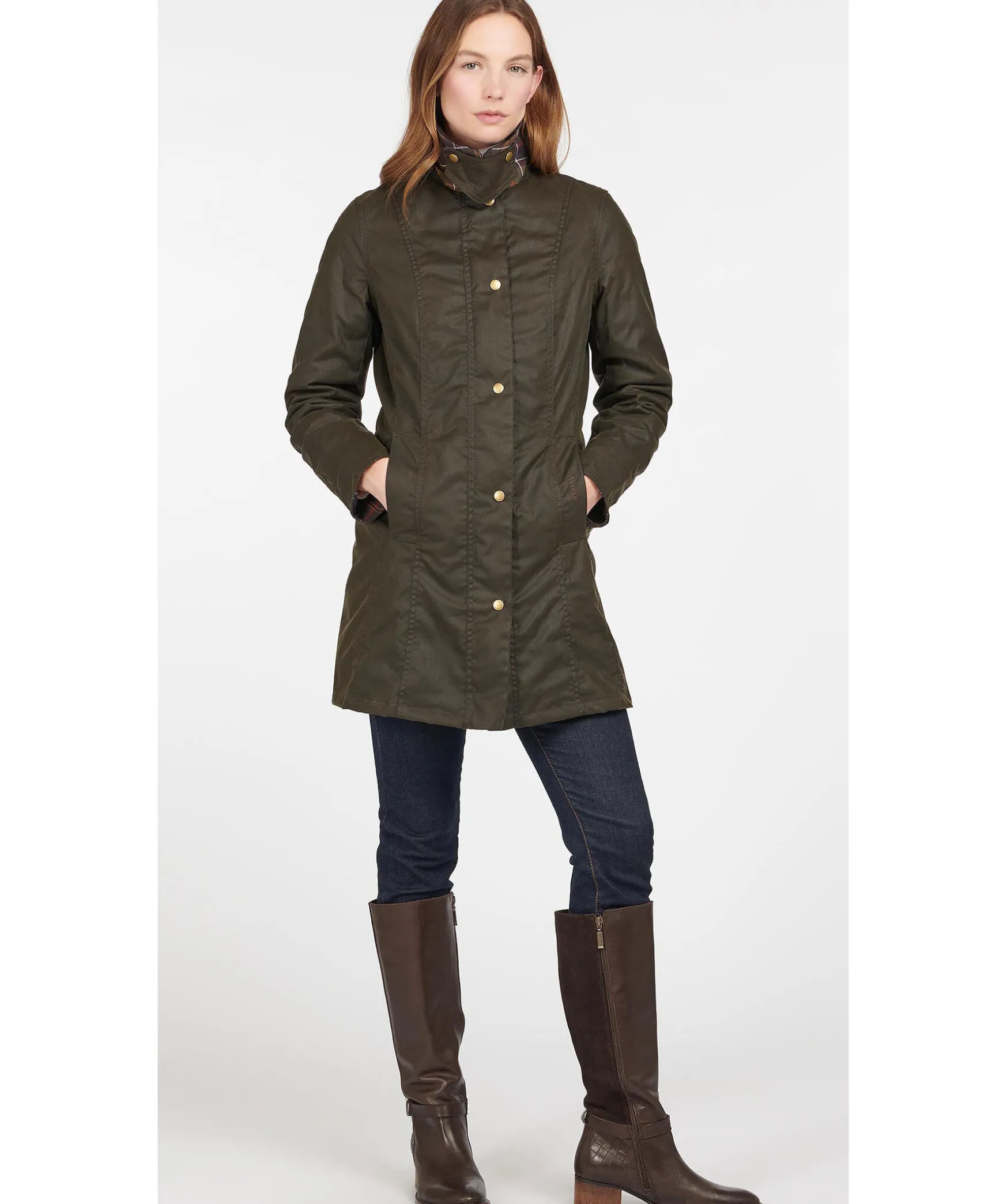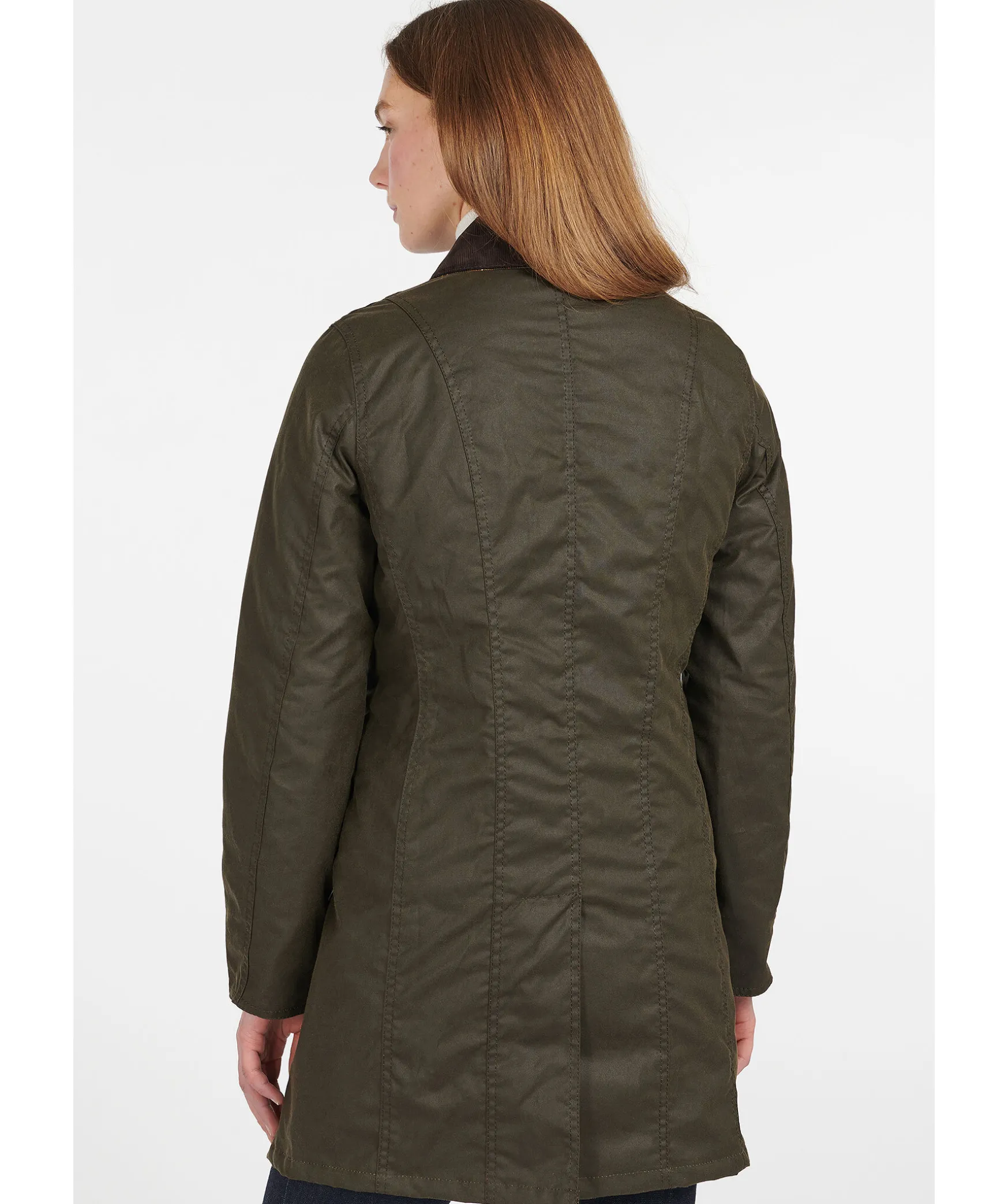 Morkgron Vaxad Kappa Fran Barbour. Jackan Tva Framfickor Och En Innerficka. Krage I Brunt Manchestertyg Och Slits Baktill. Kappan Stangs Med En Ordentlig Dragkedja Och Tryckknappar. Quiltat Foder Pa Jackans Insida. Perfekt For Den Kyliga Hosten. Matt: 84 Cm Fran Kragen Langs Ryggen I Storlek C36.