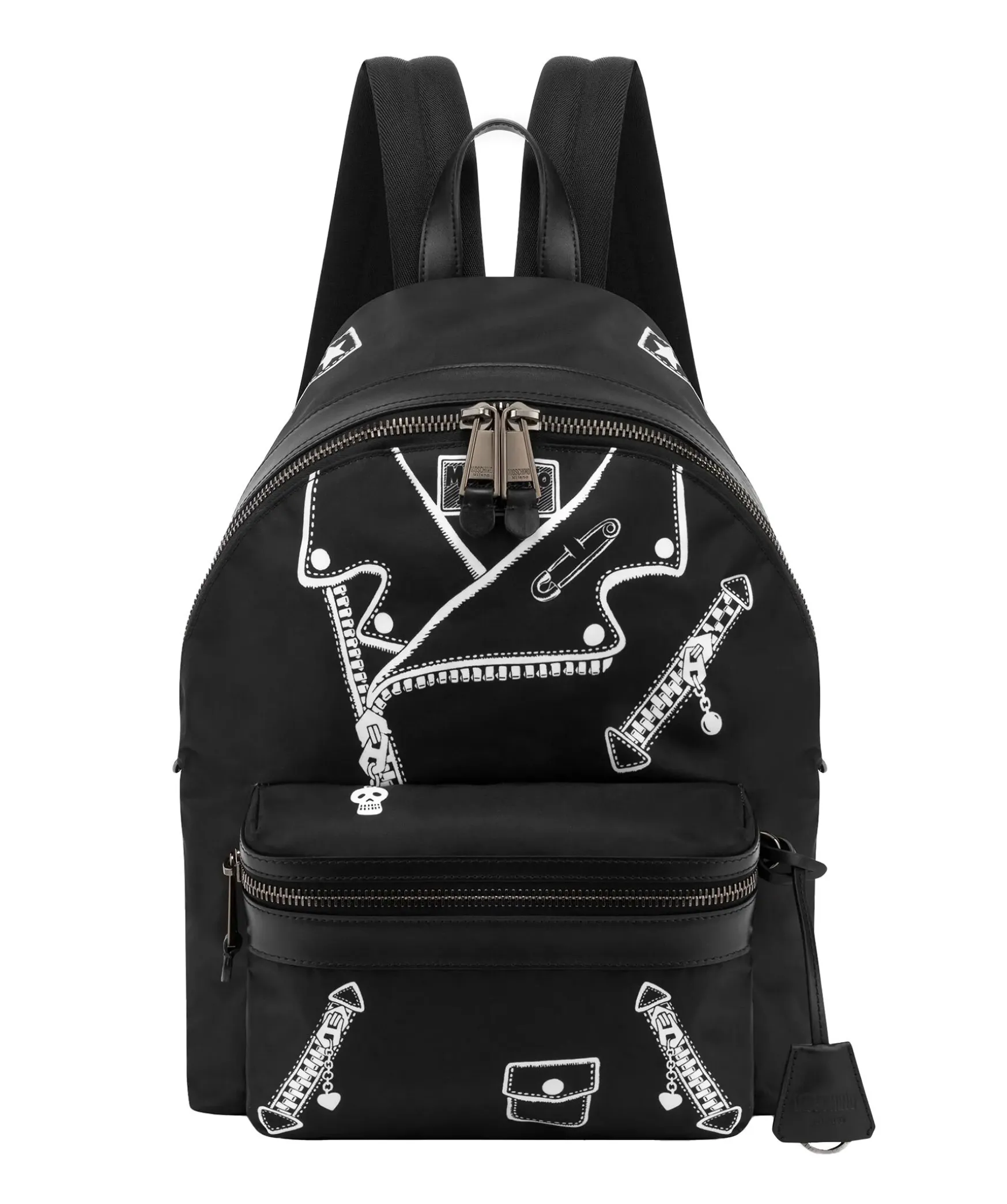 Svart Ryggsack Fran Moschino. Gjord I Polyester Med Skinndetaljer. Ryggsacken Har Ett Print Forestallande En Klassisk Bikerjacka. Vaskan Stangs Med Tvavagsdragkedja. Ett Stort Ytterfack Med Dragkedja. Fyra Innerfickor I Olika Storlekar. Djup: 20Cmhojd: 42Cmbredd: 30Cm