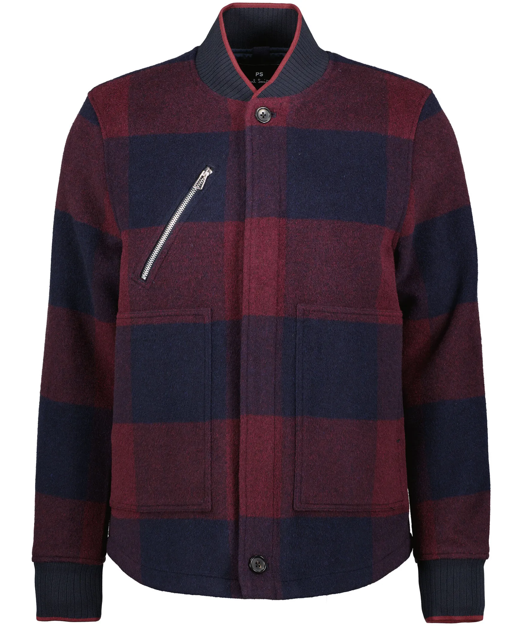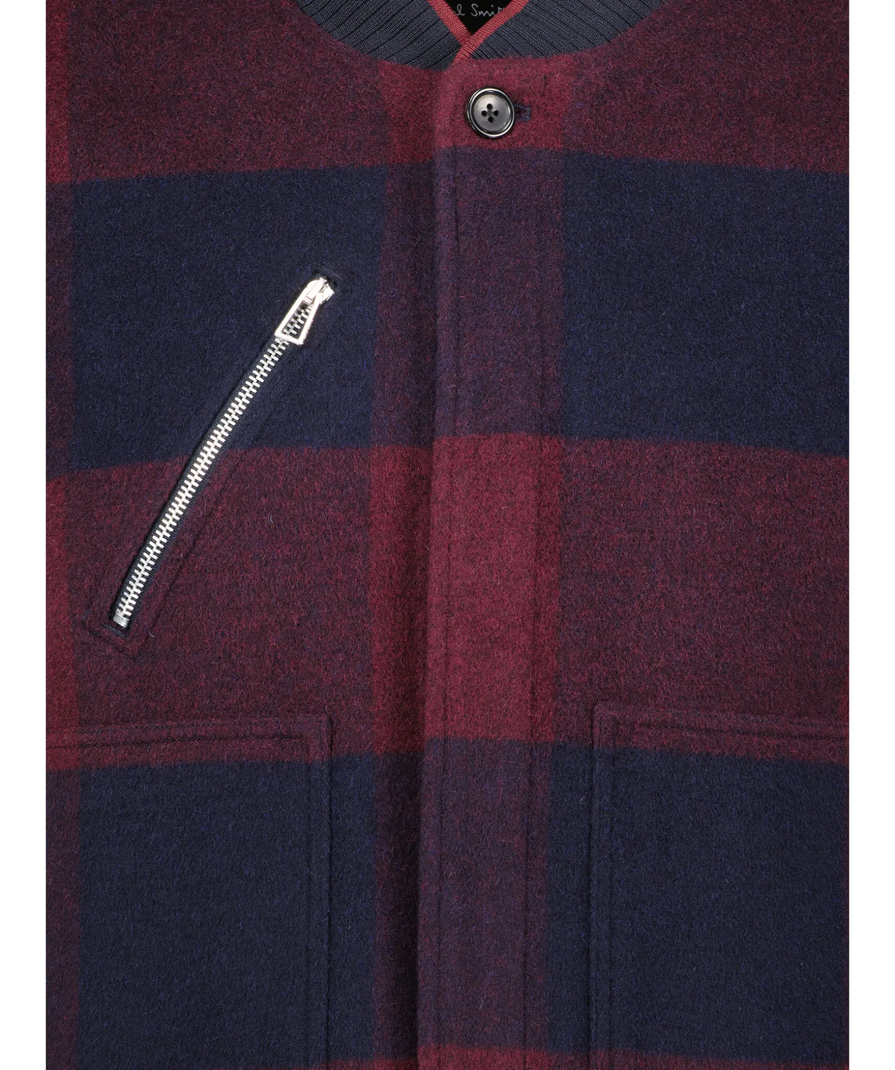 Morkrod Och Svartrutig Jacka Fran Ps Paul Smith. Stangs Framtill Med Dragkedja Och Knappar. Ribbstickade Muddar Vid Arm- Och Plaggslut. Snedstalld Brostficka Pa Hoger Sida Som Stangs Med Dragkedja, Tva Fickor Framtill.