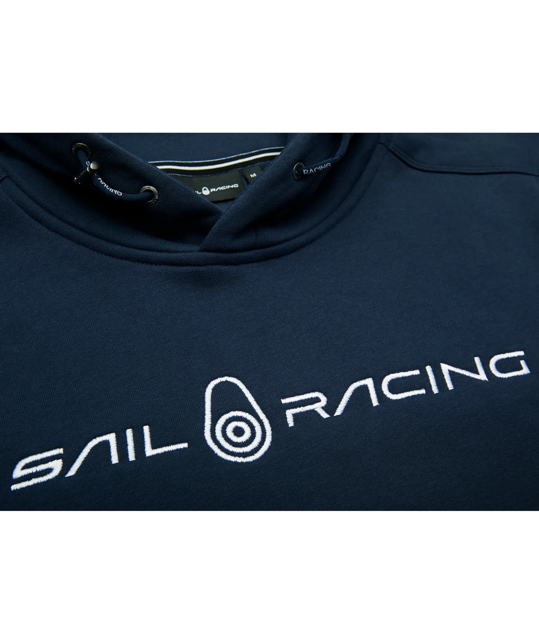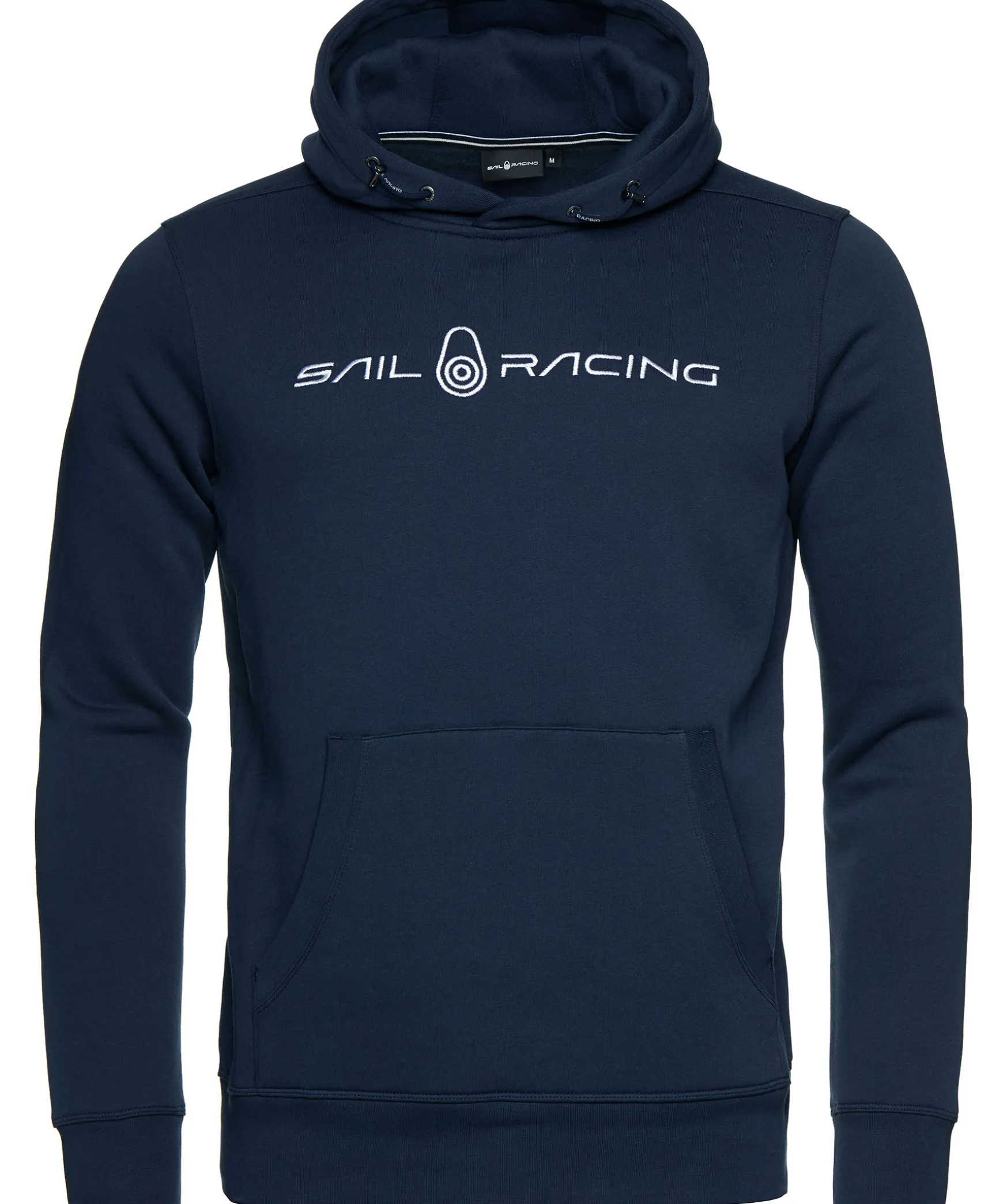 Marinbla Hoodie Fran Sail Racing. Stor Logotyp Pa Brostet Samt Ficka Pa Magen. Dragsko I Luva Och Muddar I Armslut Och Plaggslut.
