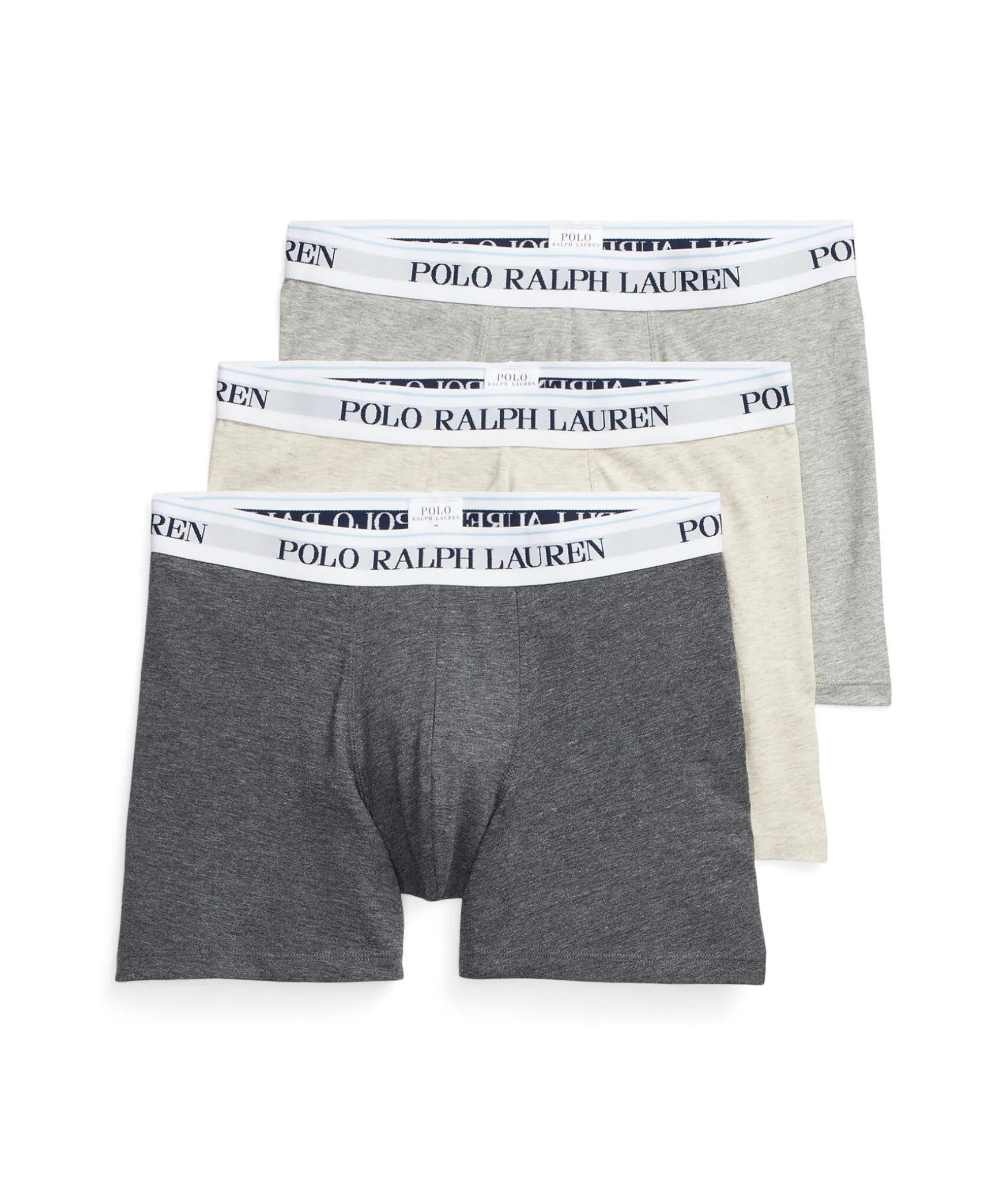 3-Pack Kalsonger I Tre Farger, Morkgra, Ljusgra Och Beige Fran Polo Ralph Lauren. Tillverkade I Stretchig Bomull, Vit Resar Med Logotyp.