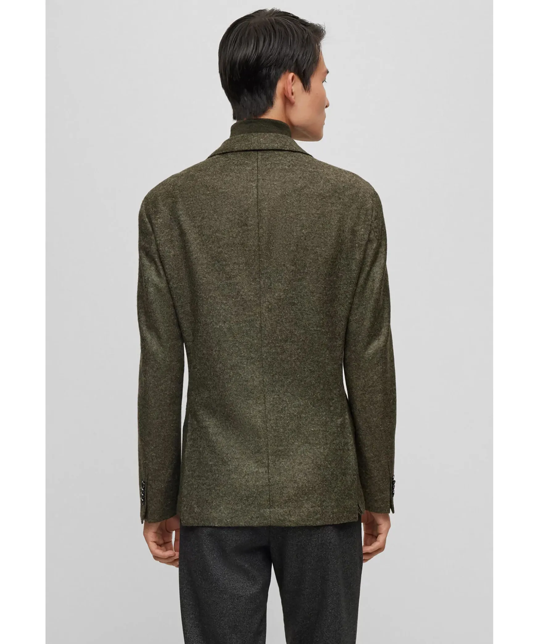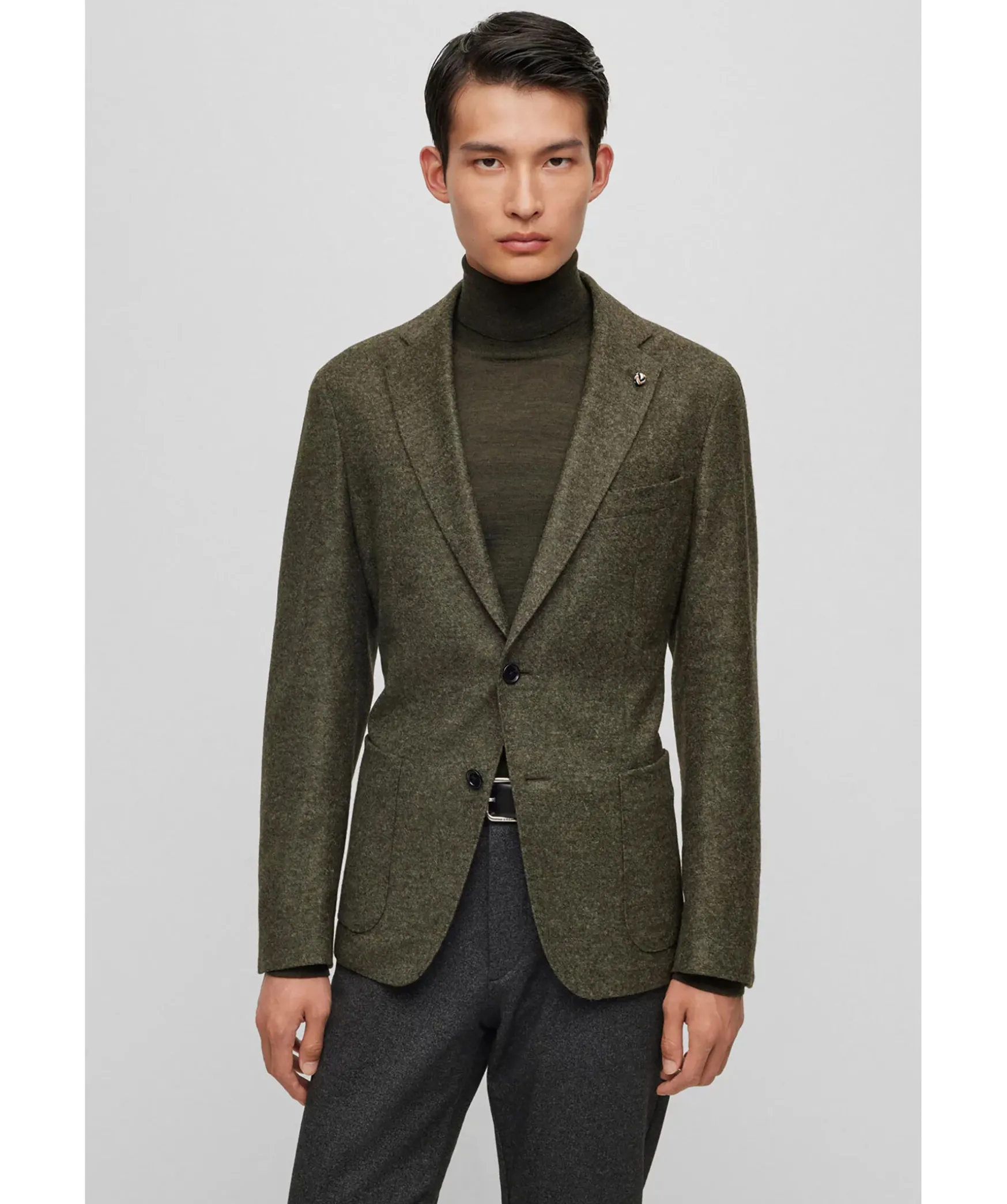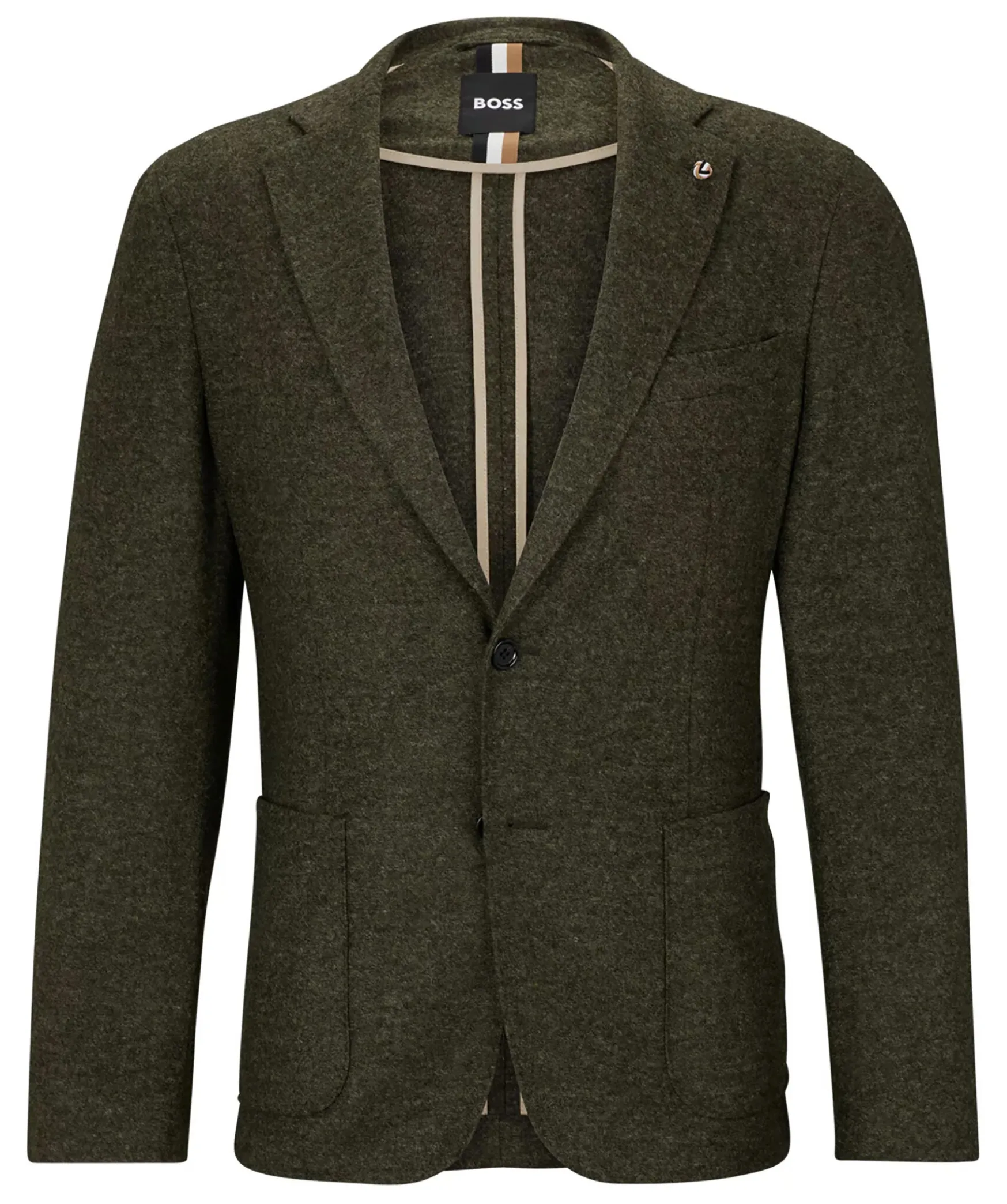Gronmelerad Kavaj Fran Boss Black. Kavajen Ar Ofodrad Och Har En Slim Fit Passform. Stangs Med Tva Knappar Framtill. Tva Oppna Framfickor Och En Brostficka. Trubbiga Slag.