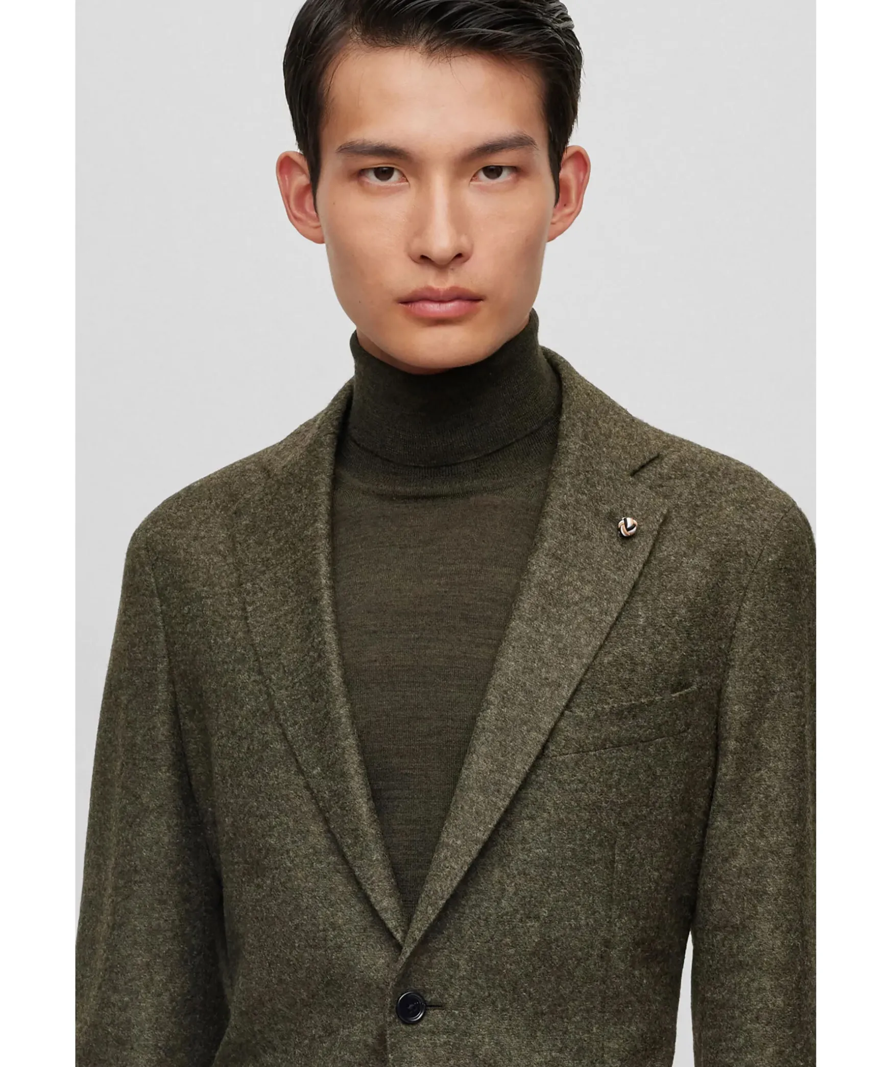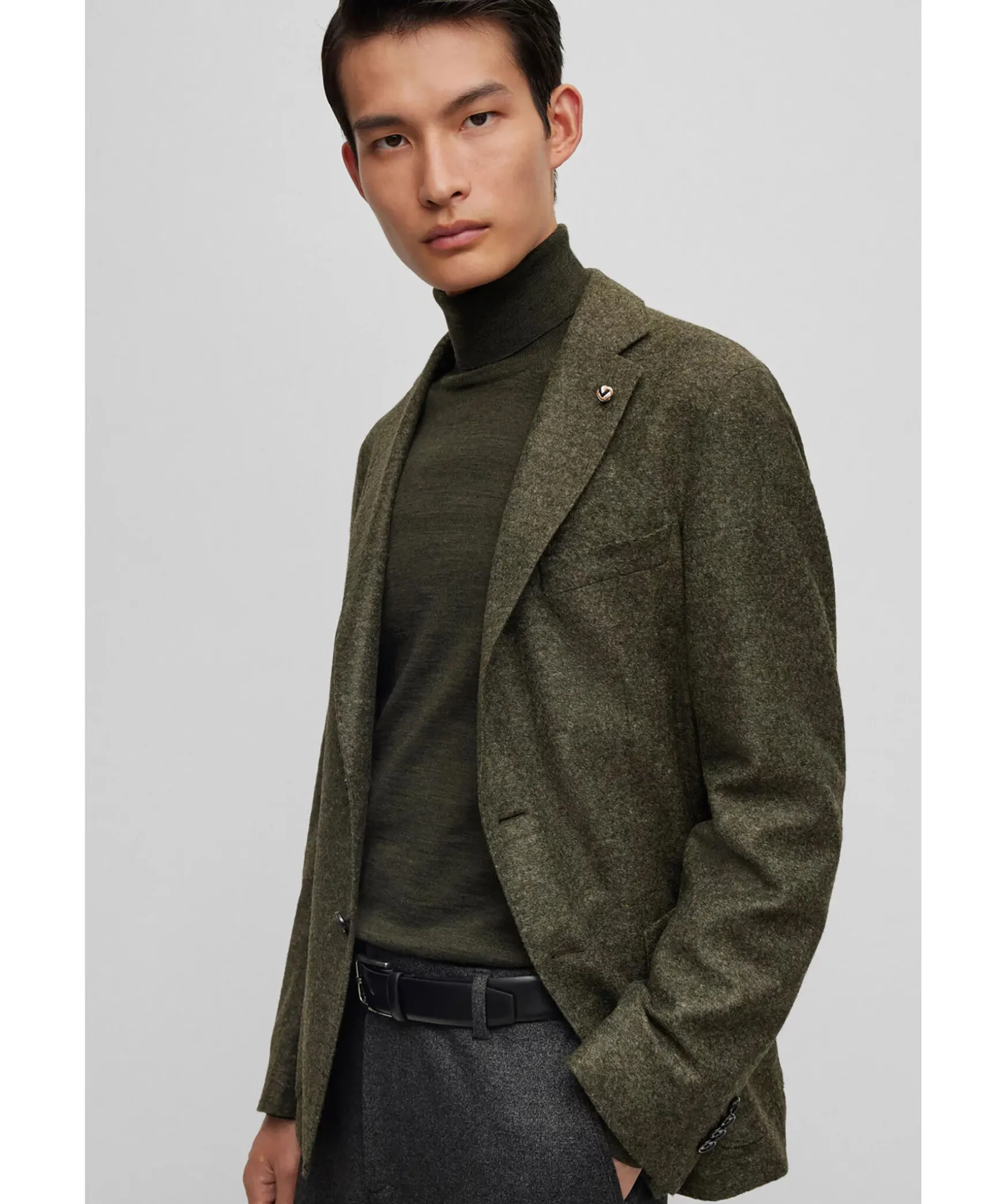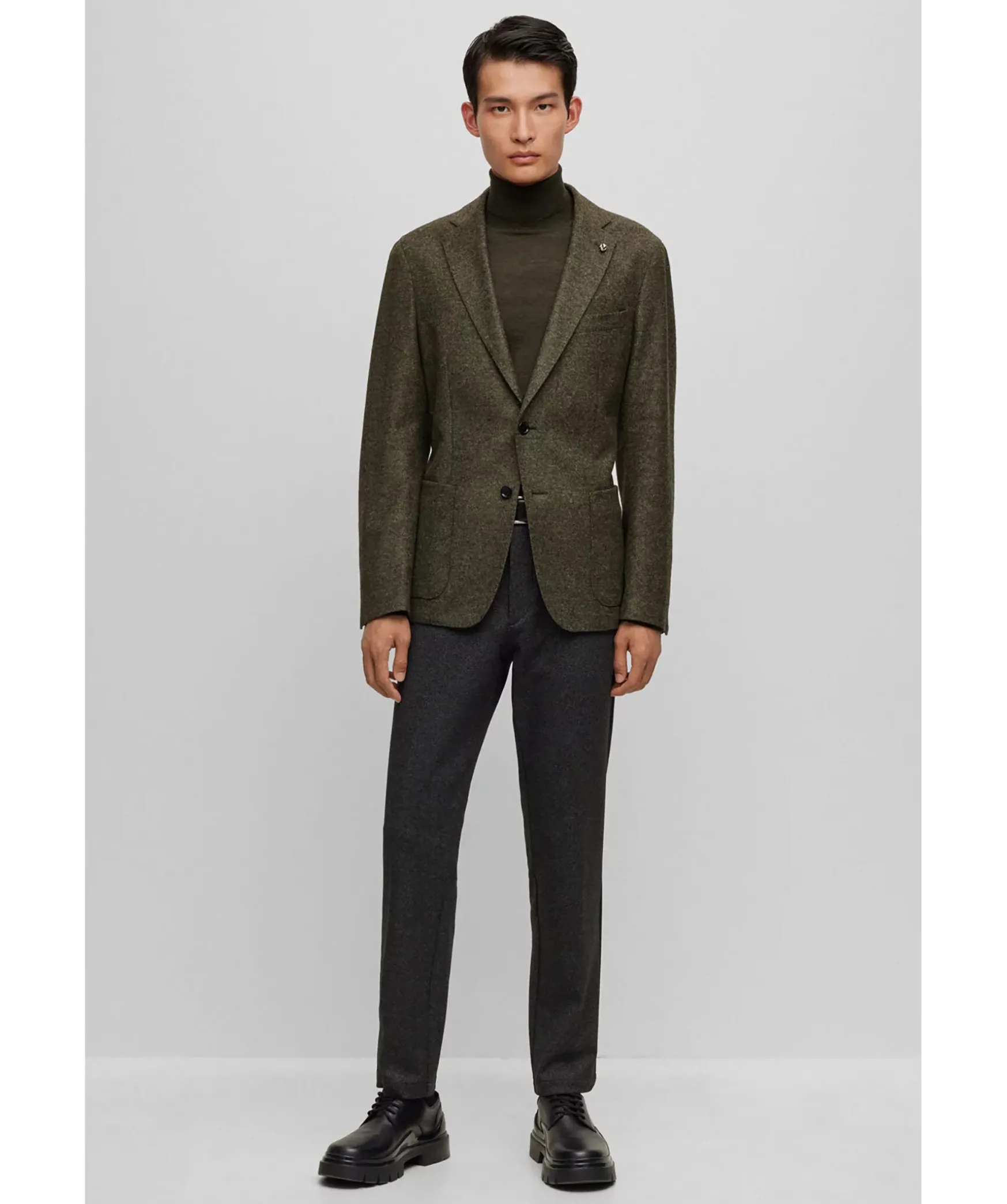 Gronmelerad Kavaj Fran Boss Black. Kavajen Ar Ofodrad Och Har En Slim Fit Passform. Stangs Med Tva Knappar Framtill. Tva Oppna Framfickor Och En Brostficka. Trubbiga Slag.