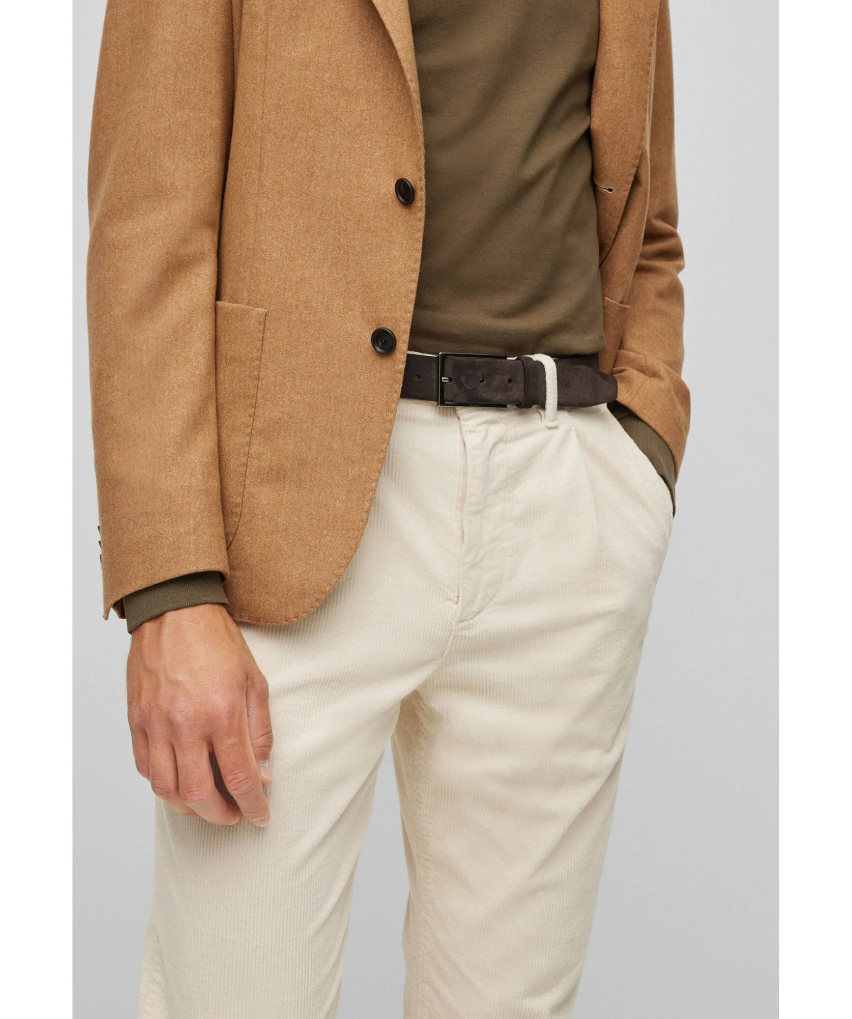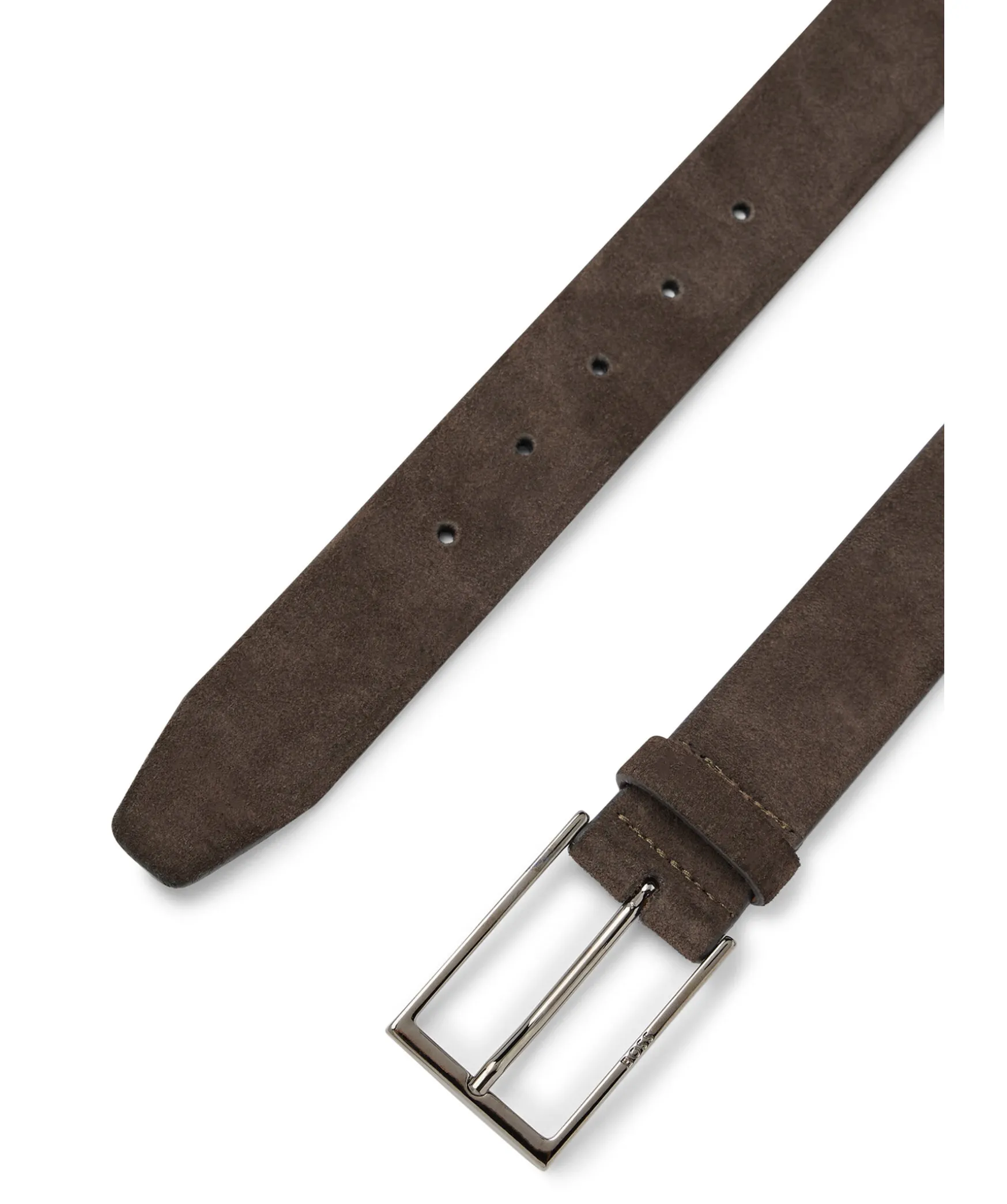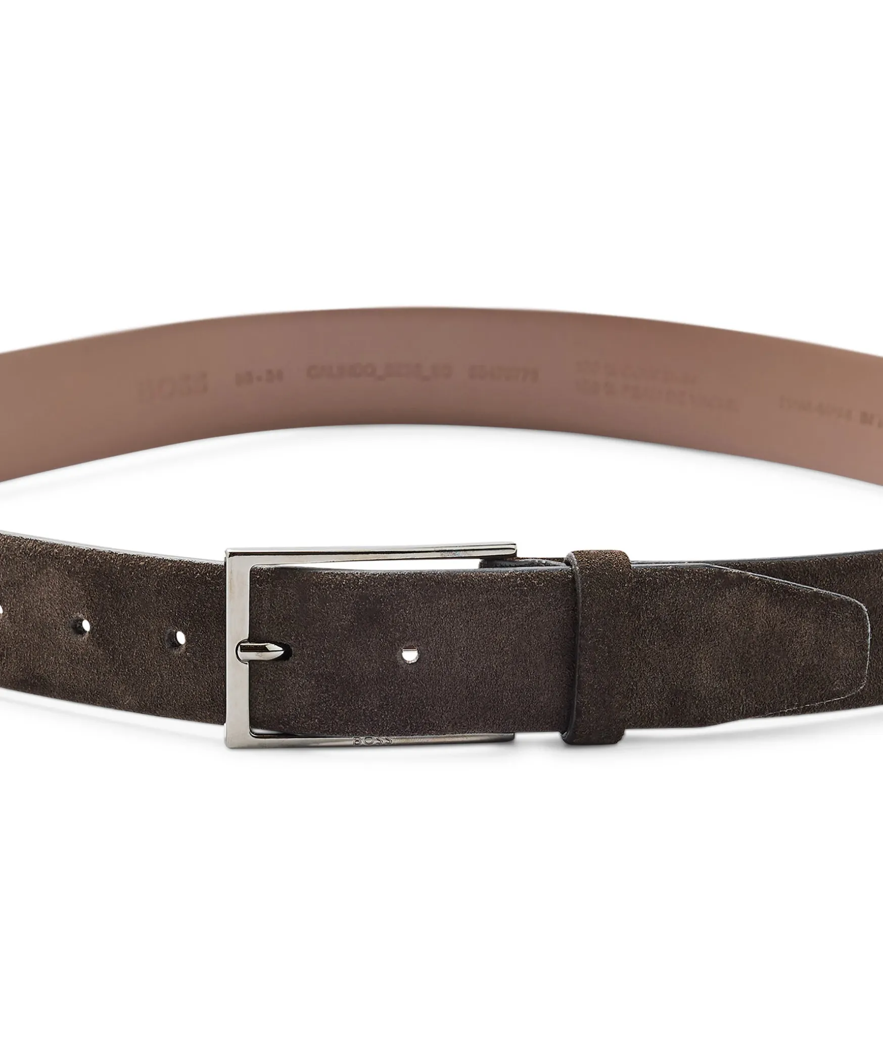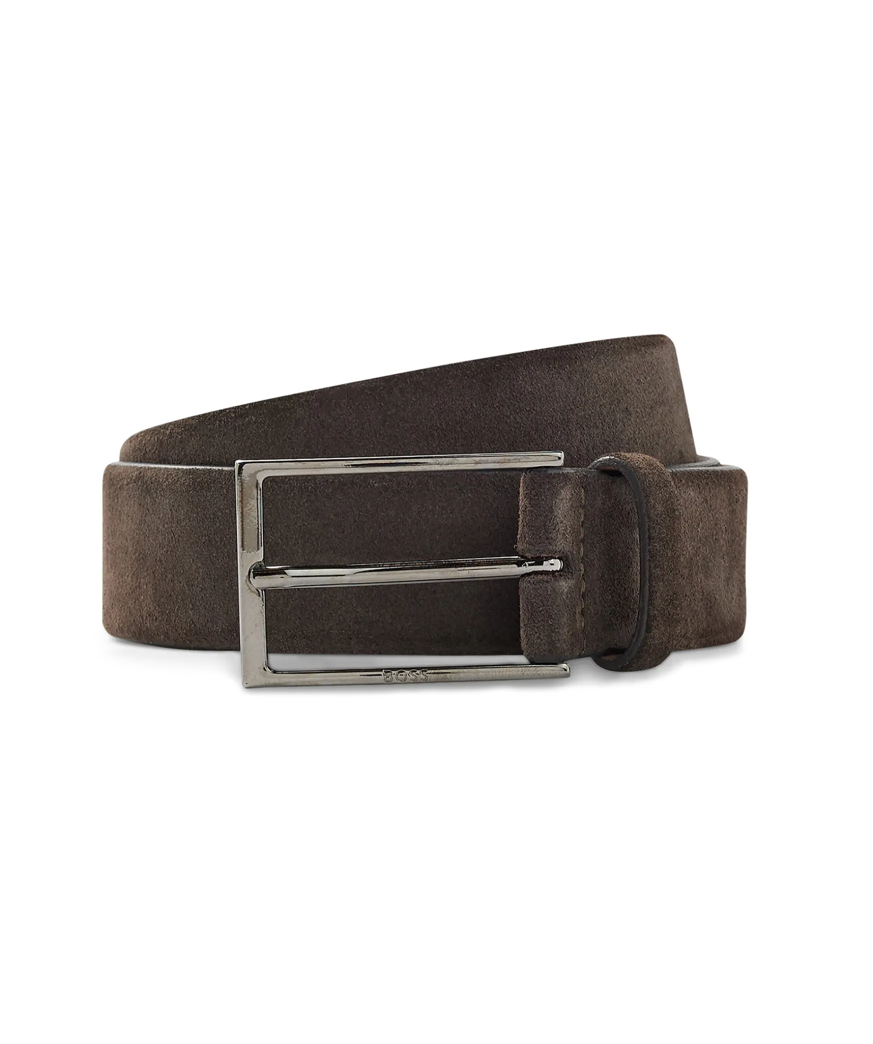 Morkbrunt Balte Fran Boss. Designad I Kraftig Mocka Och Spanns Med Ett Polerat Spanne I Metall Som Har En Boss-Logo In Graverat. For Basta Passform Rekommenderar Vi Att Du Bestaller En Storlek Storre An Din Midjestorlek. Bredd 3,5 Cm.