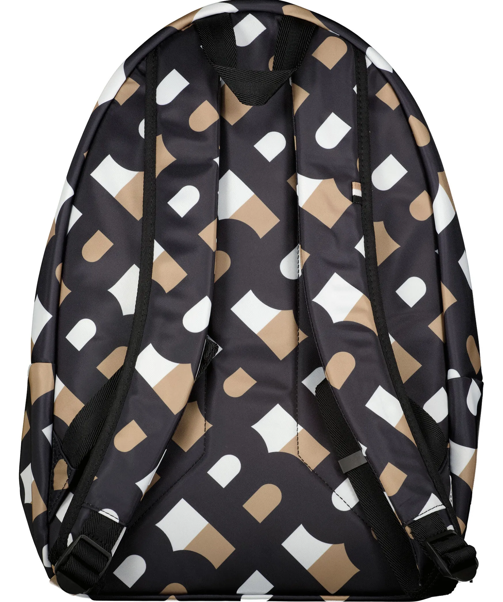 Svart, Monstrad Ryggsack Med Fran Boss. Tillverkad I Polyamid. Monster Som Forestaller Bokstaven B I Svart Som Upprepas Med Vitt Och Brunt Bakom. Stort Fack Med Dragkedja Och En Mindre Fack Med Dragkedja Pa Utsidan, Justerbara Axelband Och Halla Bak Att Hanga Upp Vaskan I.