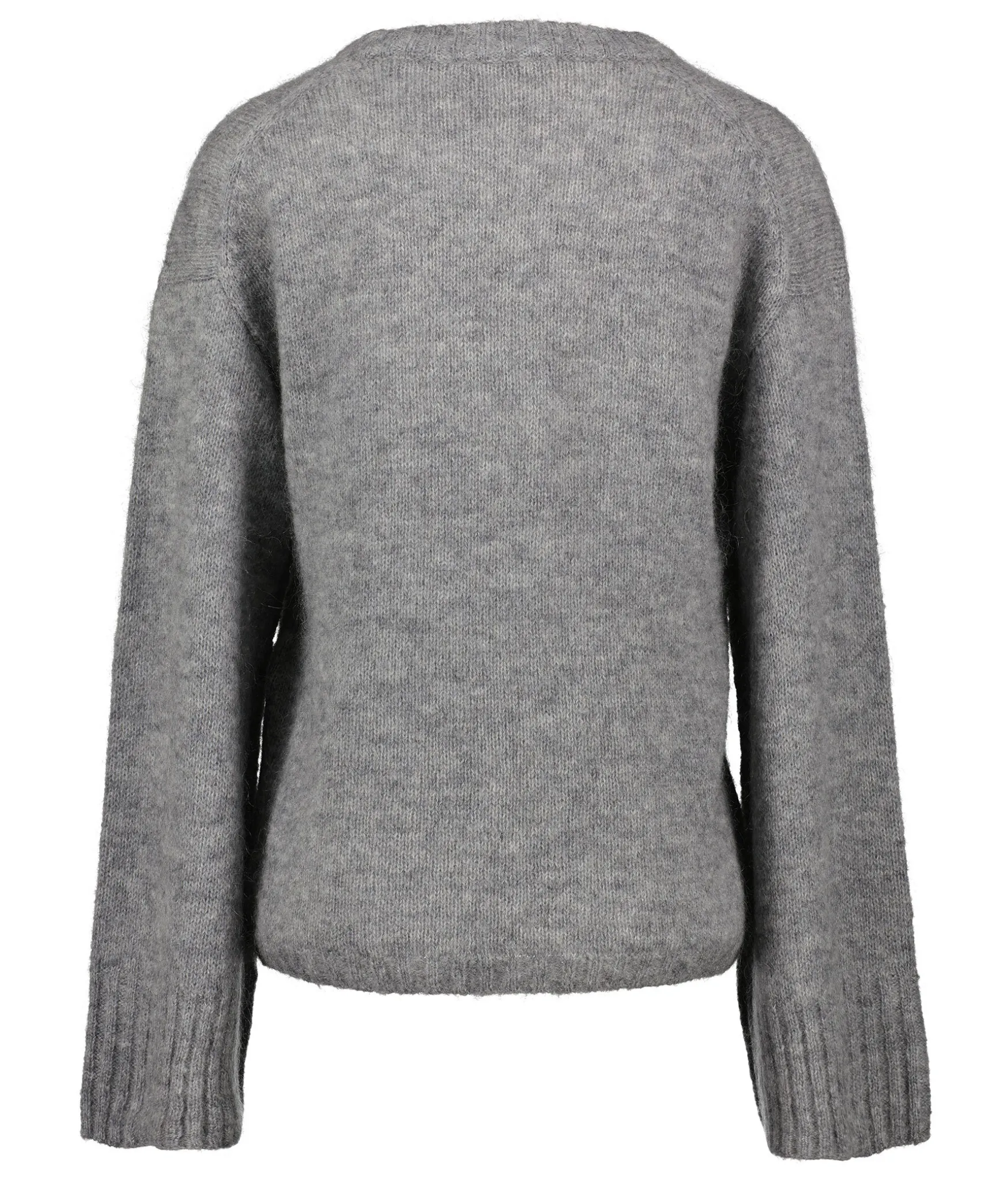 Gramelerad, Stickad Troja Fran By Malene Birger. Denna Troja Ar Stickad Av En Blandning Av Mohair Och Ull. Det Har Plagget Har Ribbade Kanter Langs Sin Runda Halsringning Och Vida Armar, Och Ar Formad Med Tappade Axlar Som Bidrar Till Dess Latt Strukturerade Form. Los Passform.