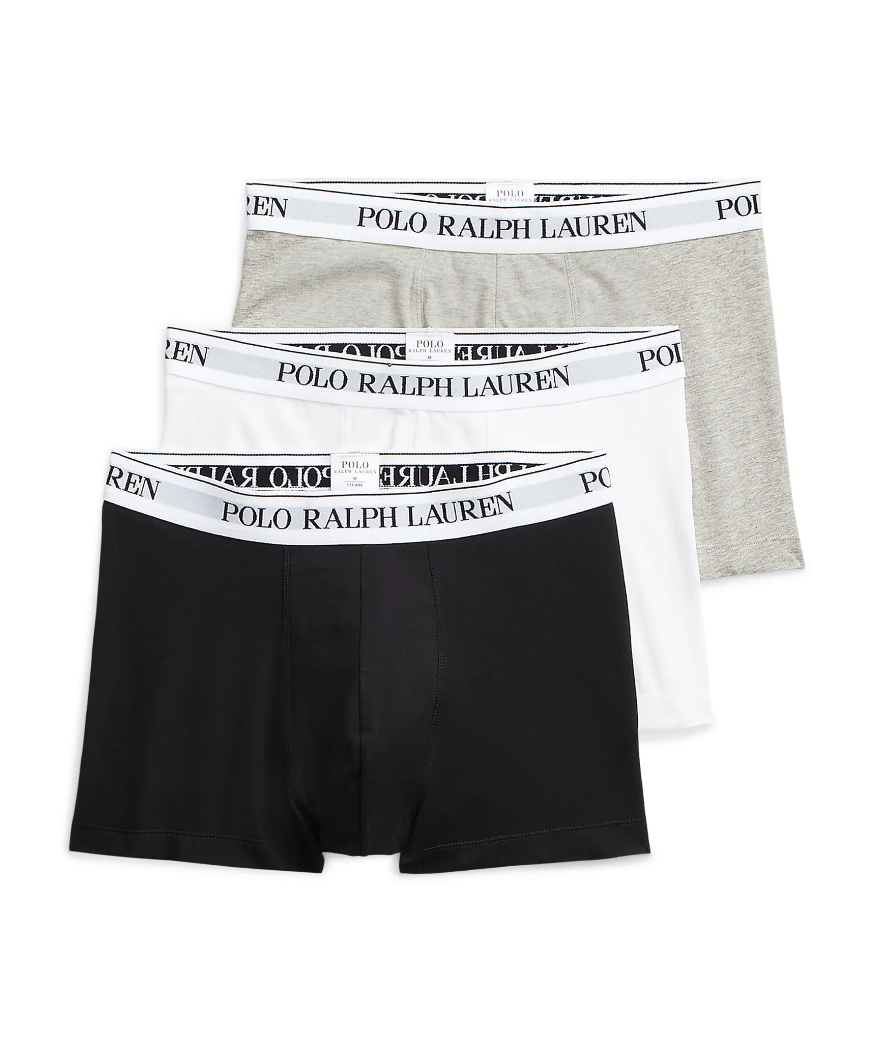 3-Pack Kalsonger I Tre Farger, Svart, Vit Och Gra Fran Polo Ralph Lauren. Tillverkade I Stretchig Bomull, Vit Resar Med Logotyp.