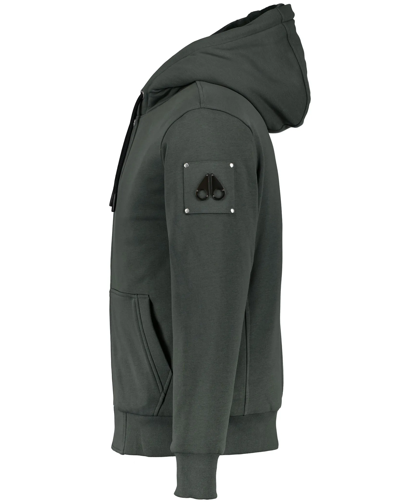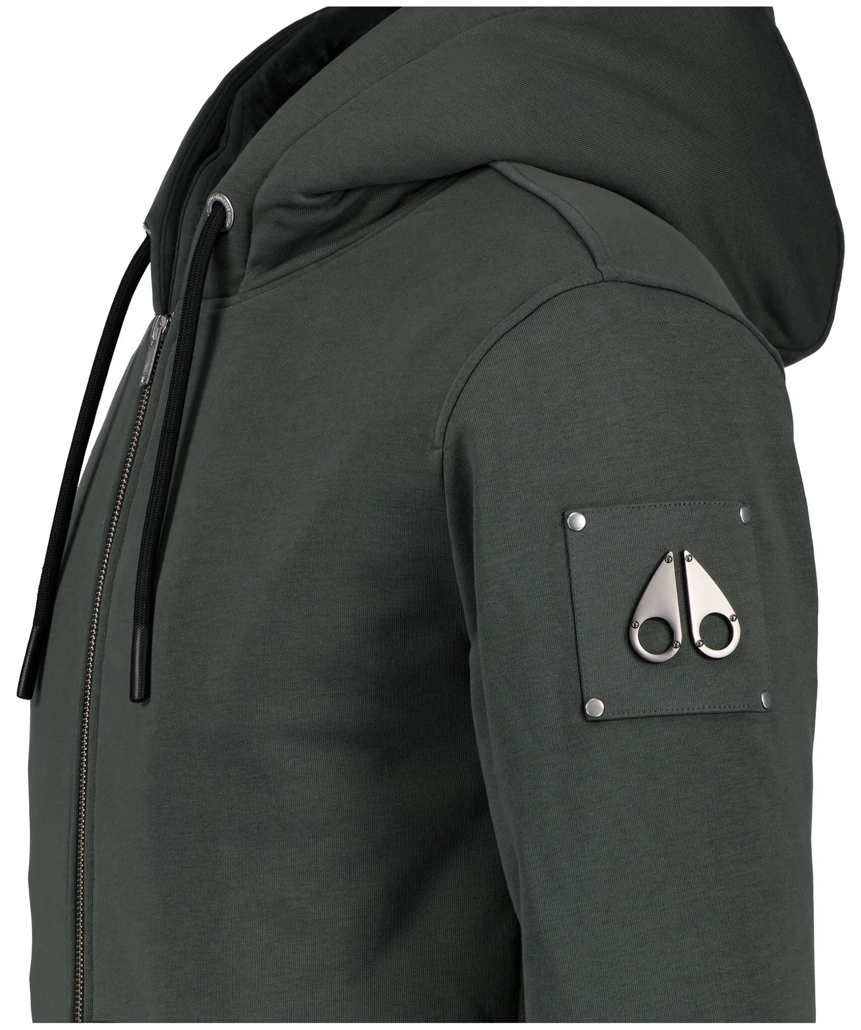 Skogsgron Vadderad Hoodie Fran Moose Knuckles. Stangs Framtill Med Dragkedja. Luva Med Dragsko. Ficka Pa Magen. Ribbstickad Mudd Vid Arm- Och Plaggslut. Patch Med Logotyp I Metall Pa Vanster Arm. Fodrad Luva I Konstpals.