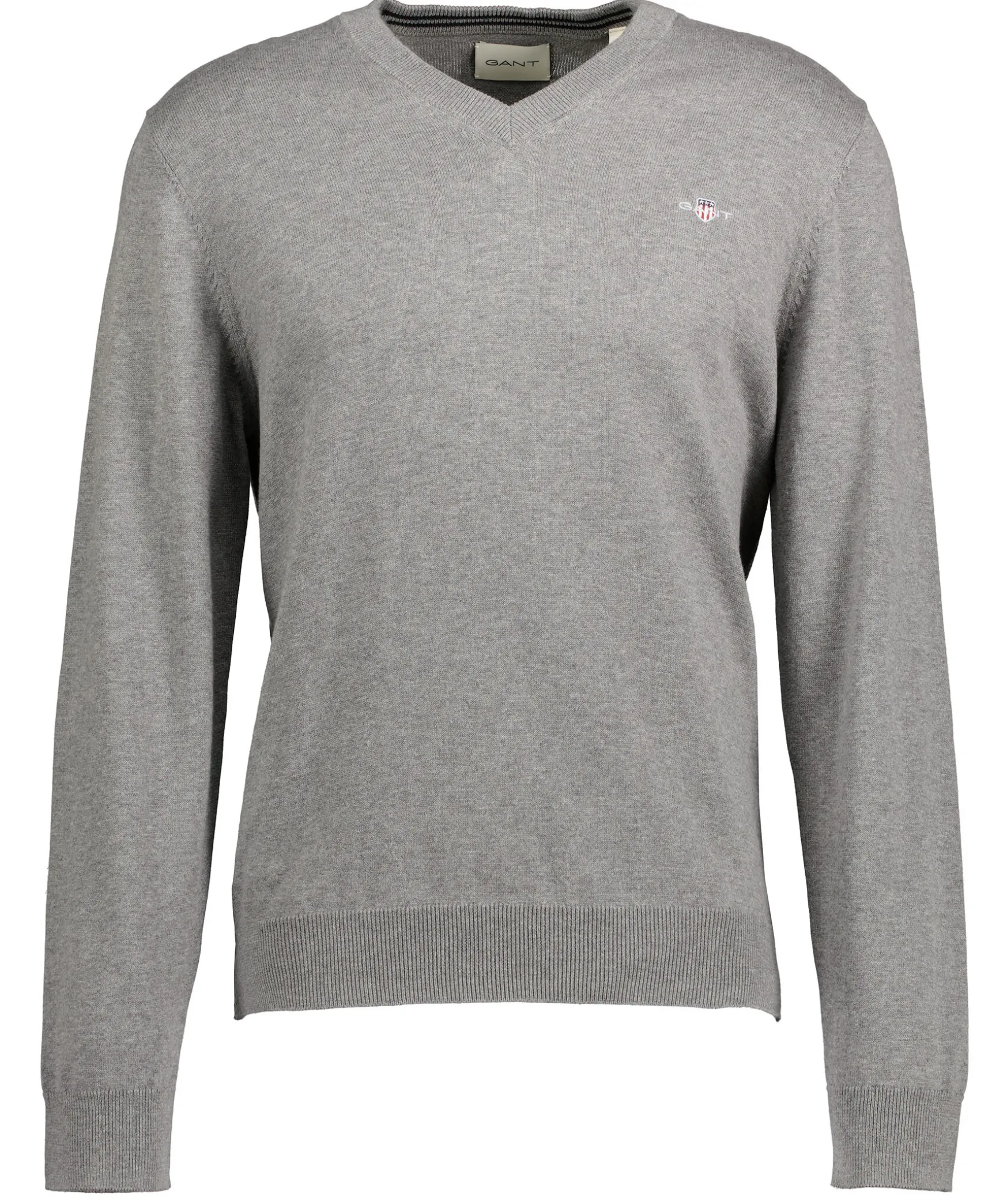Gra V-Ringad Bomullstroja Med Normal Passform Fran Gant. Trojan Har En Gant-Skold Broderad Pa Brostet. Den Ar Perfekt Att Anvanda Som Ett Extra Lager Over En Skjorta Med Valskurna Byxor Och En Seglarsko For En Typiskt Preppy Look.
