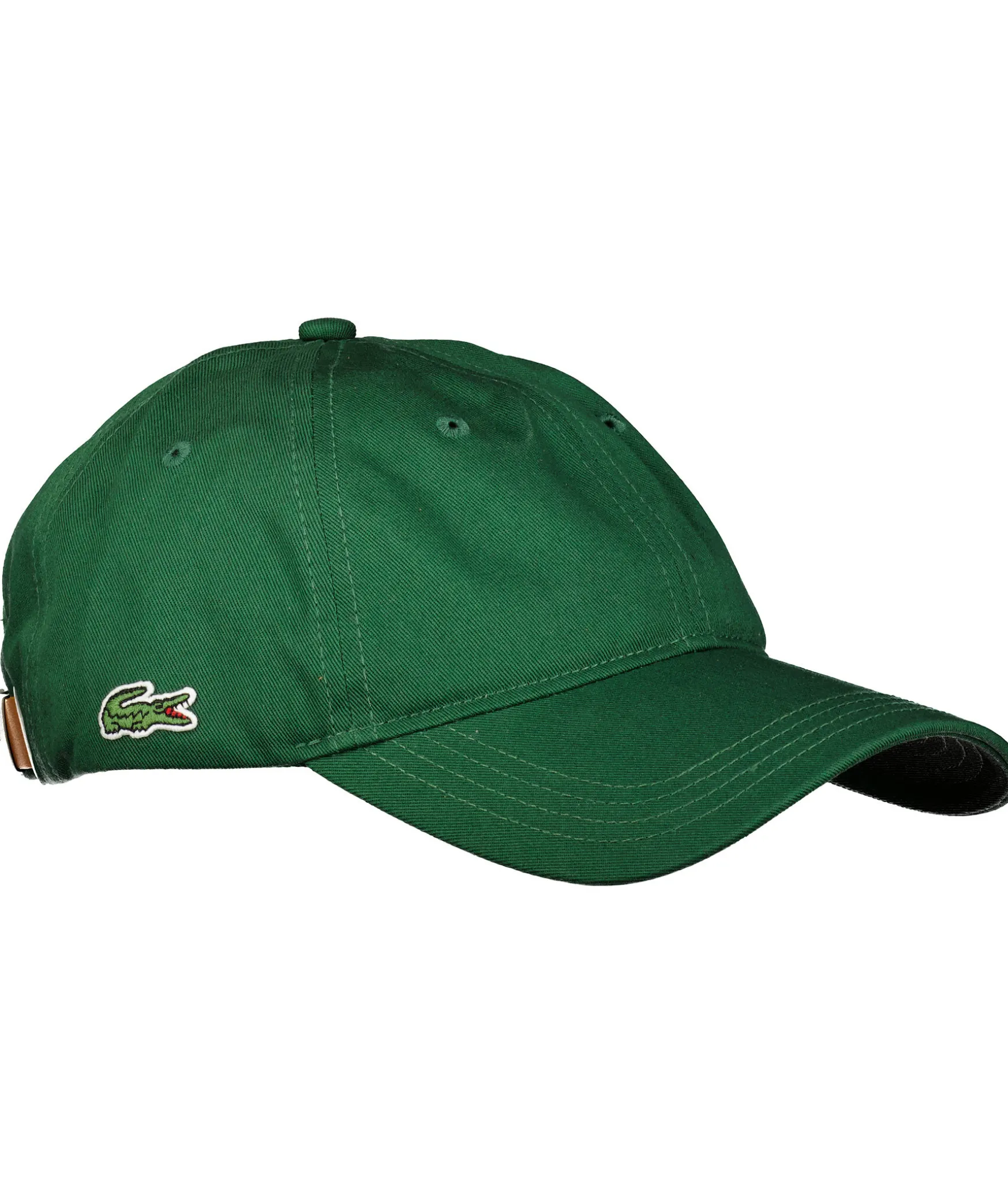 Gron Keps Fran Lacoste Gjord I 100% Bomull. Liten Krokodil Broderad Pa Ena Sidan Och En Reglerbart Spanne I Lader Baktill.