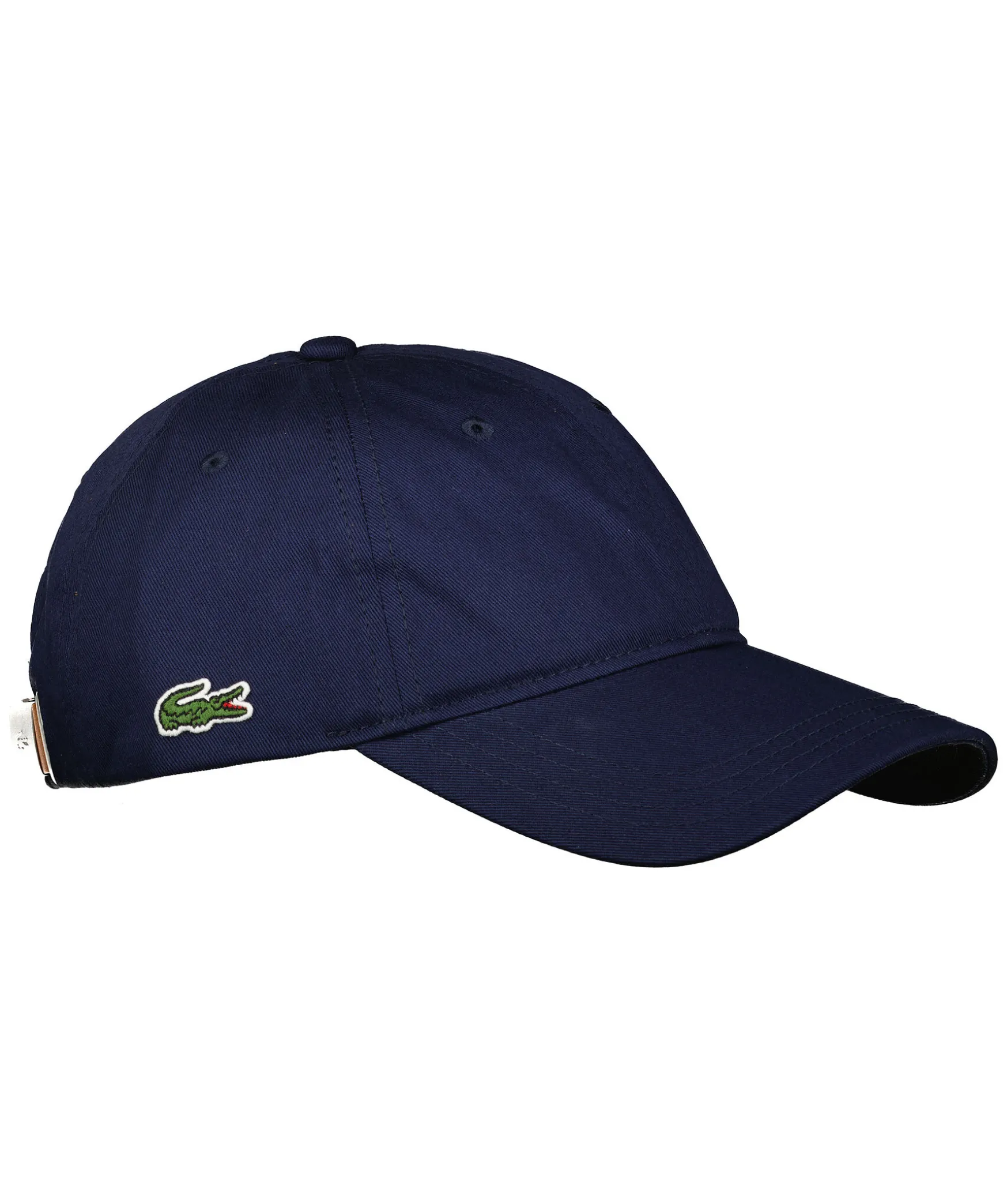Marinbla Keps Fran Lacoste Gjord I 100% Bomull. Liten Krokodil Broderad Pa Ena Sidan Och En Reglerbart Spanne I Lader Baktill.
