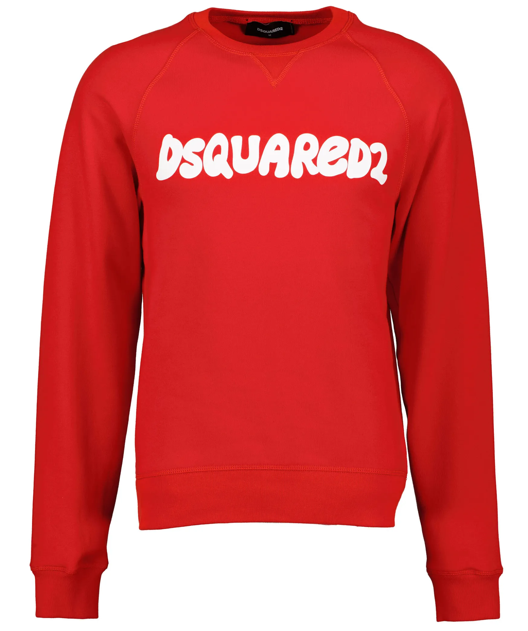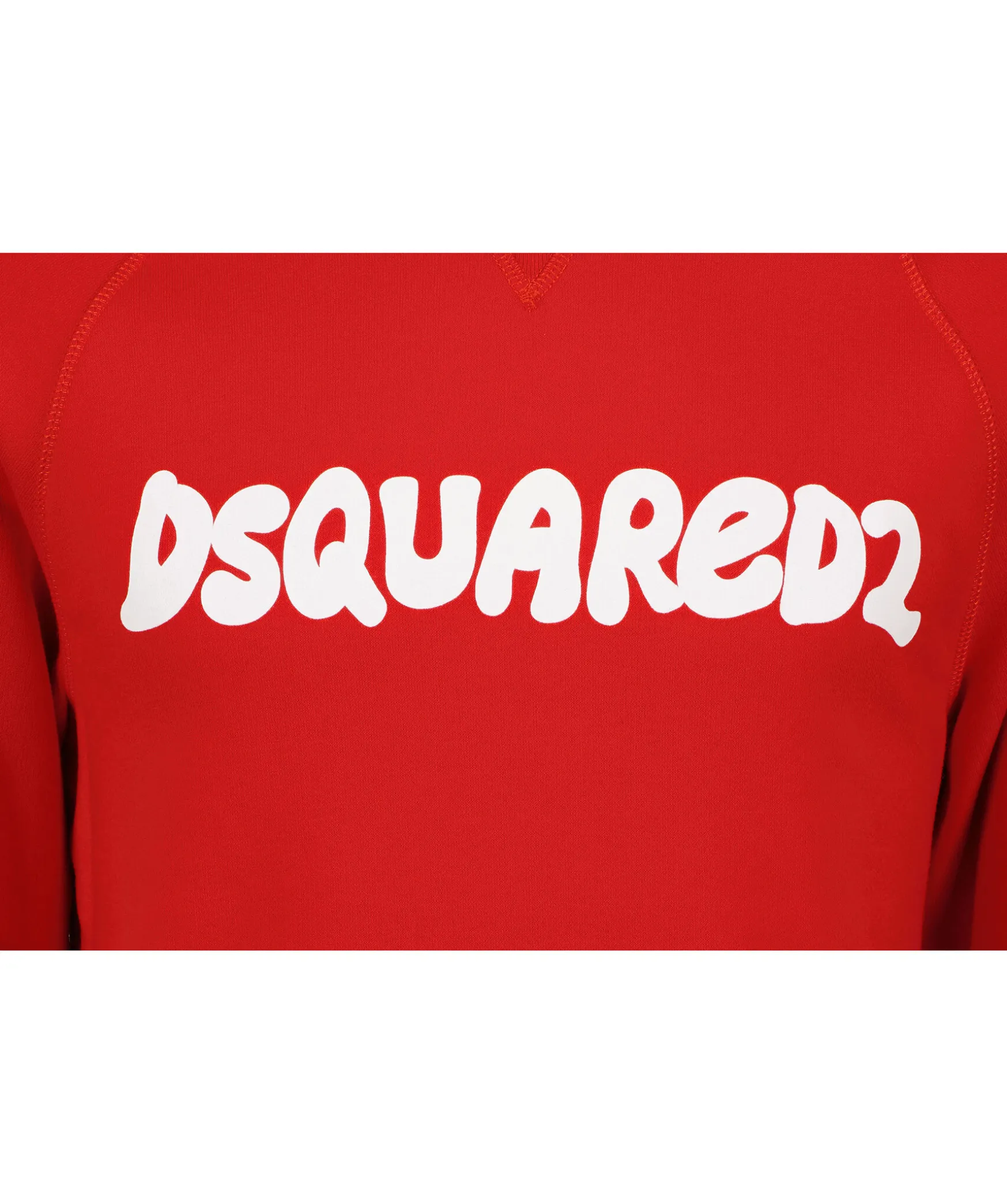 Rod Sweatshirt Fran Dsquared2 Med Vitt Logotyptryck Pa Brostet. Tillverkad I 100% Bomull. Ribbstickad Halsringning Samt Muddar Vid Arm- Och Plaggslut.