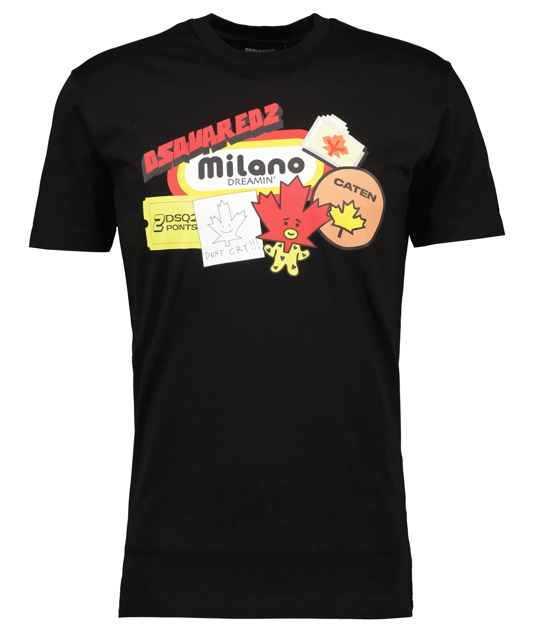 Svart T-Shirt Med Gult, Vitt Och Rott Tryck Pa Brostet Fran Barbour. Tillverkad I 100% Bomull. Rundad Halsring.
