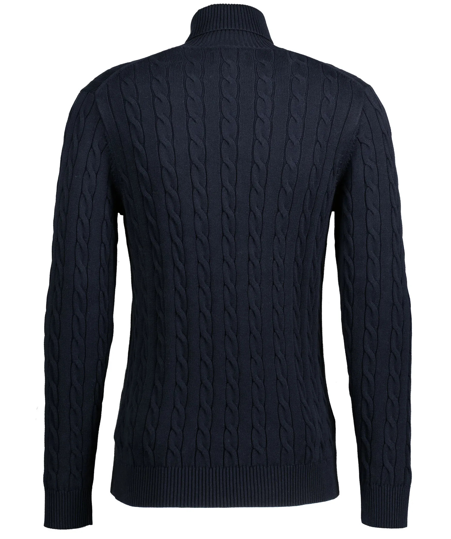 Marinbla Troja Med En Heltackande Kabelstickad Struktur Och Klassisk Polokrage Fran Gant. Den Har Detaljer Som En Skoldlogotyp Broderad Pa Brostet Samt Ribbstickade Muddar. En Kabelstickad Troja Ger Din Outfit Ett Element Av Struktur Och Passar Bra Till Bade Jeans Och Byxor.