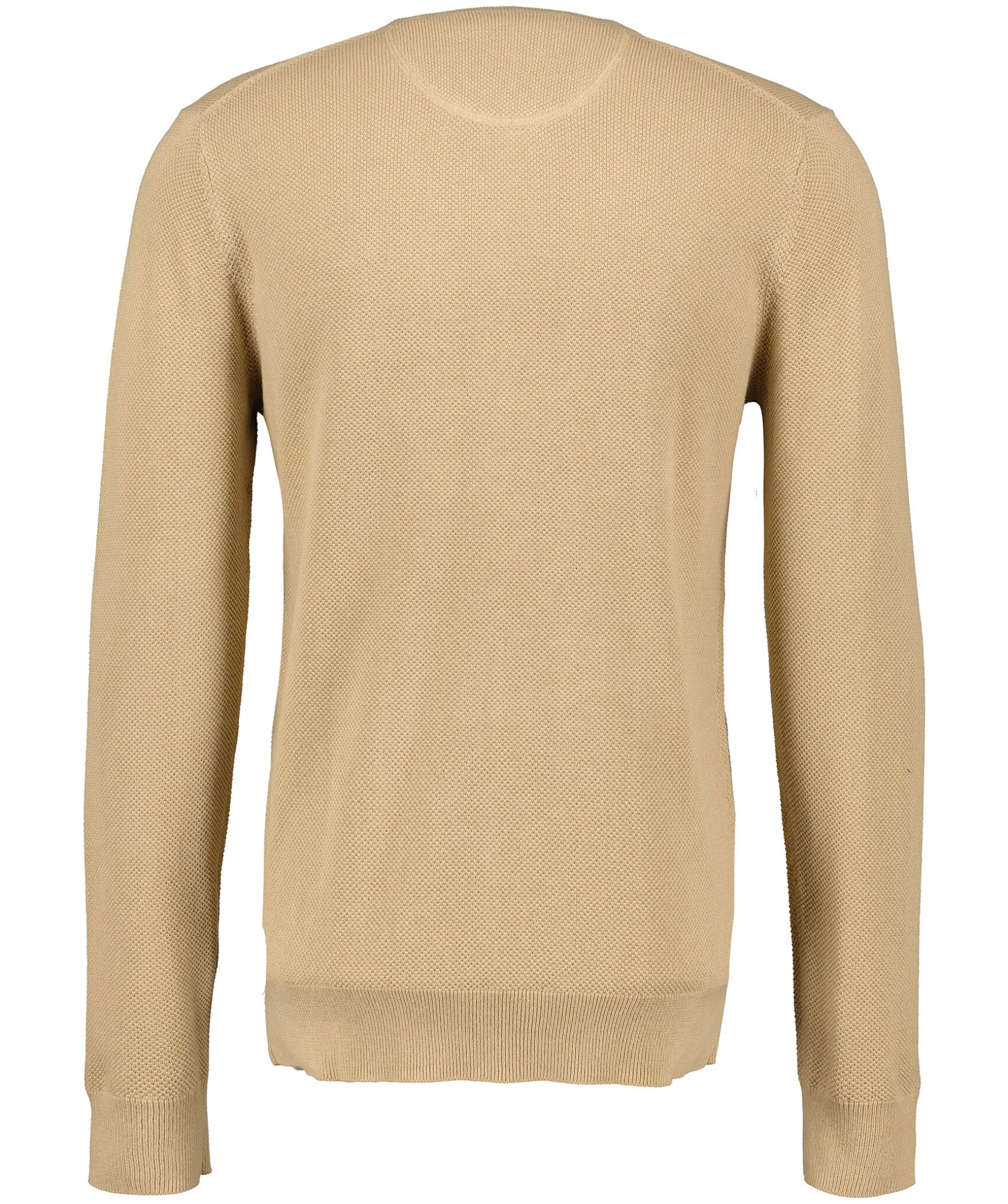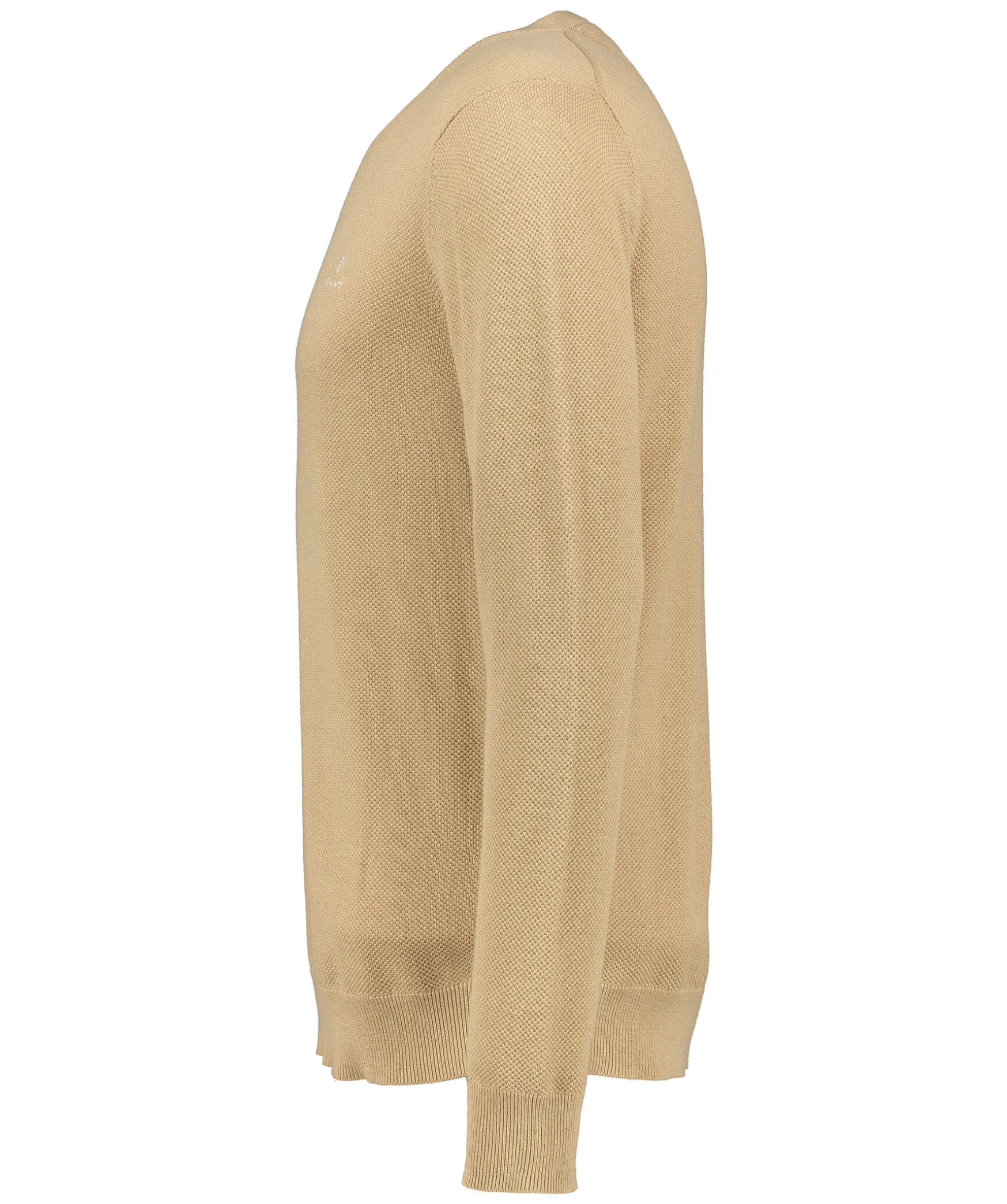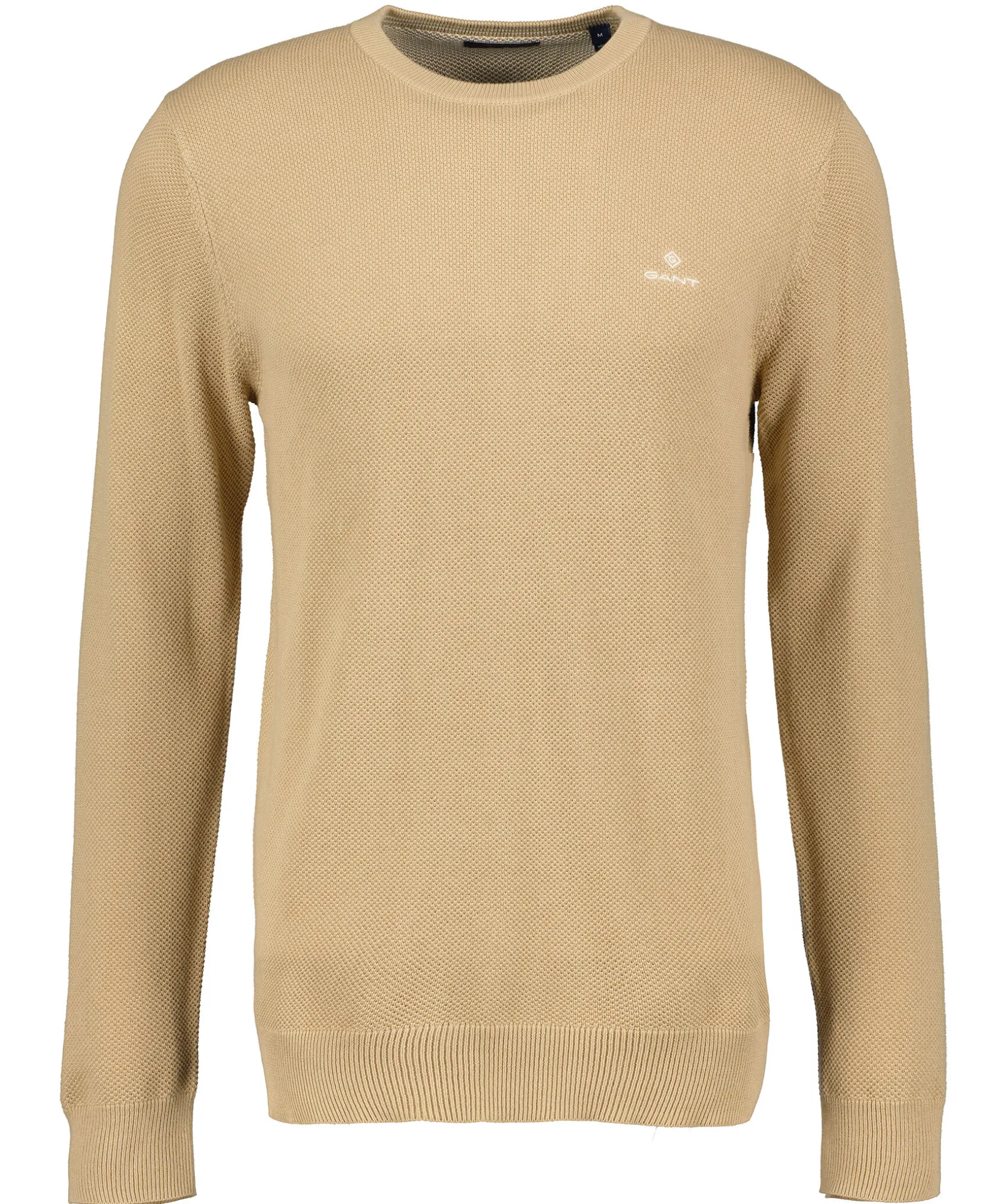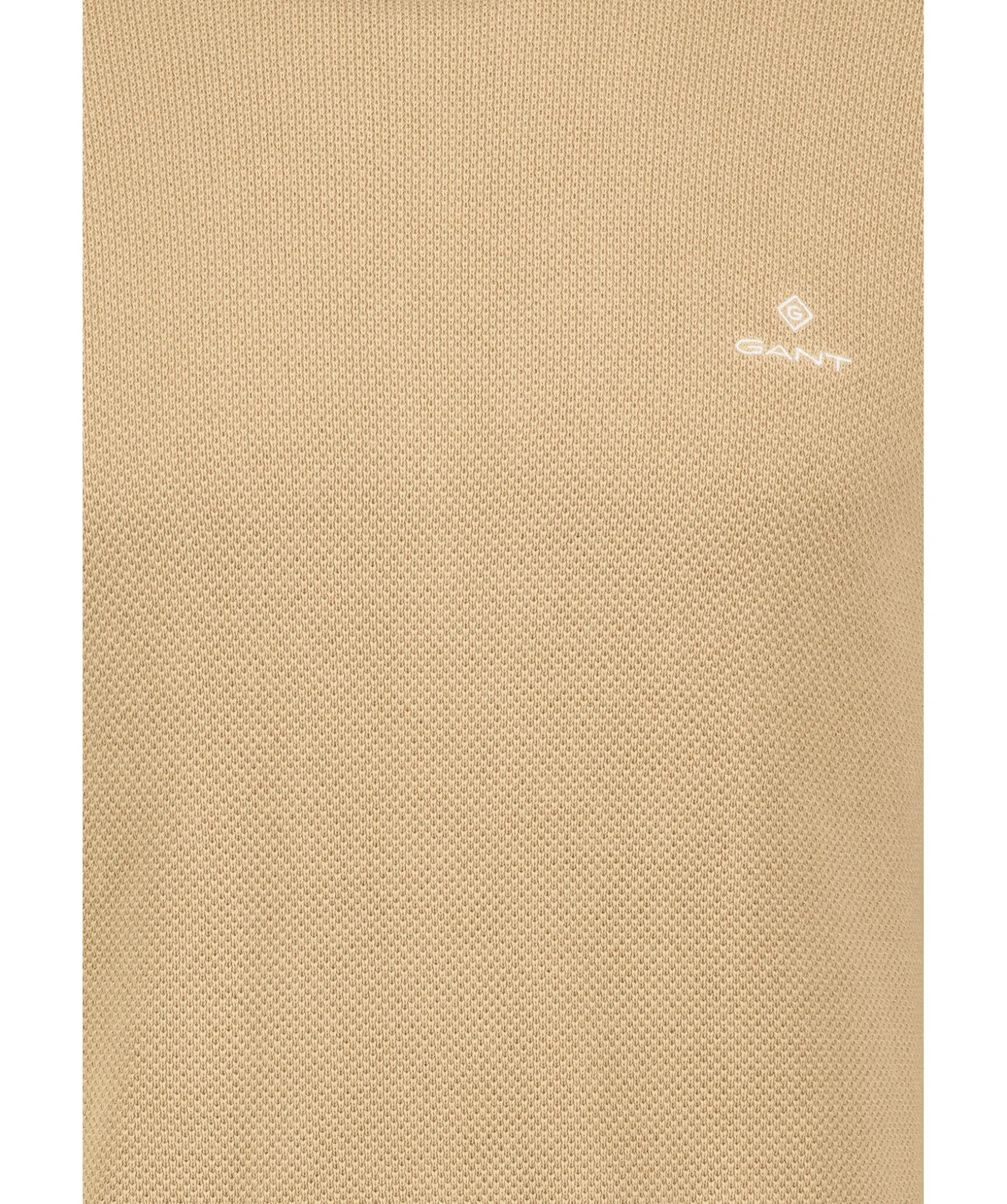 Beige, Langarmad Troja I Pikestruktur Fran Gant. Broderad Logotyp I Vitt Pa Brostet. Normal Passform, Rundad Hals Och Ribbade Muddar. Tillverkad I 100% Bomull.