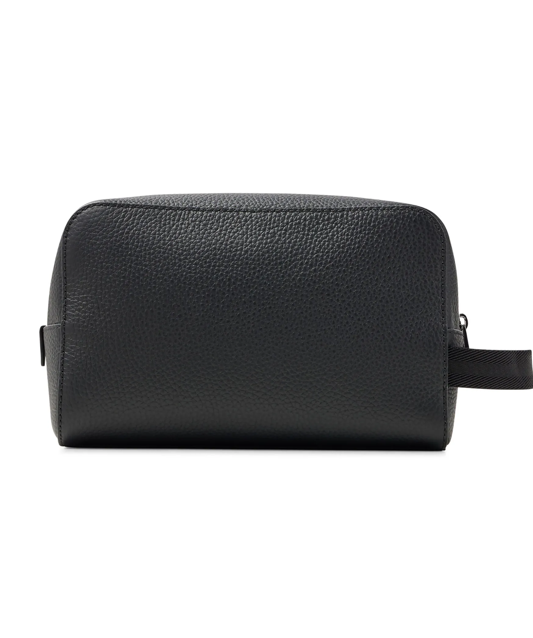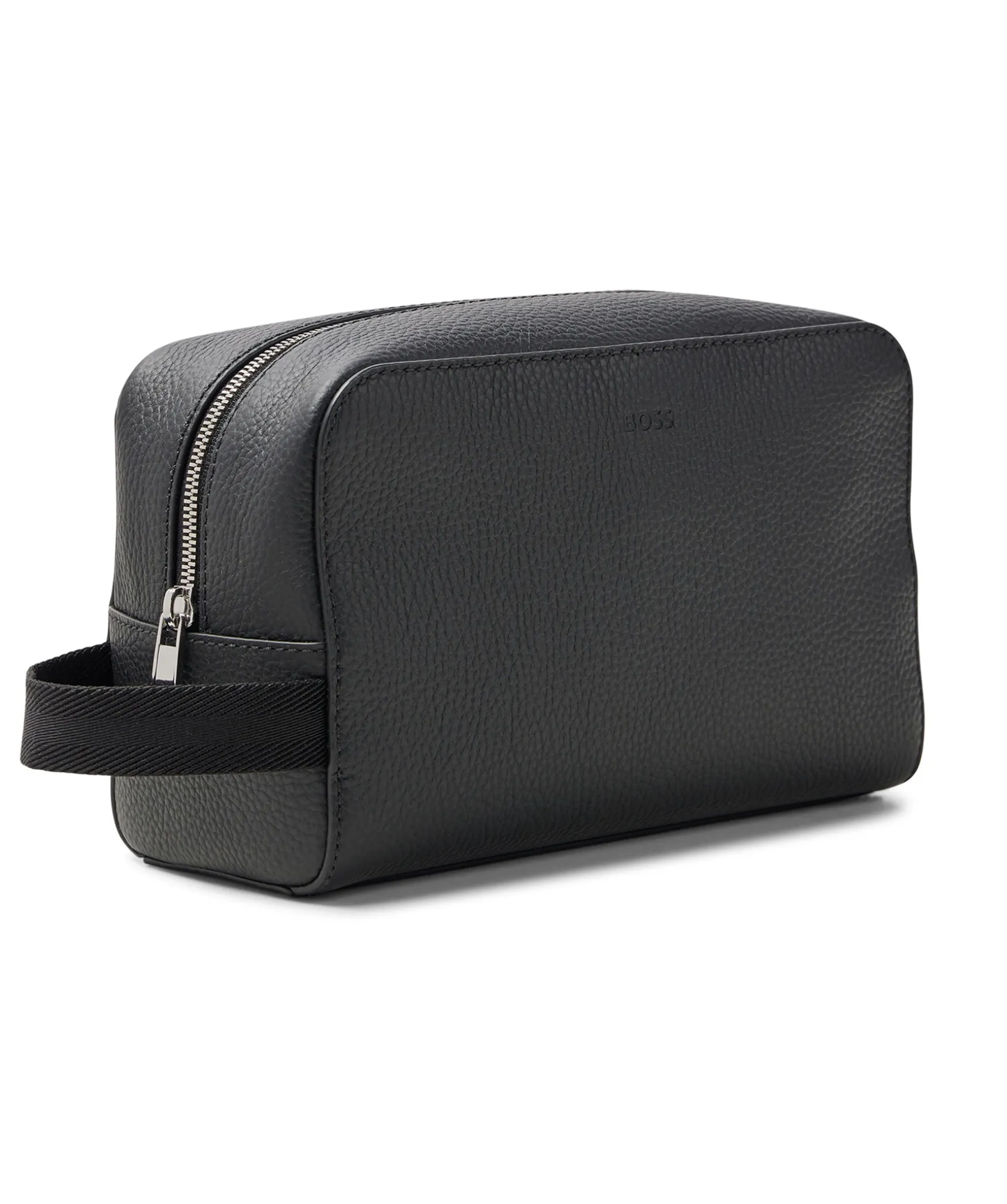 Svart Necessar I Lader Fran Boss Black. Praglad Logotyp Fram, Rem Pa Sidan. 25 X 15 X 11 Cm.