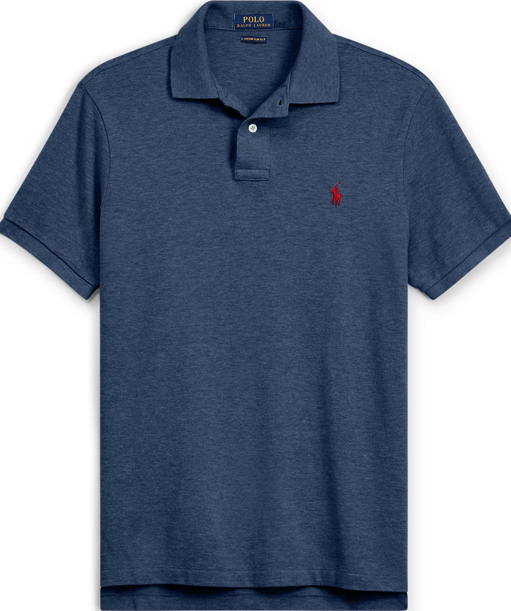 Blamelerad Piketroja Fran Polo Ralph Lauren. Rod, Broderad Logotyp Pa Brostet. Klassisk Krage Och Knappsla Med Tva Ljusa Knappar. Custom Slim Fit Modell. Gjord I 100% Bomull.