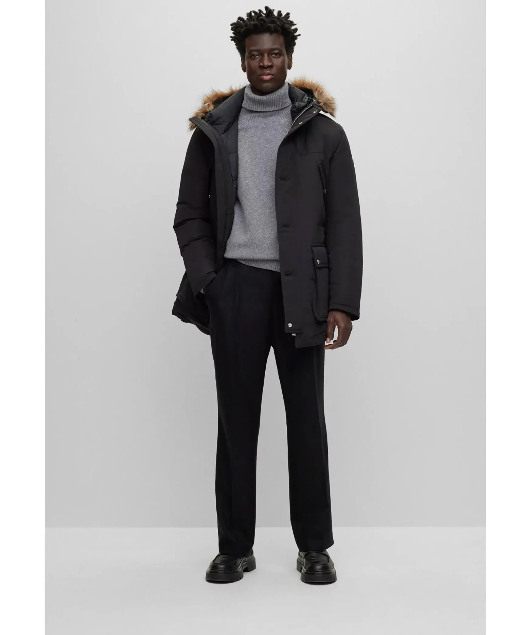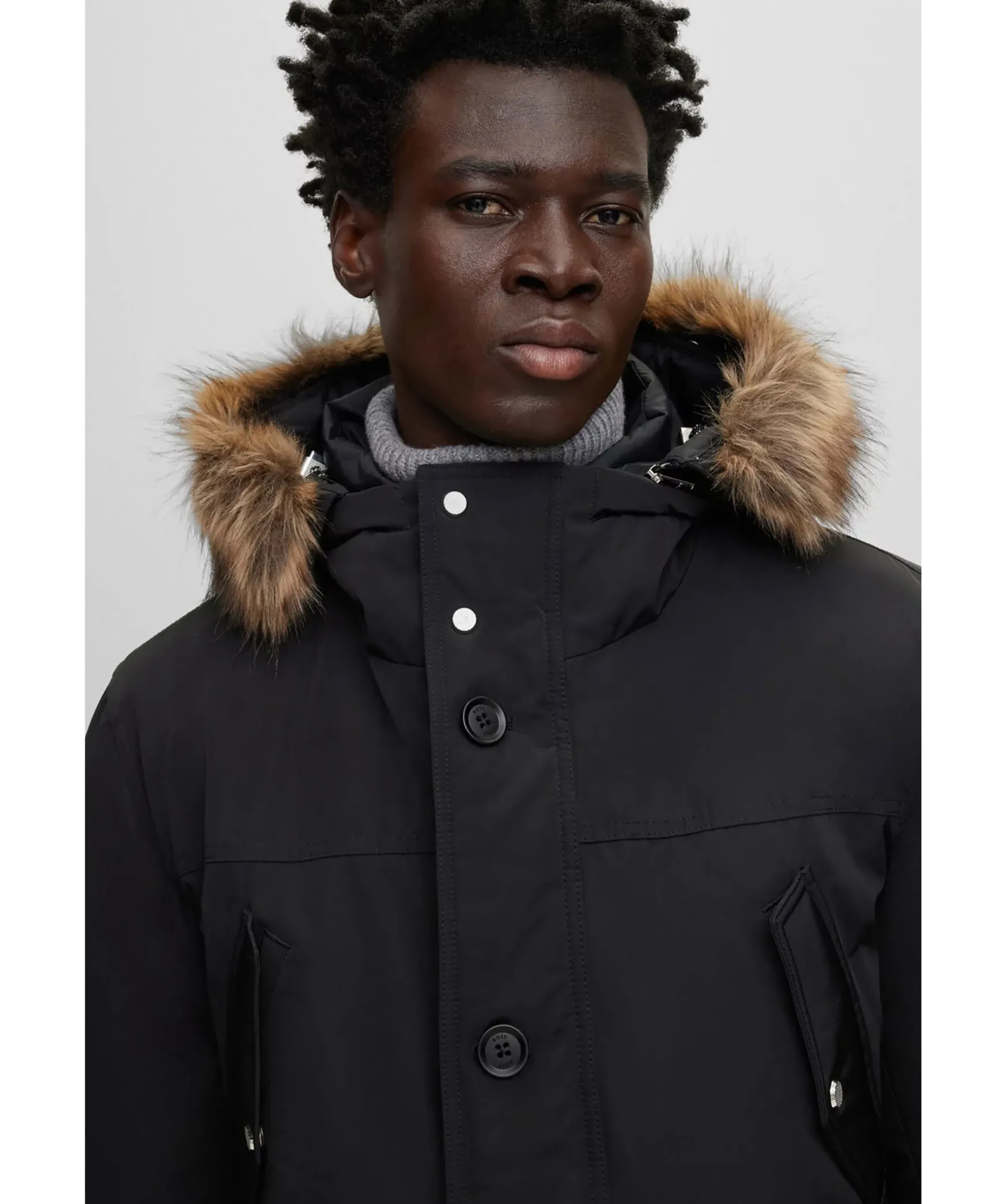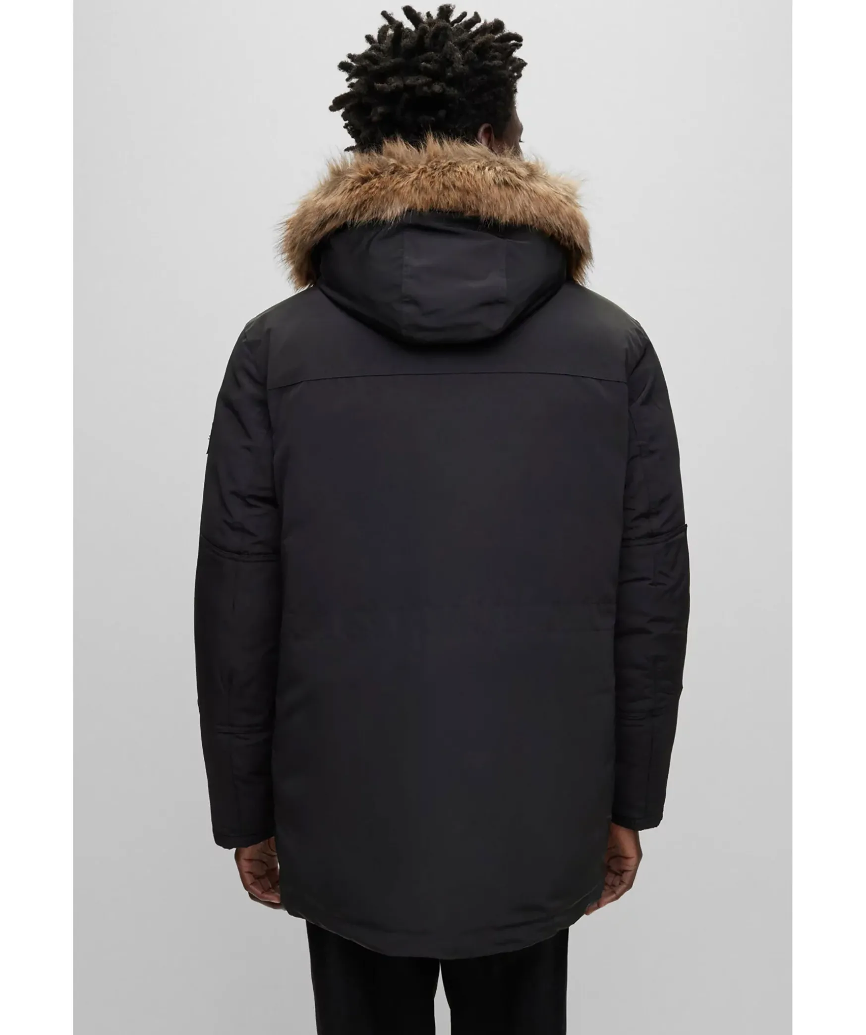 Svart Dunjacka Fran Boss Black. Stangs Framtill Med Dragkedja Och Tryckknappar. Tva Fickor Framtill Som Stangs Med Lock Och Tryckknappar. Tva Brostfickor Som Stangs Med Tryckknappar. Innerficka Som Stangs Med Dragkedja. Patch I Lader Med Logotyp I Metall. Luva Med Avtagbar Krage I Konstpals. Luva Med Dragsko. Jackan Ar Tillverkad I Ett Vattenavstotande Material.
