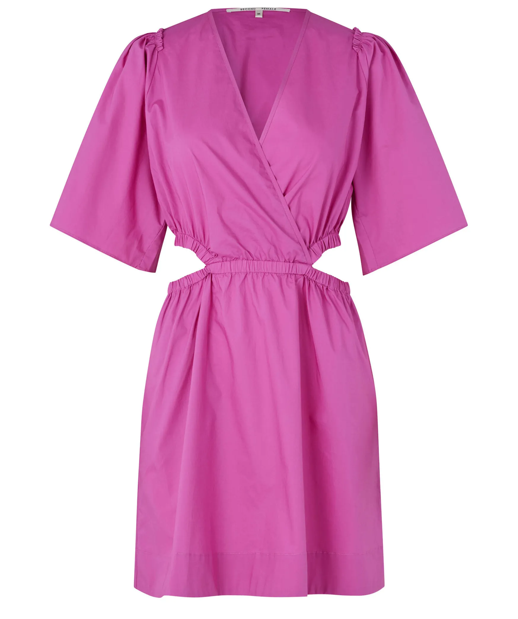 Cerisefargad Kort Skuren Klanning Fran Second Female. Tillverkad I Latt Ekologisk Bomull. Klanningen Har En Korsad Halsringning Och Korta, Utsvangda Armar Med Volangkant Vid Axlarna. Utskurna Detaljer I Midjans Sidor Med Resarkanter. Tva Innerfickor Och Slitsar I Sidorna. Normal Passform.