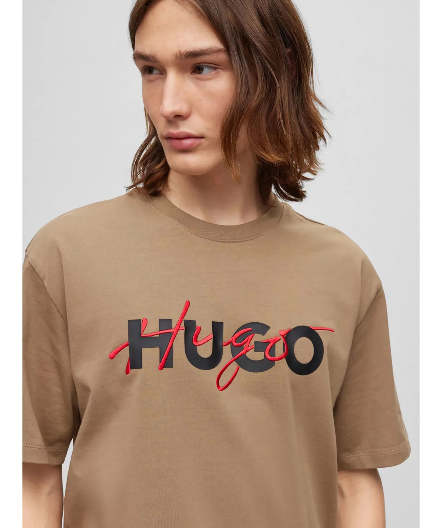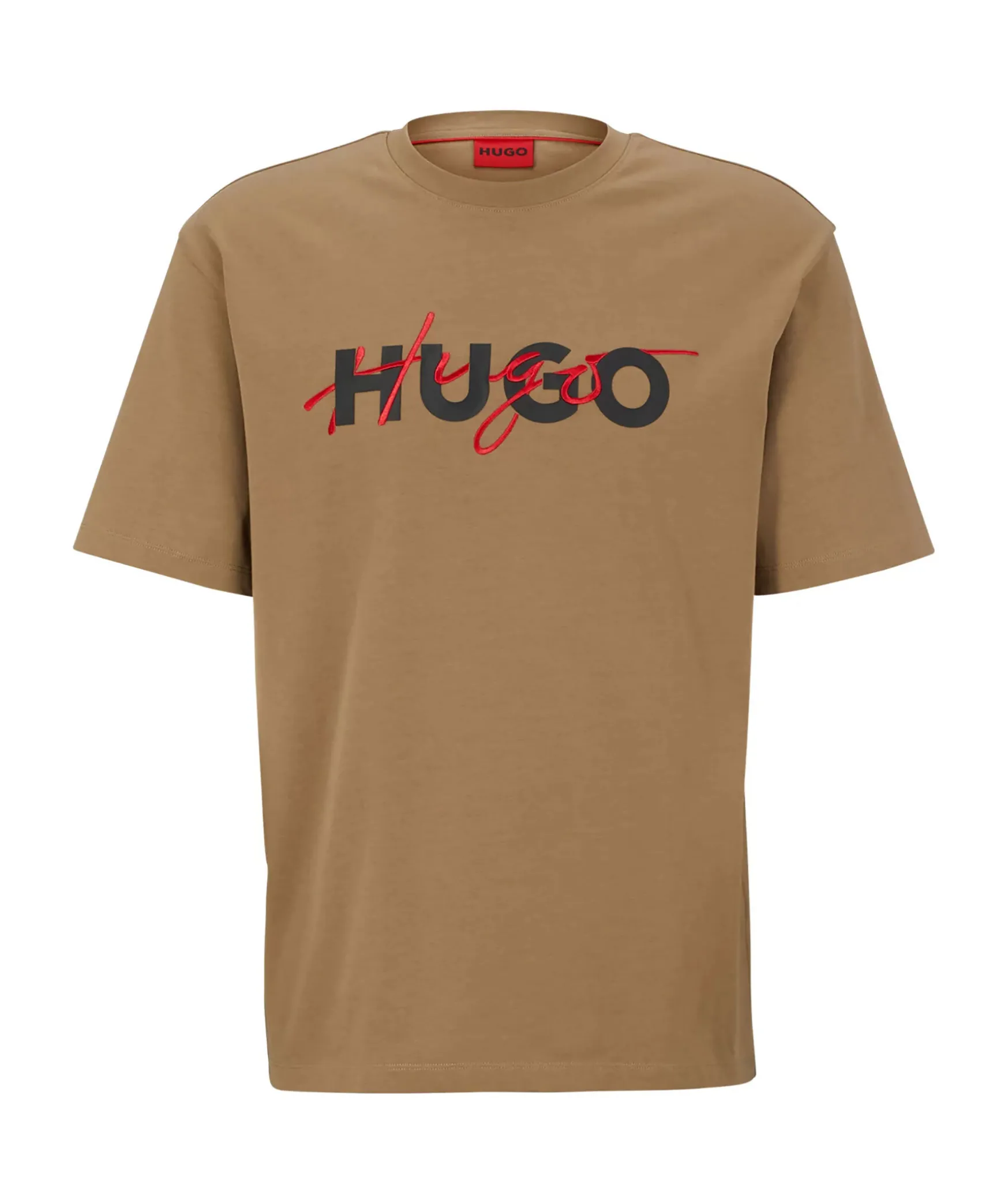 Khakifargad T-Shirt I Avslappnad Passform Fran Hugo Menswear. Tillverkad I Kraftig Jersey Med Dubbel Logotyp I Vitt Och Rott Pa Framsidan. Genom Att Kopa Denna Produkt Bidrar Du Till Att Skydda Miljon Och Hallbar Bomullsodling I Afrika. Cmia-Markta Produkter Hjalper Till Att Forbattra Levnads- Och Arbetsvillkoren For Afrikanska Bomullsbonder Och Bevara Naturen.