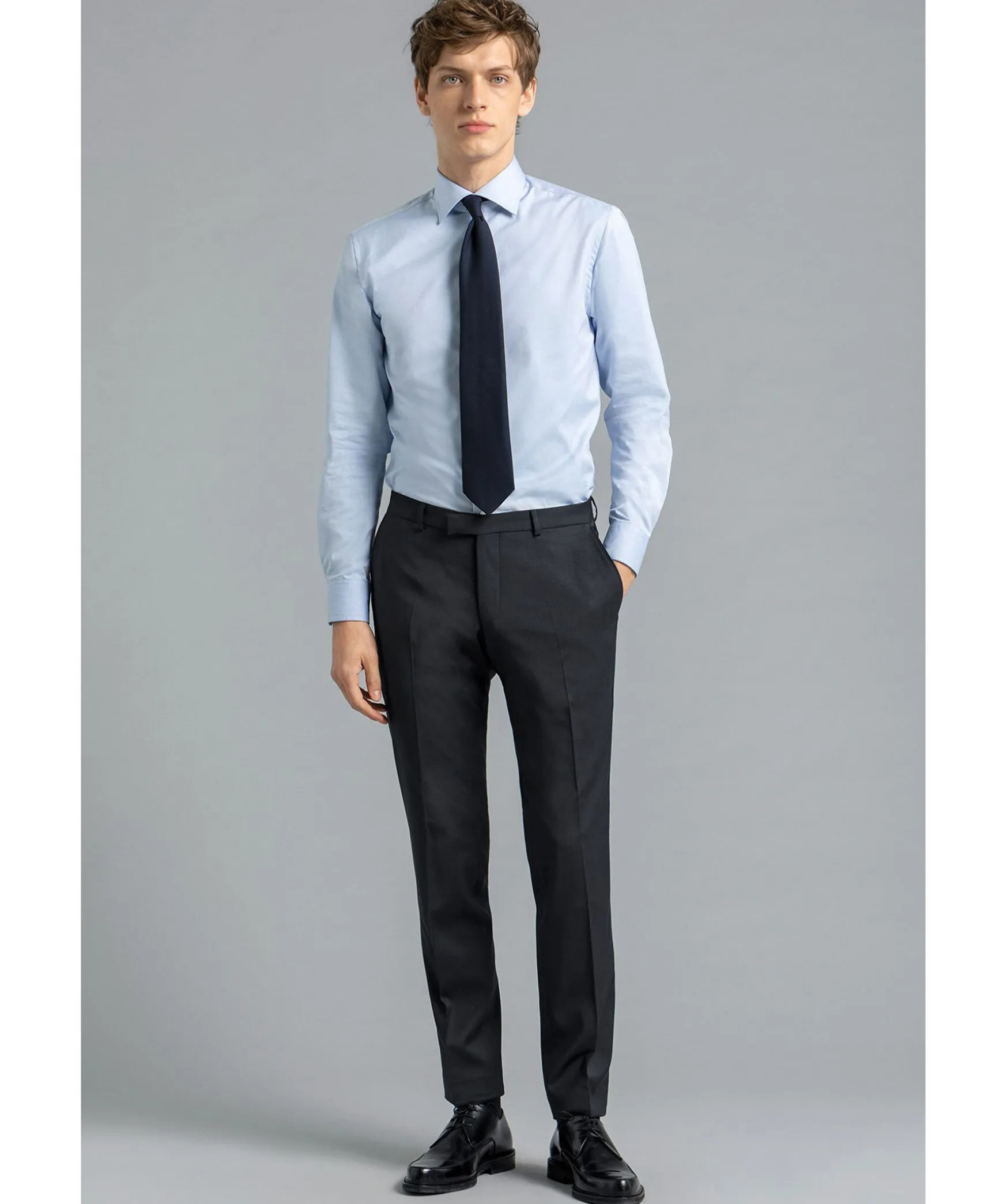 Dressade Byxor I Slitstark Ullmix. Den Har Modellen Har En Avsmalnande Passform Och En Klassisk Byxlangd Som Precis Nuddar Skon Och Bildar Ett Elegant Bryt. Bar Den Som Elegant Uddabyxa Eller Som Del Av En Hel Kostym! For En Tredelad Kostym: Lagg Till Kavaj Edmundoch Vastcarlo.