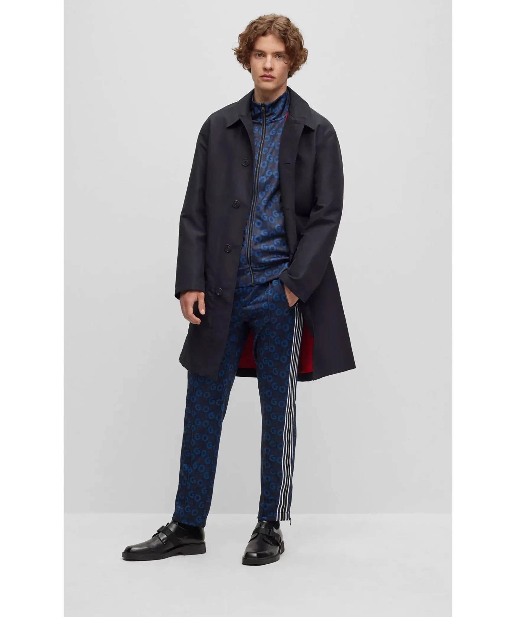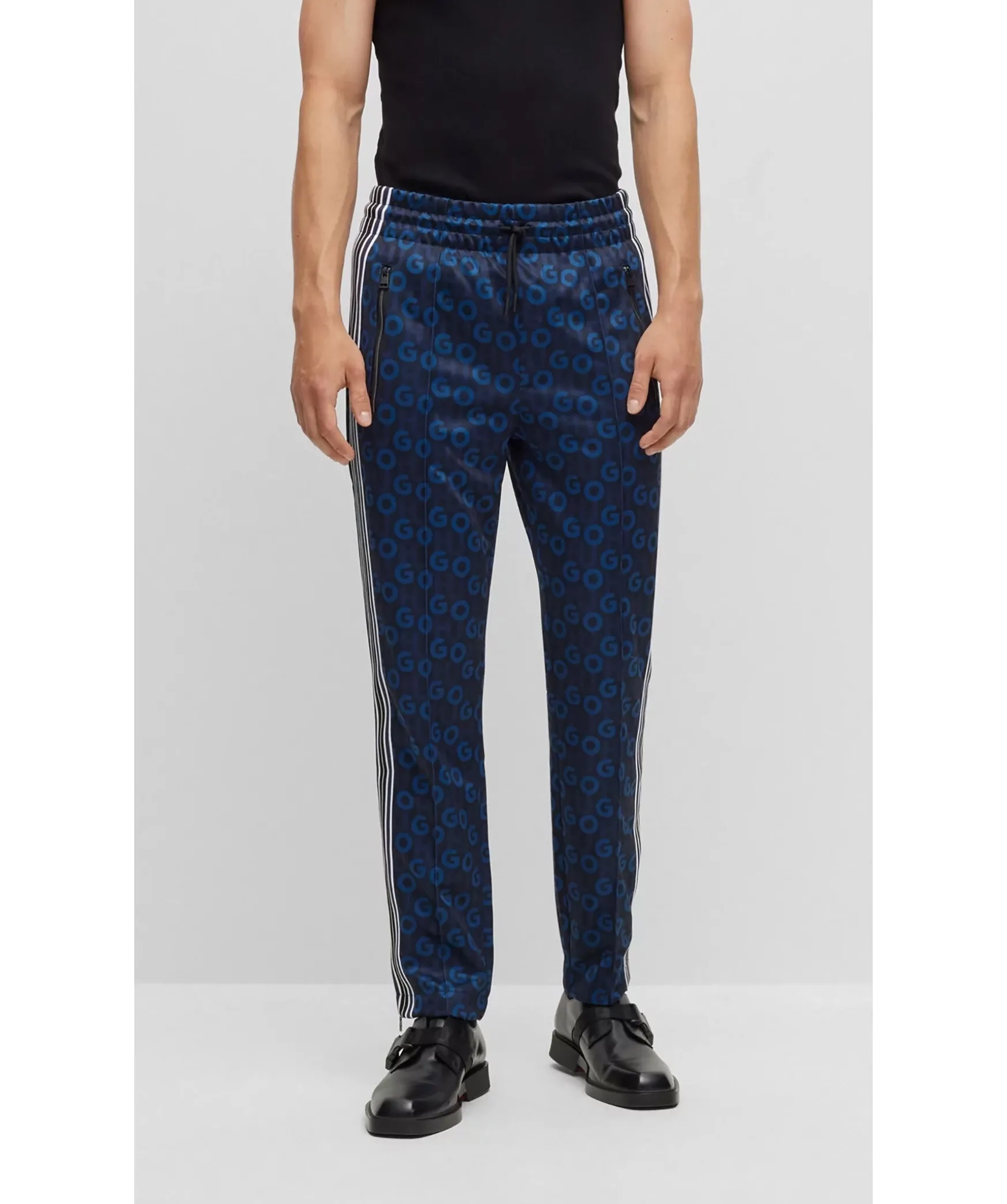 Bla Monstrade Tracksuit Byxor Fran Hugo. Resar Och Dragsko I Midjan. Tva Fickor Framtill Som Stangs Med Dragkedja, En Bakficka. Dragkedja Vid Benslut.
