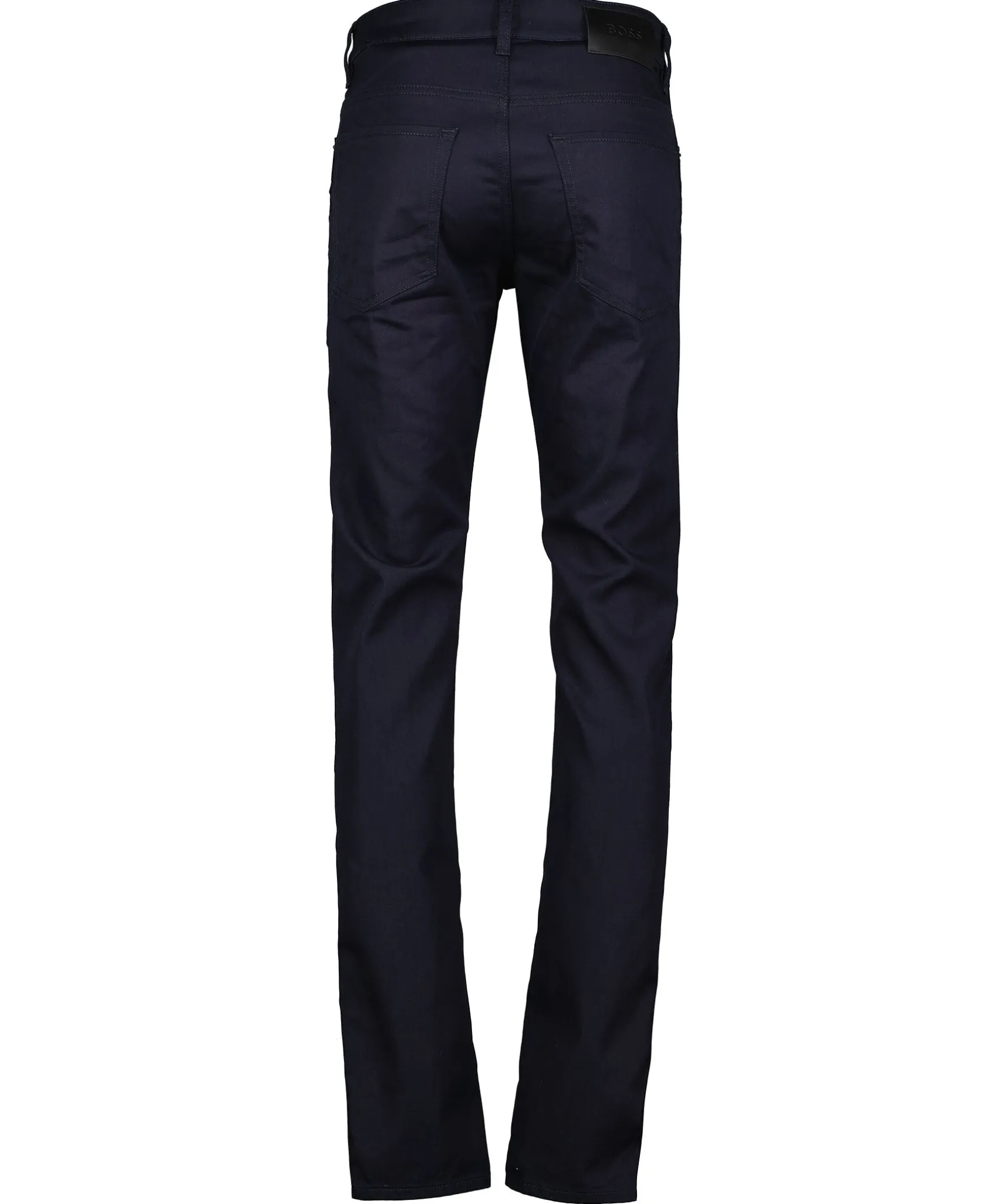 Morkbla Jeans Med Stretch Fran Boss Black I Slim Fit Modell. Normalhog Midja, Raka Byxben. Femficksmodell, Gylf Med Dold Dragkedja Och Knapp. Hallor For Balte.