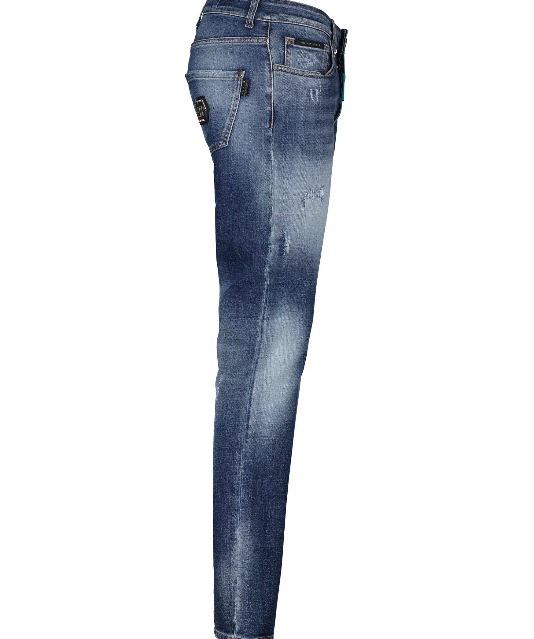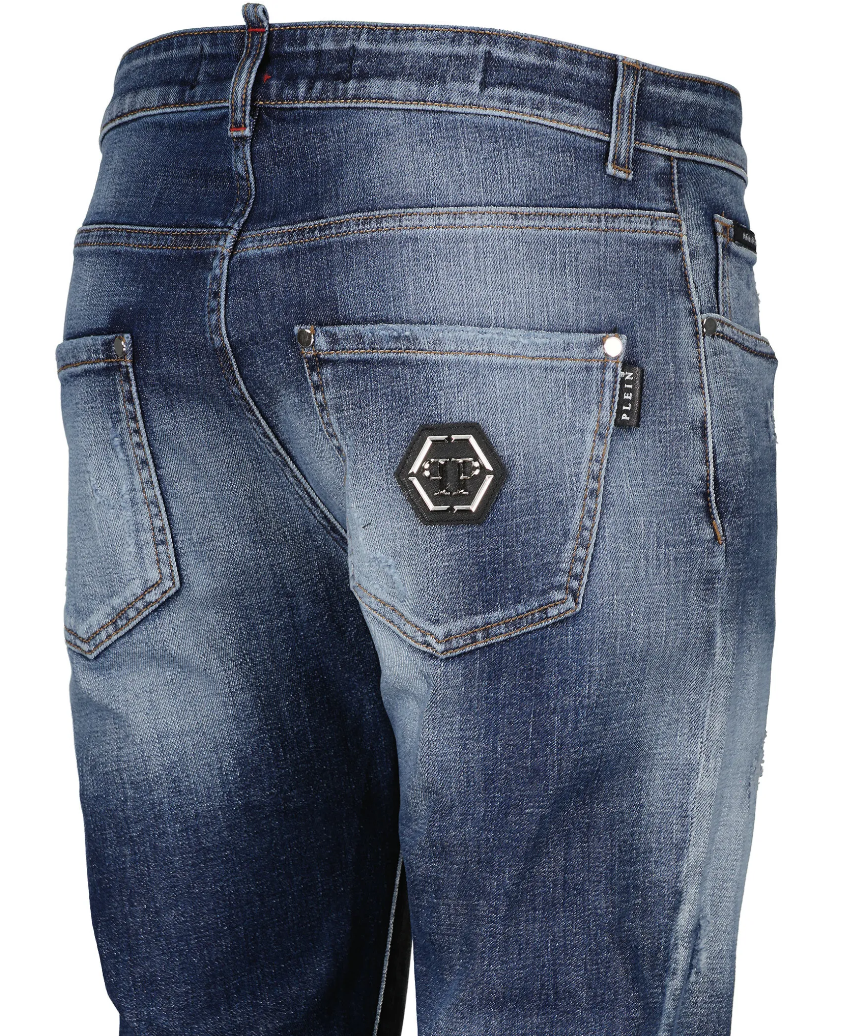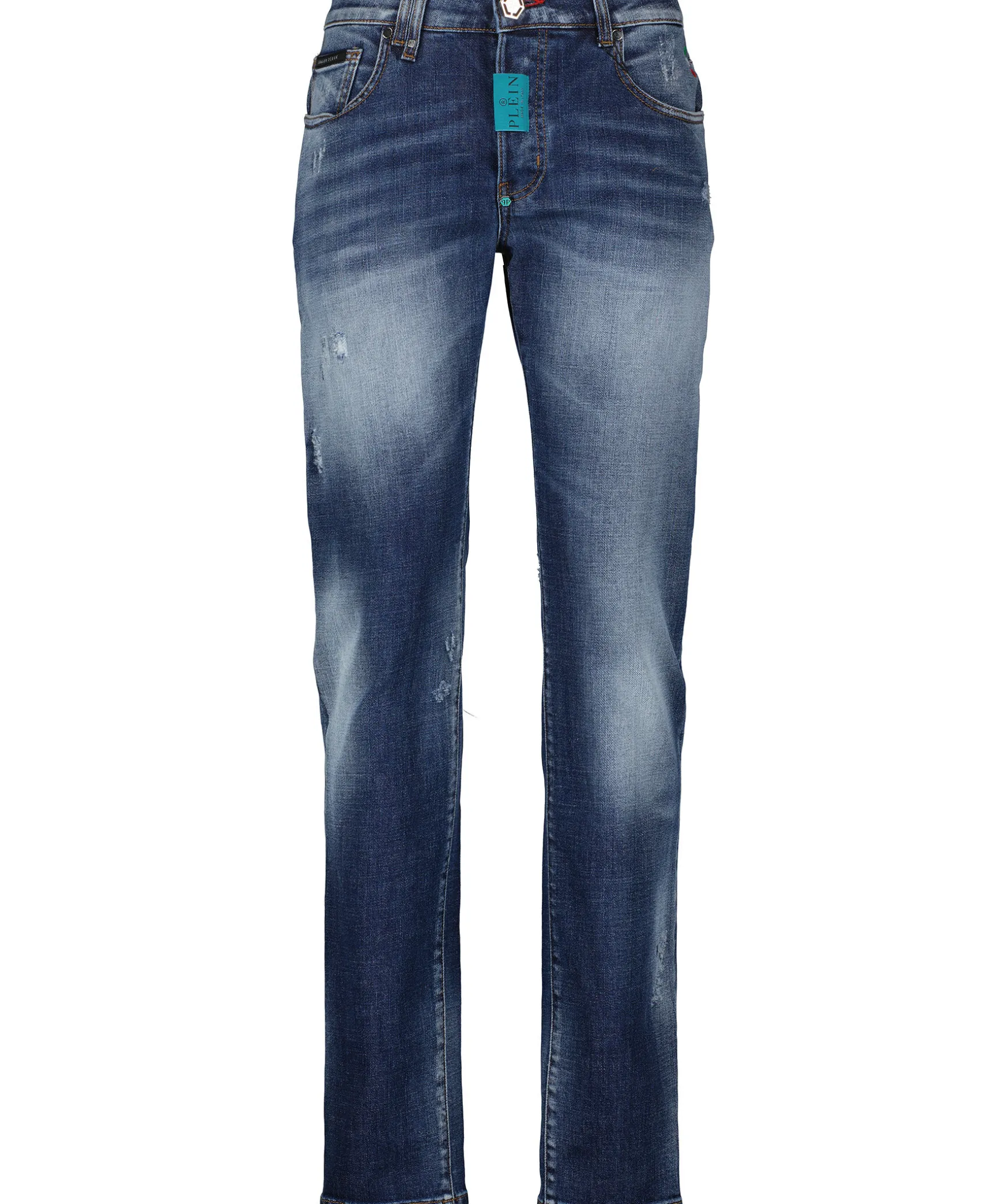Blaa Jeans Fran Philipp Plein. Stretch-Stentvattade Jeansbyxor Med 5 Fickor. Patch-Logotyp Med Detalj I Metall Pa Baksidan. Enkel Knapp-Logotyp I Metall I Fram. Passform: Super Straight. Tyglappslogotyp Vid Gylfen. Tillverkade I En Bomullsblandning.