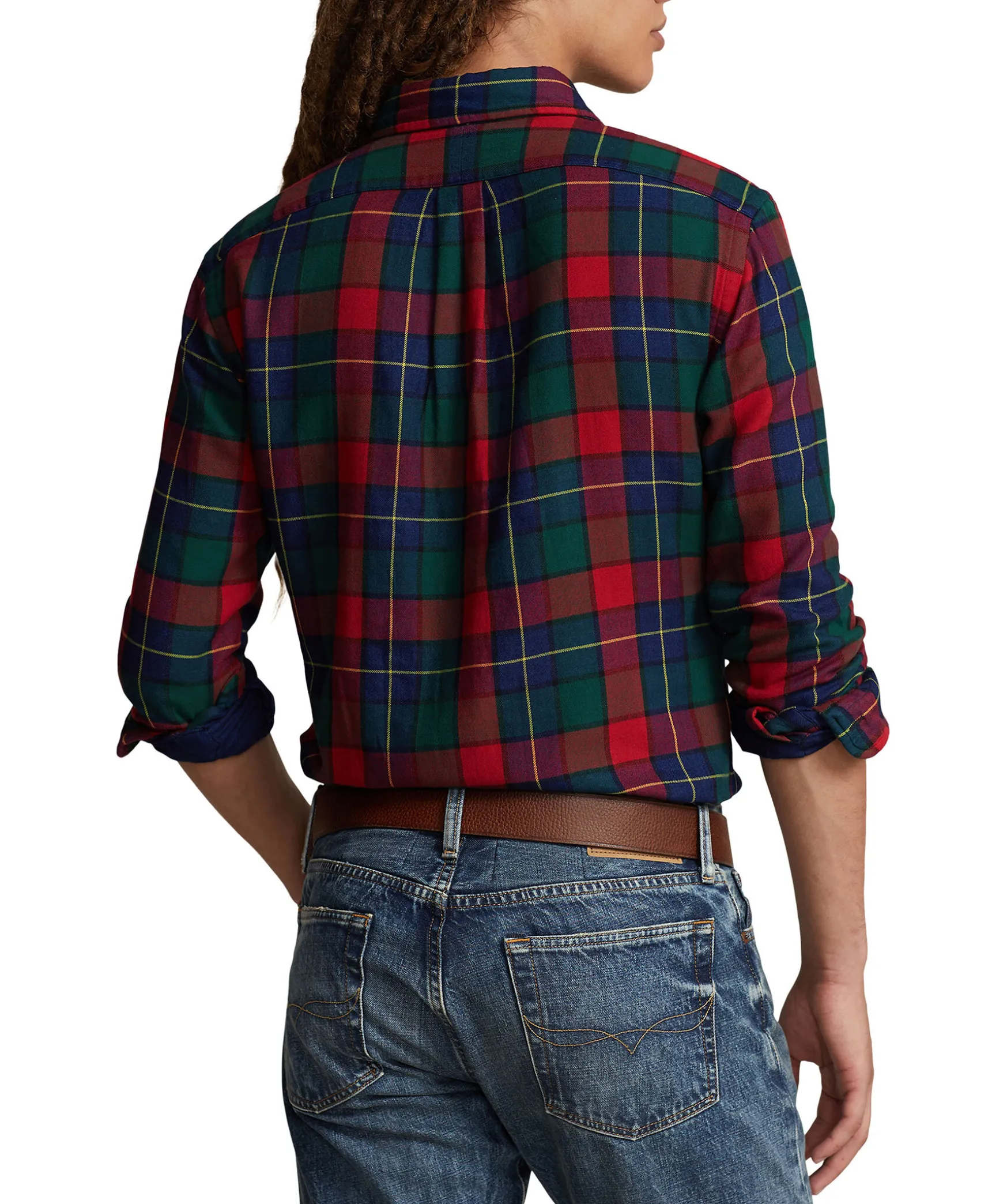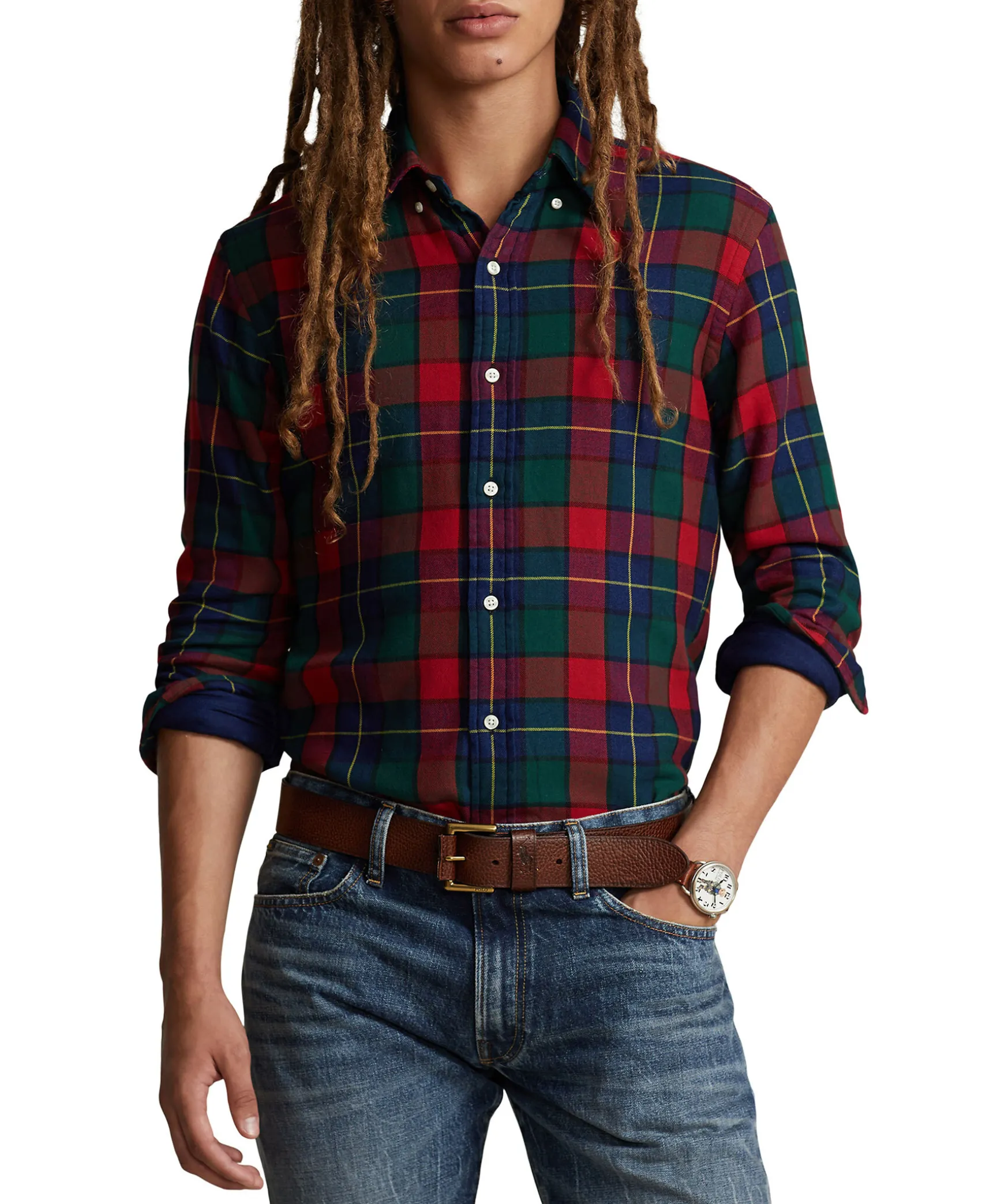 Rutig Flanellskjorta Rott, Gront Och Blatt Fran Polo Ralph Lauren. Skjortan Har En Brostficka Med Broderad Polo-Hast. Custom Fit Passform. Gjord I 100% Bomull.