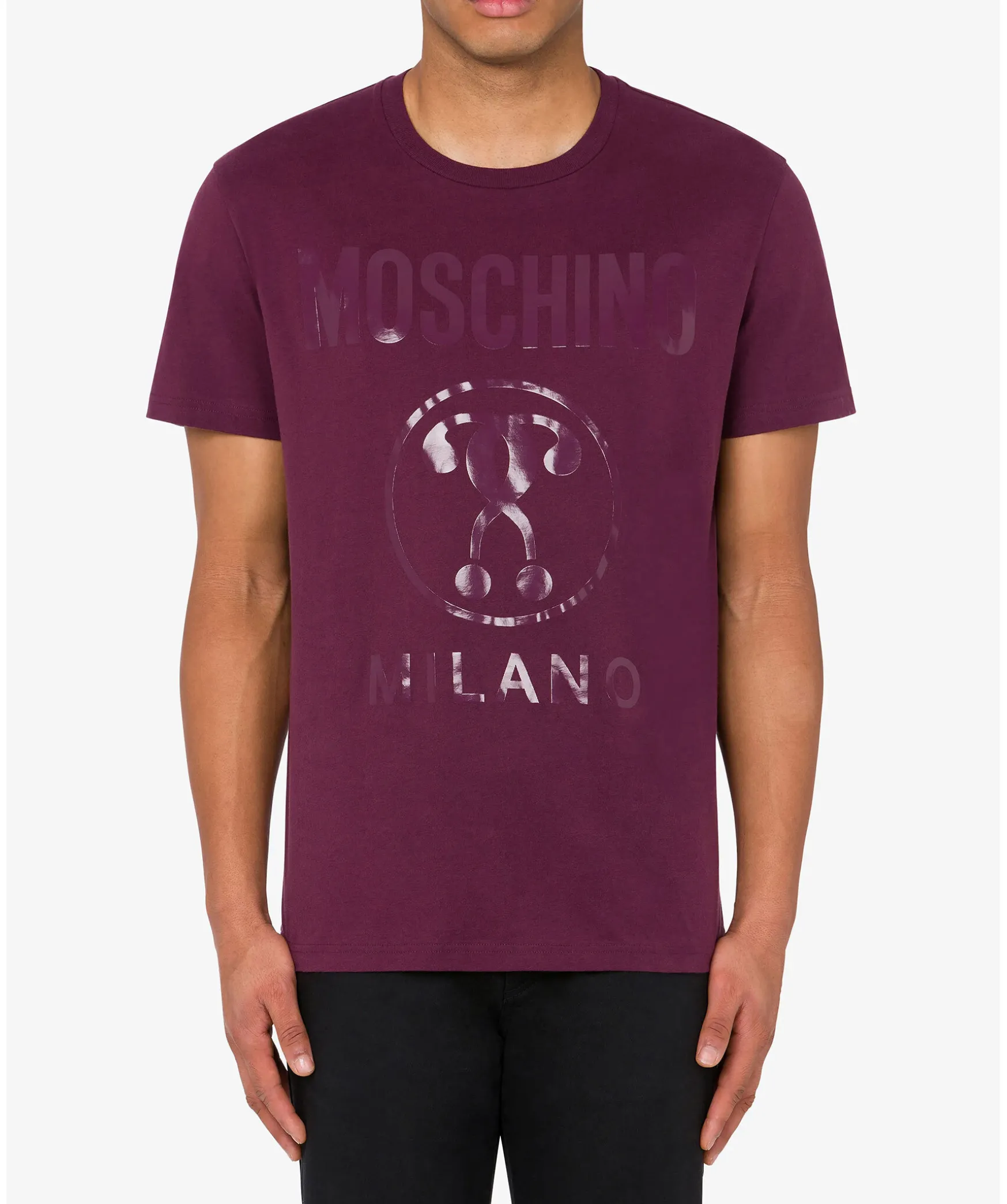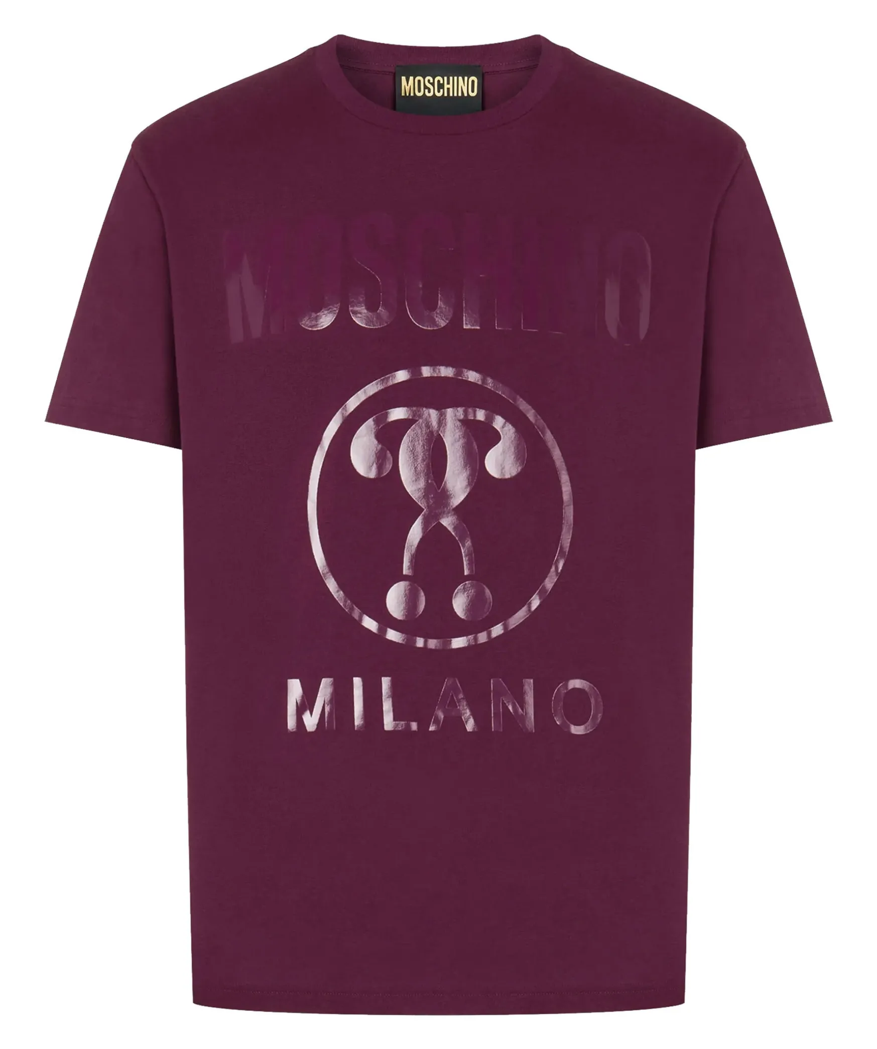 Vinrod T-Shirt Fran Moschino. Glansigt Ton-I-Ton Tryck Over Brostet. Rundad Halsringning. Tillverkad I 100% Bomull.