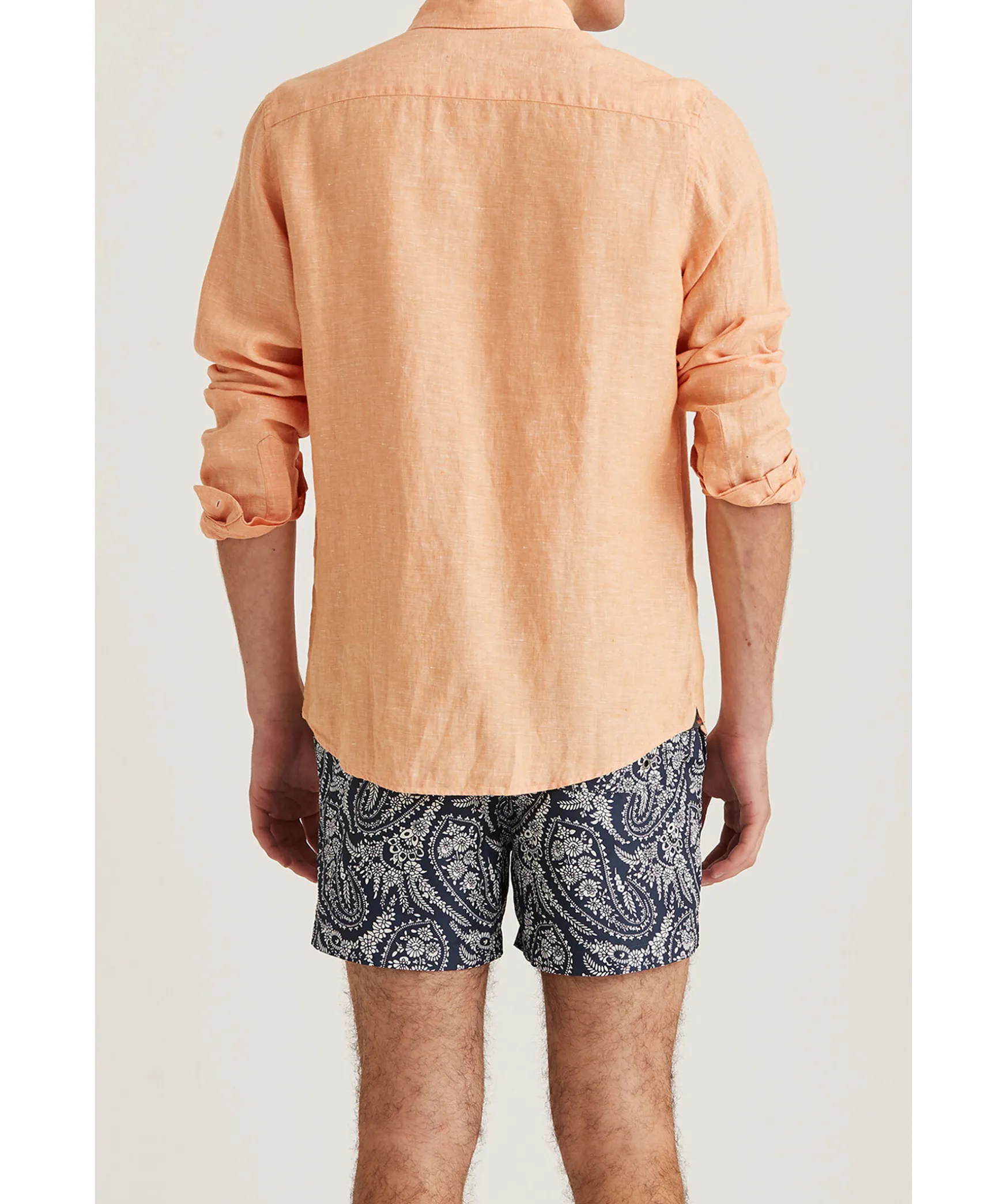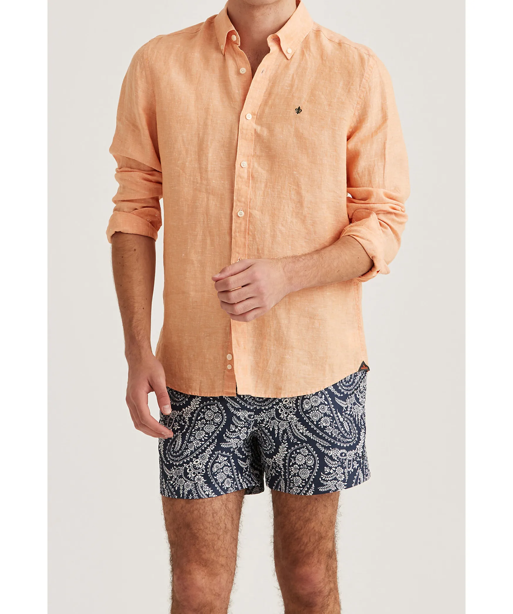 Orange Langarmad Linneskjorta Fran Morris. Skjortan Ar Gjord I 100% Linne Och Har En Button-Down Krage. Broderad Lilja Pa Brostet. Enkel Manschett.