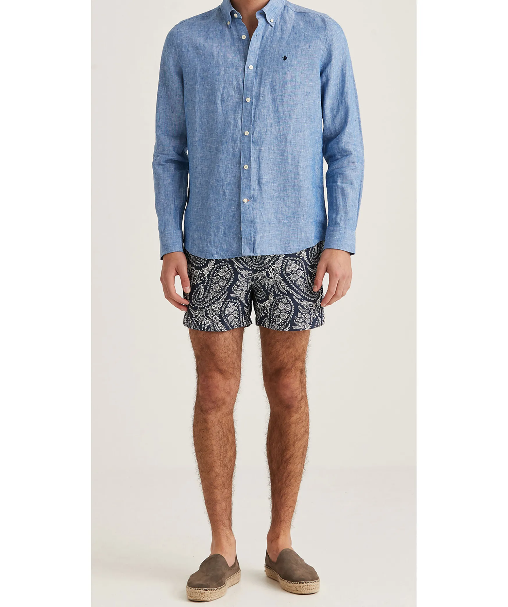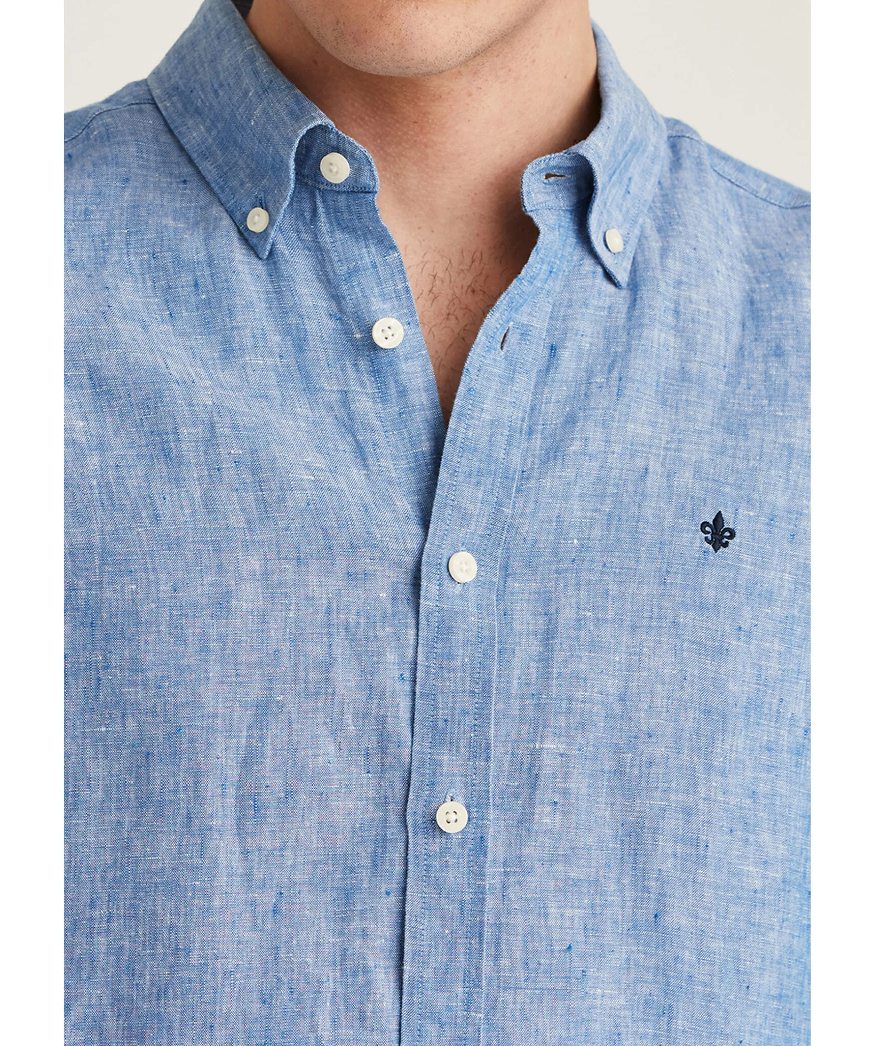 Bla Langarmad Linneskjorta Fran Morris. Skjortan Ar Gjord I 100% Linne Och Har En Button-Down Krage. Broderad Lilja Pa Brostet. Enkel Manschett.