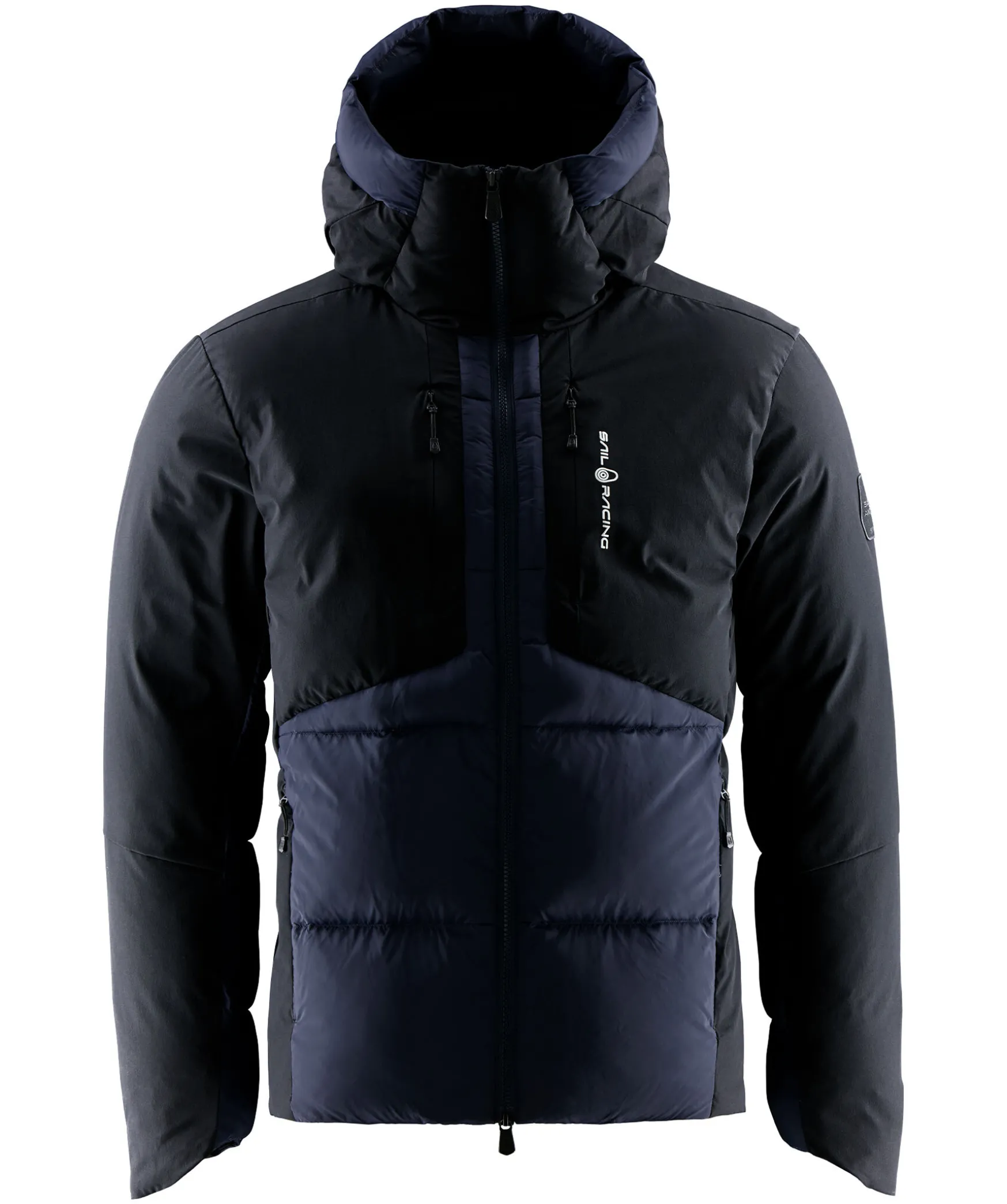 Morkbla Quiltad Dunjacka Fran Sail Racing. Panel I Svart Kontrasttyg Pa Brostet Och Axlarna. Stangs Framtill Med Tvavagsdragkedja. Tva Brostfickor Framtill Som Stangs Med Dragkedjor, Tva Fickor I Sidorna Som Stangs Med Dragkedja. Logotyp I Vitt Pa Vanster Brost Och Baktill Pa Luvan. Patch Med Gummerad Logotyp Pa Vanster Arm. Jackan Ar Vindtat Och Tillverkad I Ett Vattenavvisande Material.