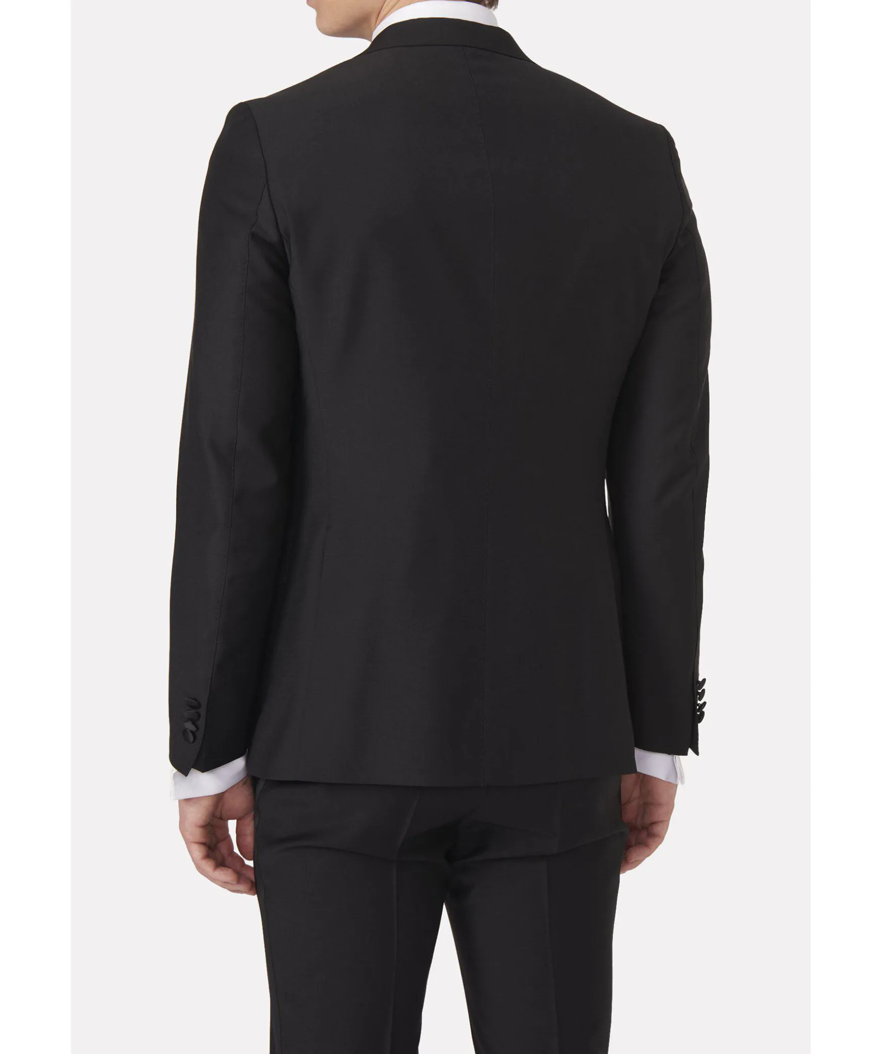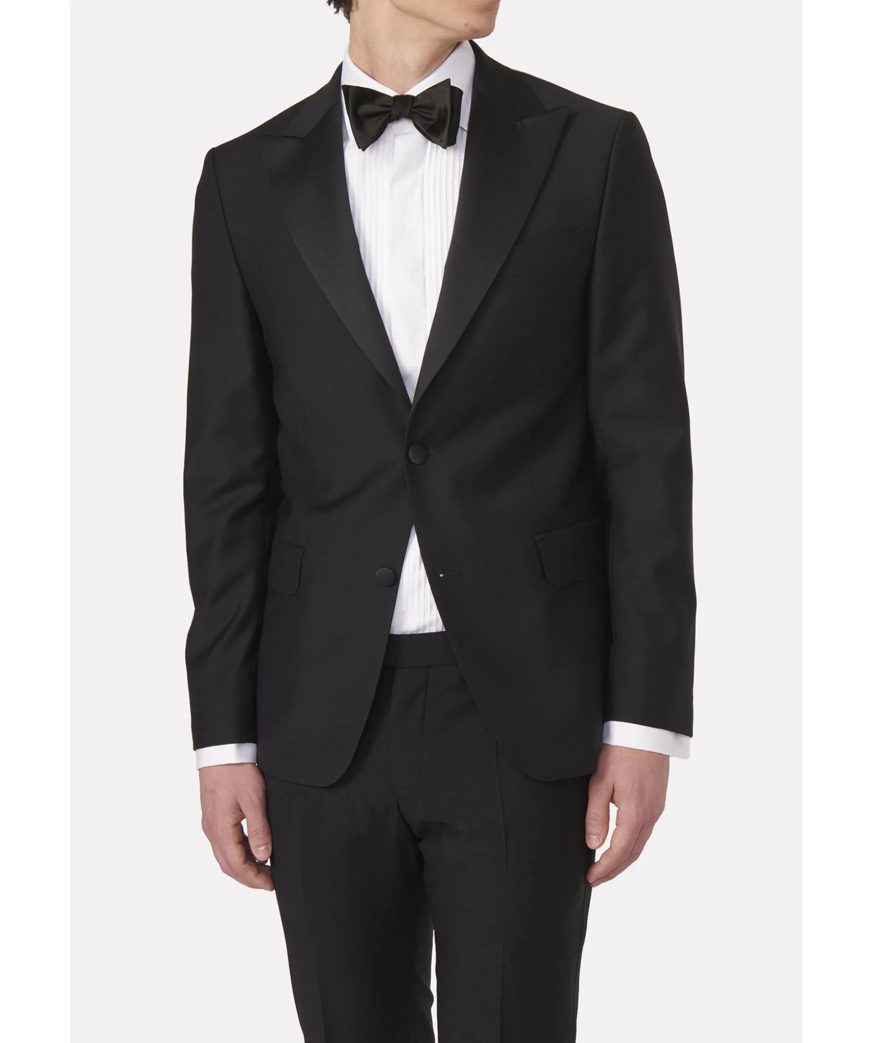 Den Har Smokingkavajen Ar Klassisk Till Utseendet Och Har En Modernt Smal Passform. Slagen Ar Som Sig Bor: Spetsiga, Elegant Breda Och Gjorda Av Siden. Kavajens Material Ar Ett Fint Vavt Smokingtyg Av 100% Ull. Valj Mellan De Klassiska Fargerna Svart Eller Midnattsbla. Kan Matchas Med Foljande Byxor: – Duke