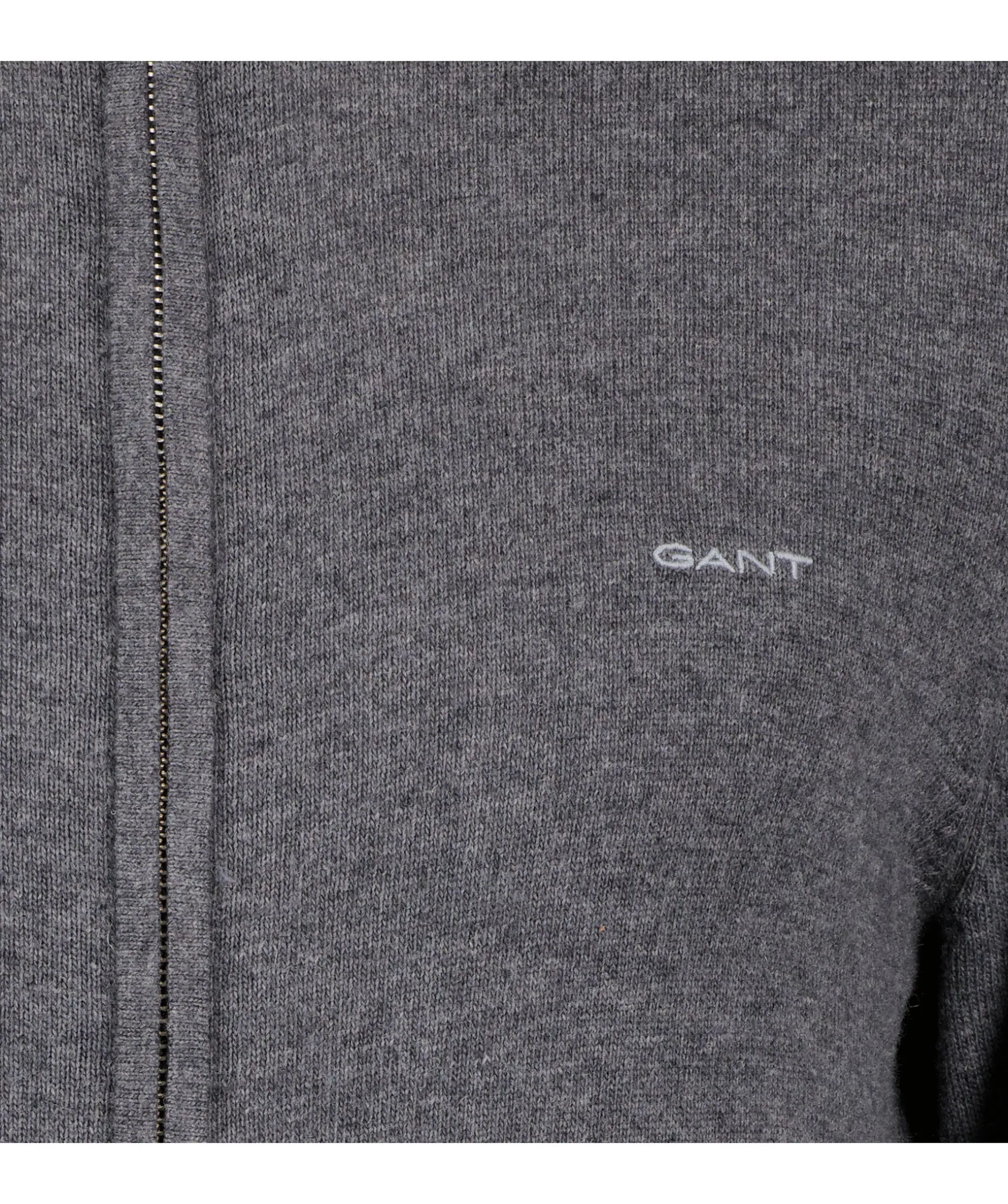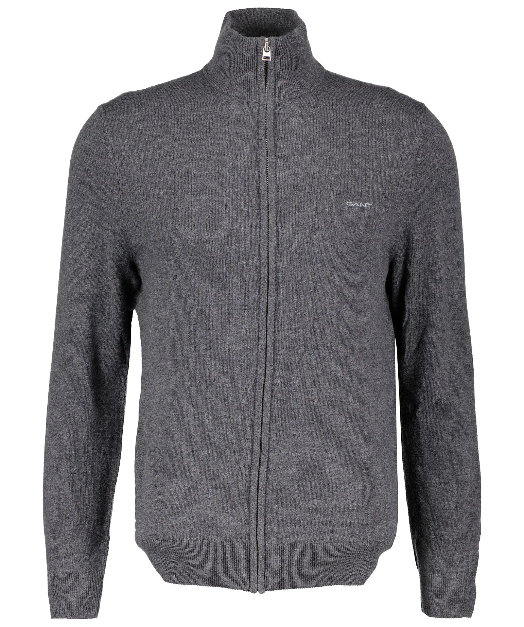 Gra Zip Up Cardigan Fran Gant. Tillverkad I En Lammullsblandning. Ribbstickade Muddar Vid Kragen Samt Arm- Och Plaggslut. Stangs Med Dold Heldragkedja. Broderad Gant-Logotyp Pa Brostet.